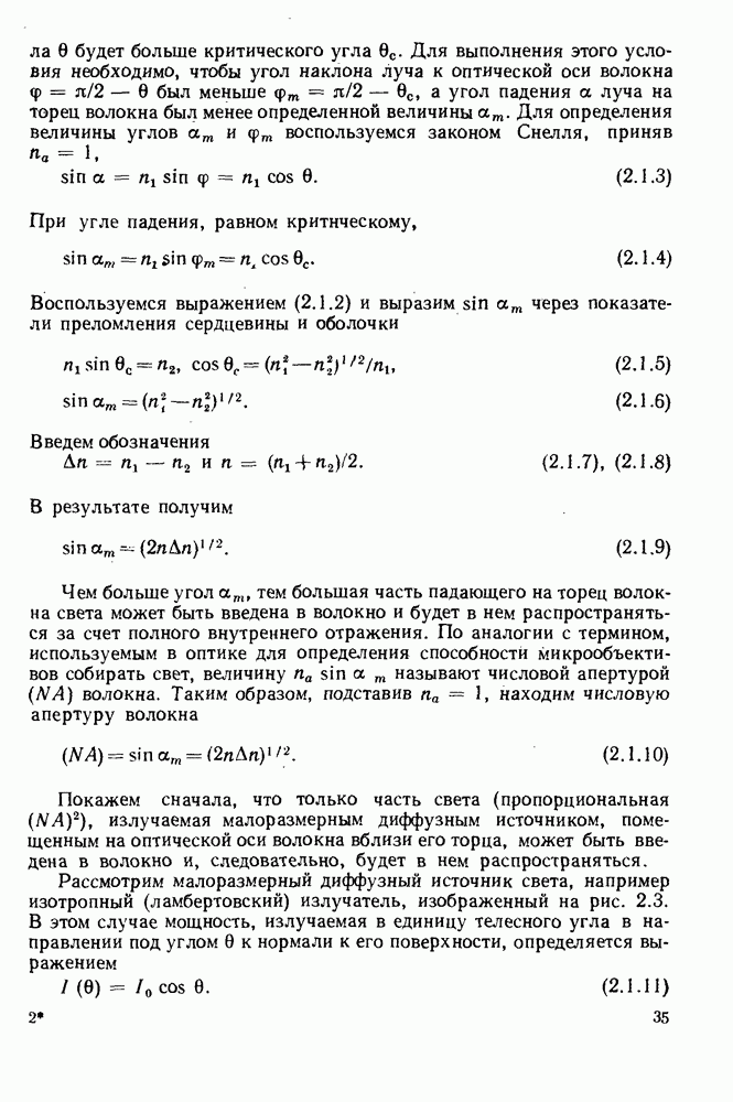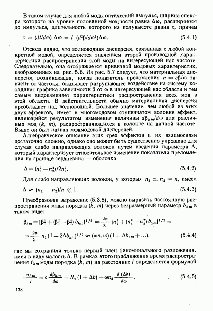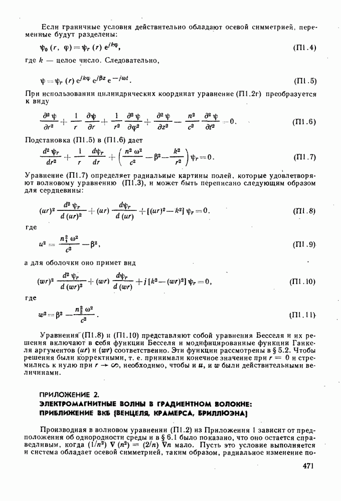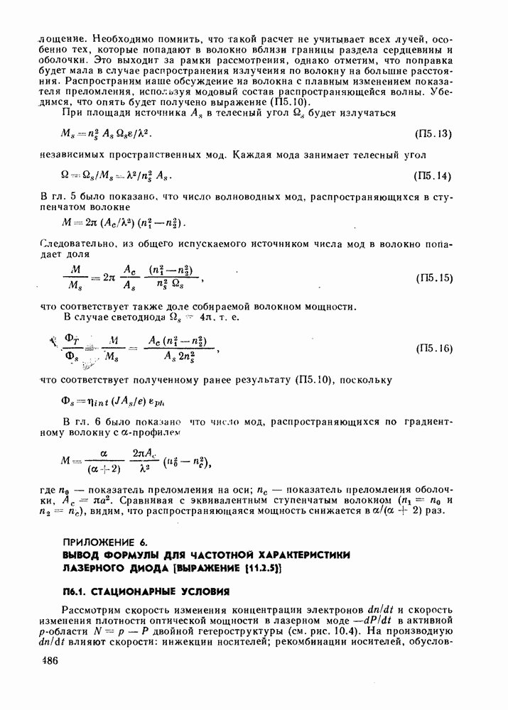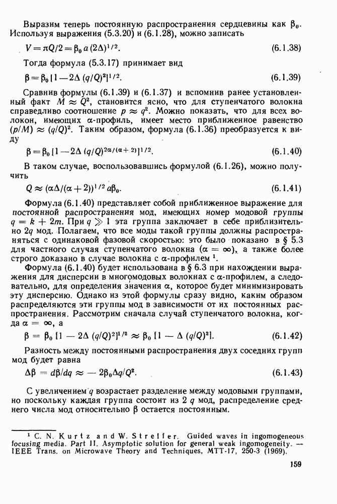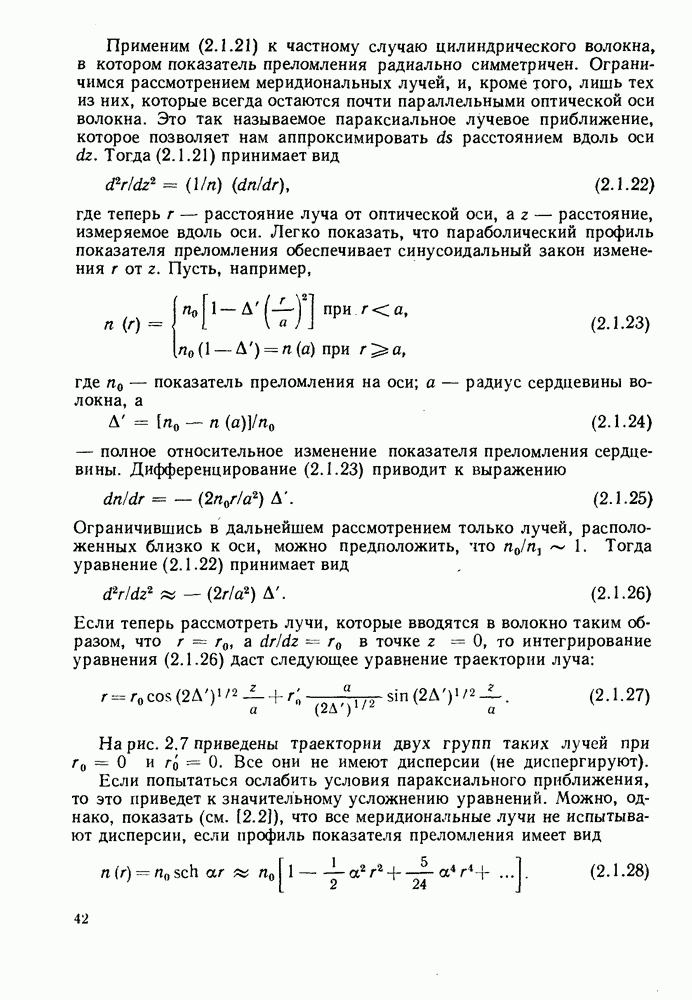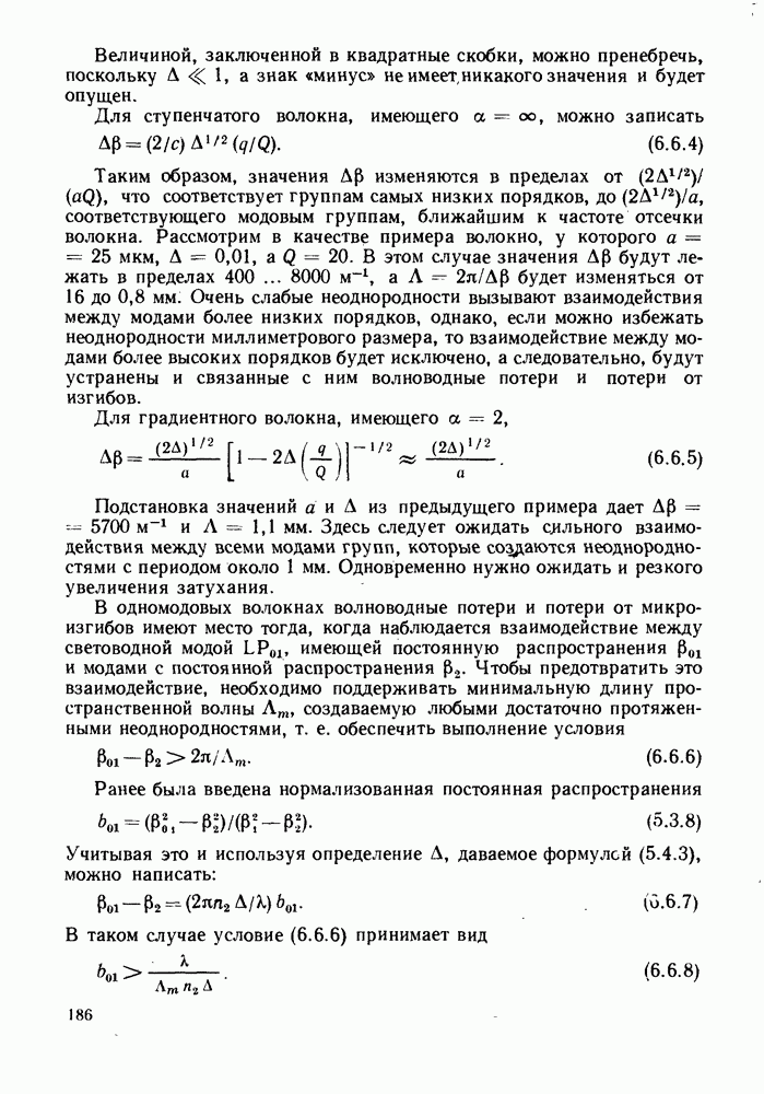 Это условие согласуется с условиями отсечки (5.2.19) — (5.2.21) в пределе слабо направляющего волокна. Очевидно, что, как и ранее,