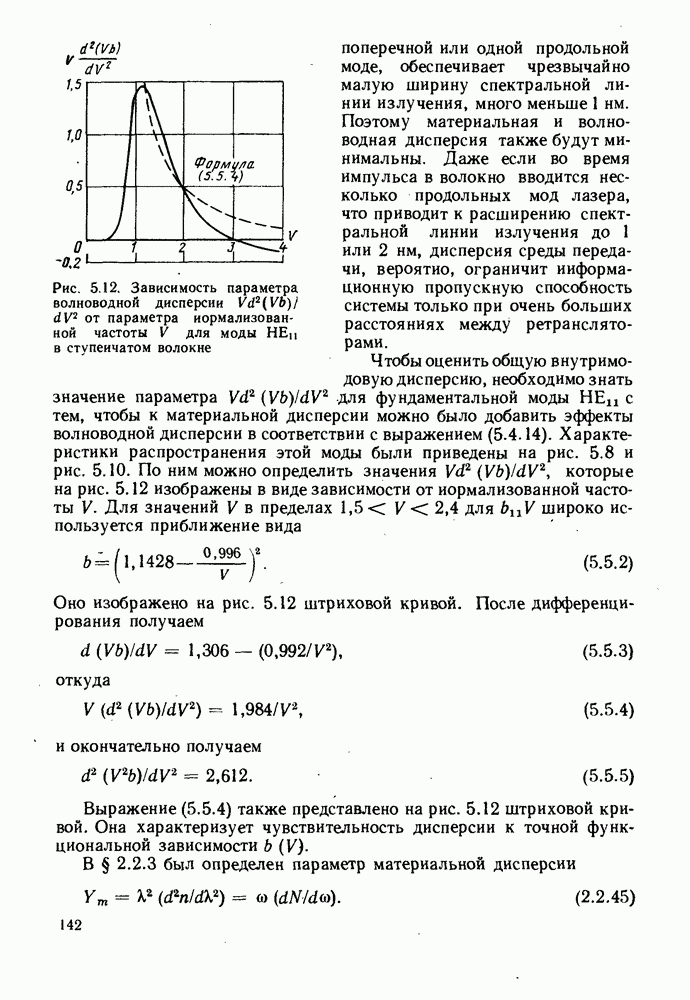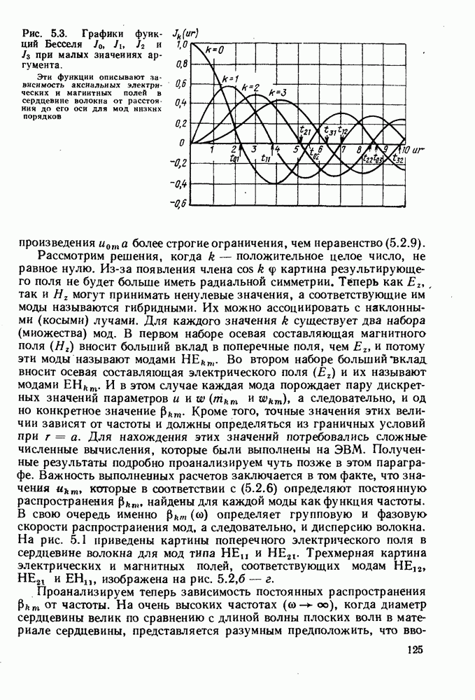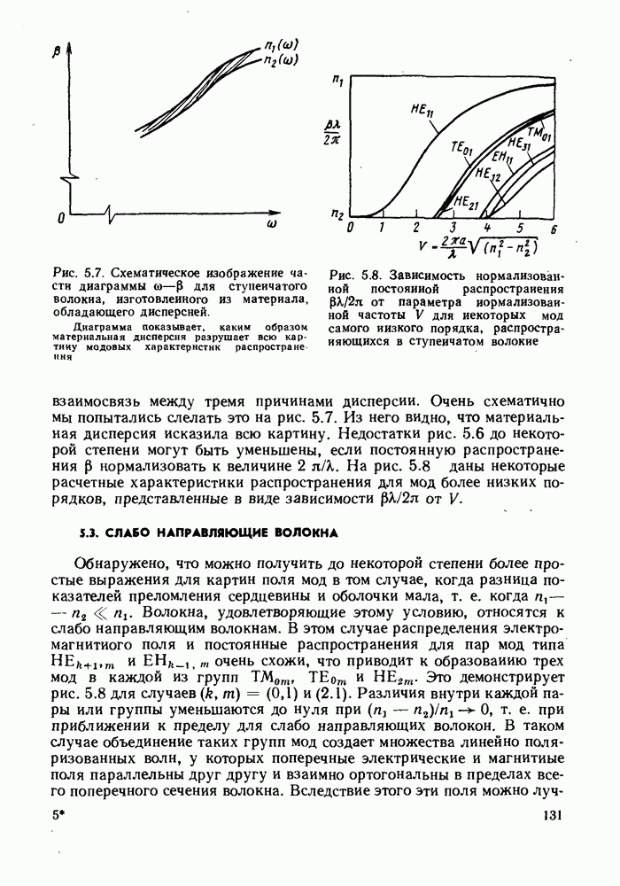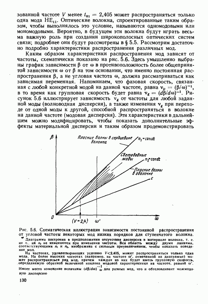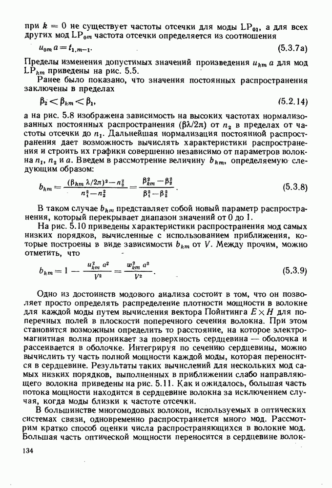 В таком случае На рис. 5.10 приведены характеристики распространения мод самых низких порядков, вычисленные с использованием приближения, которые построены в виде зависимости