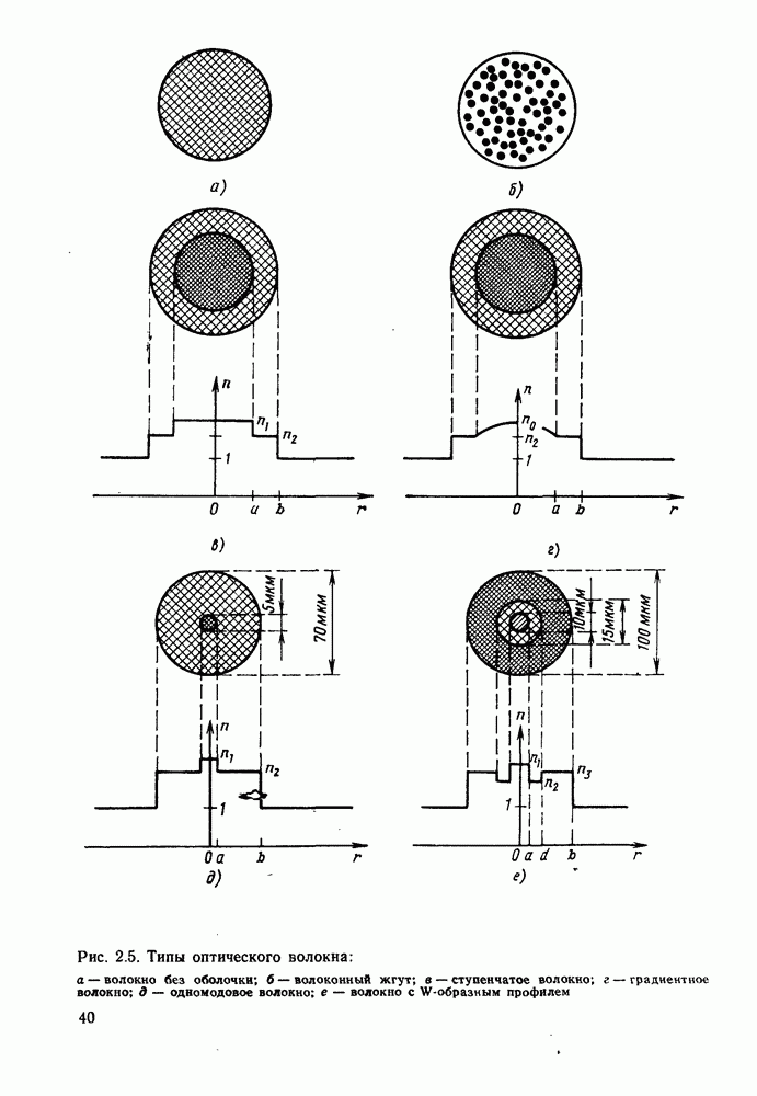 Одно из достоинств модового анализа состоит в том, что он позволяет просто определять распределение плотности мощности в волокне для каждой моды путем вычисления вектора Пойнтинга В большинстве многомодовых волокон, используемых в оптических системах связи, одновременно распространяется много мод. Рассмотрим кратко способ оценки числа распространяющихся в волокне мод. Большая часть оптической мощности переносится в сердцевине