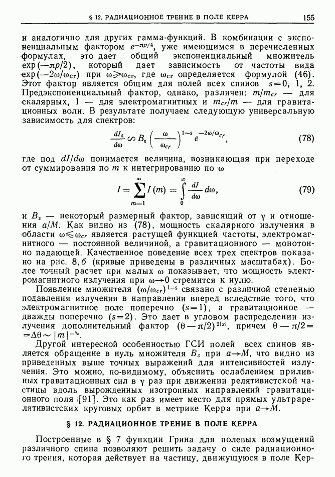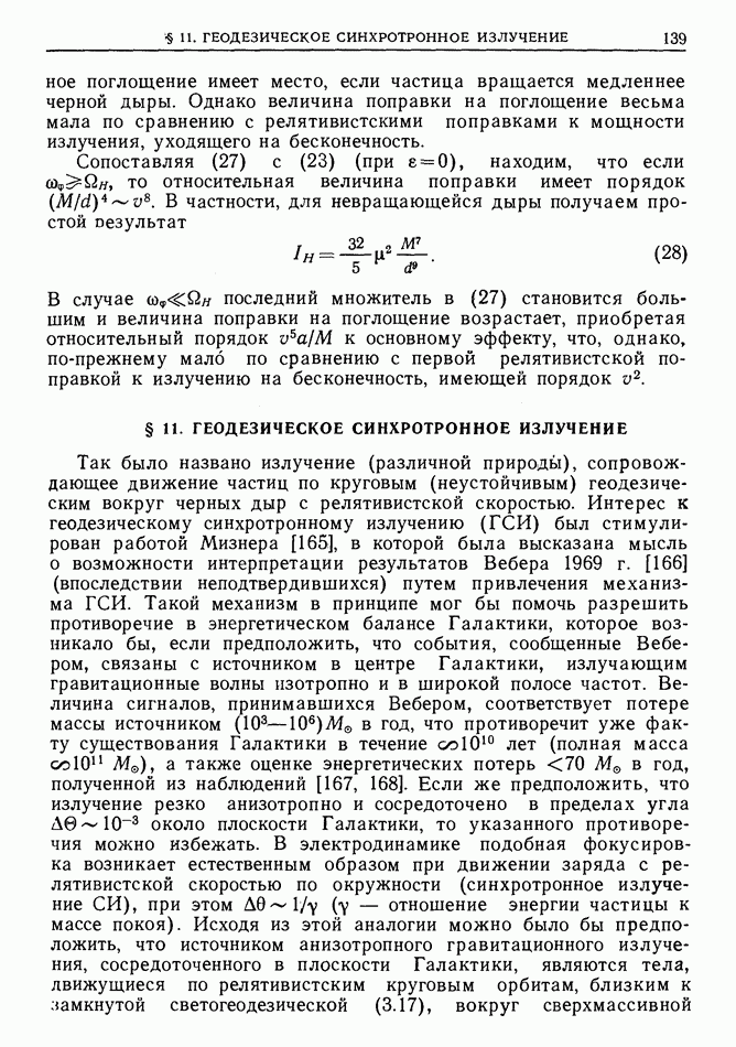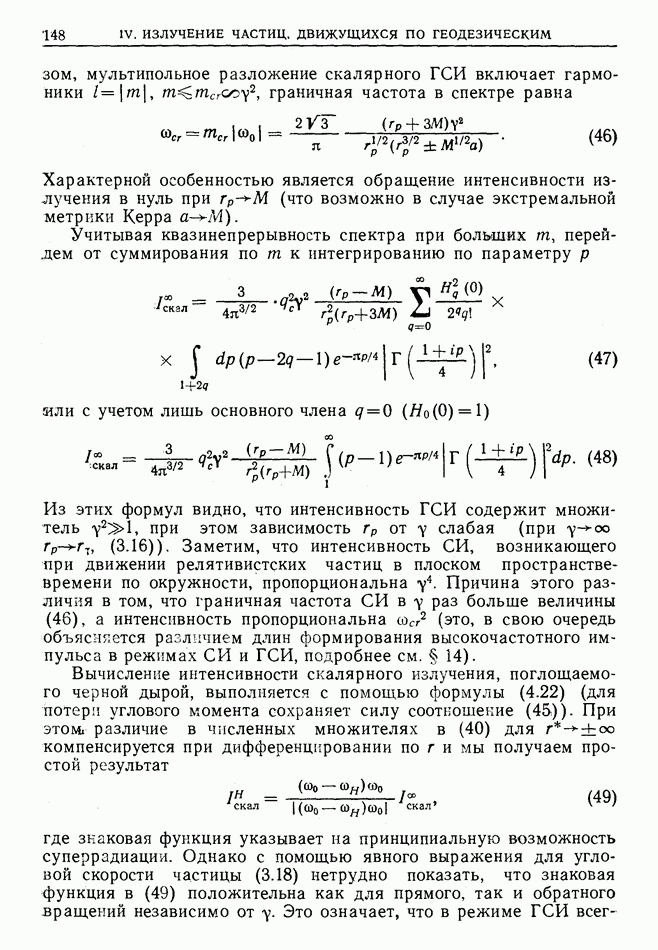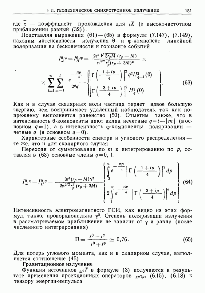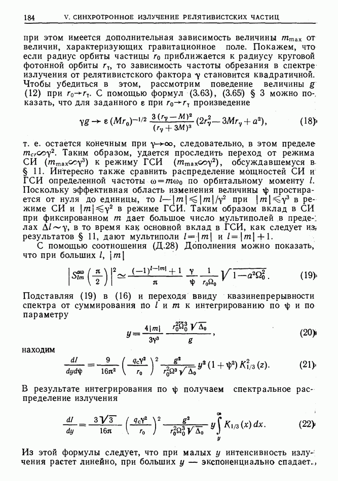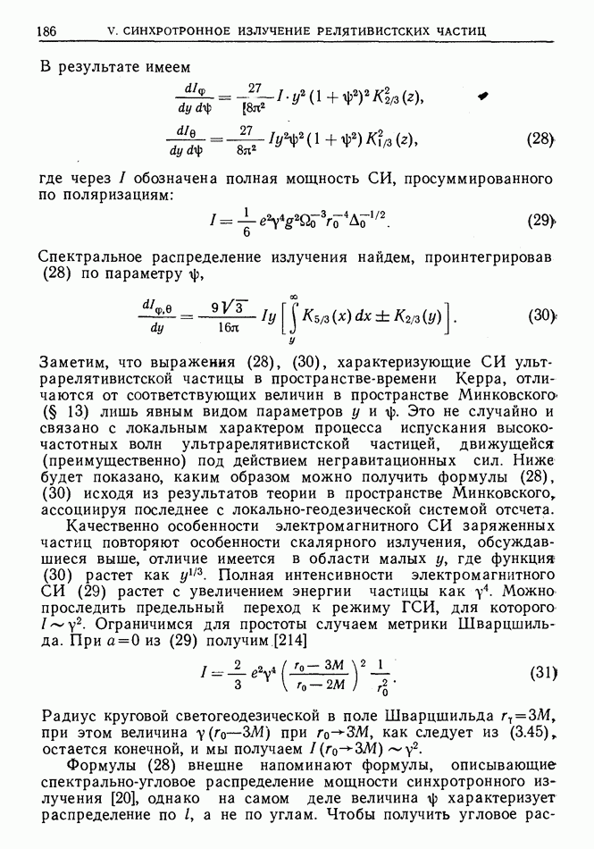 лоренцев фактор частицы (§ 3)). Распространение высокочастотного импульса излучения можно рассматривать в рамках геометрической оптики. Поскольку ультрарелятивистская частица излучает в узкий конус около направления движения, траектория испускаемого высокочастотного импульса будет близка к траектории самой частицы, вследствие чего длина участка траектории, с которого «собирается» импульс излучения в заданном направлении, увеличится в у раз по сравнению с длиной дуги формирования СИ в плоском пространстве-времени [173]  где