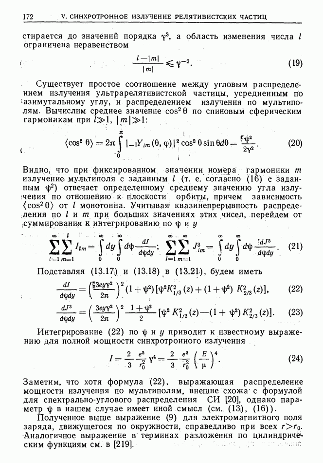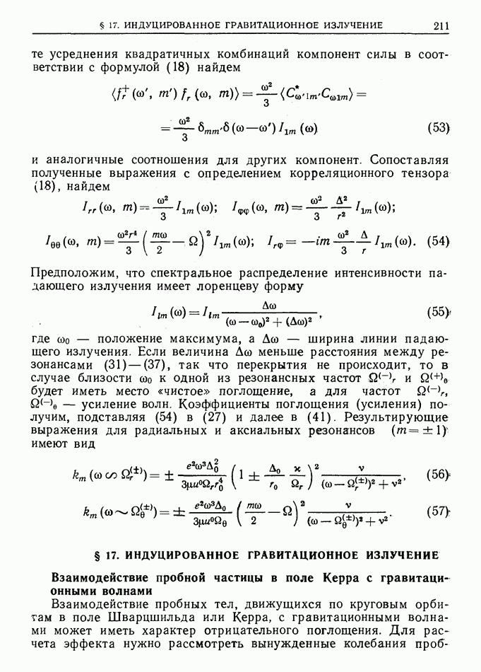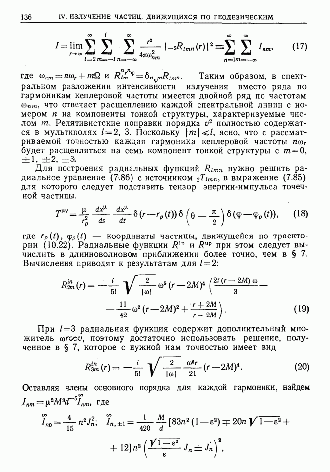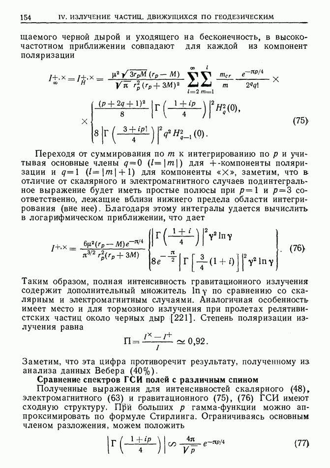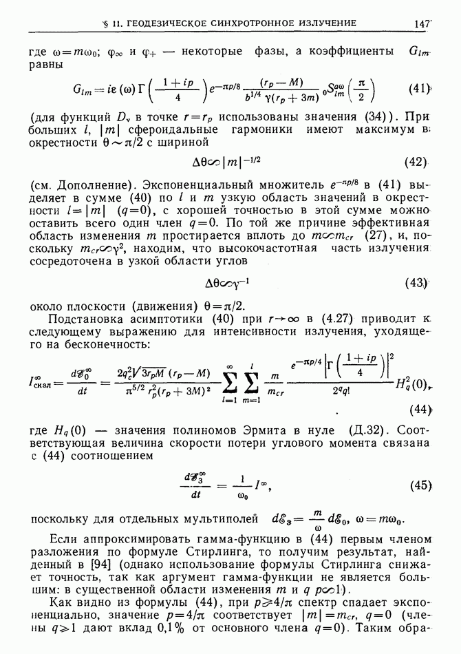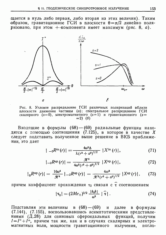 лоренцев фактор частицы (§ 3)). Распространение высокочастотного импульса излучения можно рассматривать в рамках геометрической оптики. Поскольку ультрарелятивистская частица излучает в узкий конус около направления движения, траектория испускаемого высокочастотного импульса будет близка к траектории самой частицы, вследствие чего длина участка траектории, с которого «собирается» импульс излучения в заданном направлении, увеличится в у раз по сравнению с длиной дуги формирования СИ в плоском пространстве-времени [173]  где