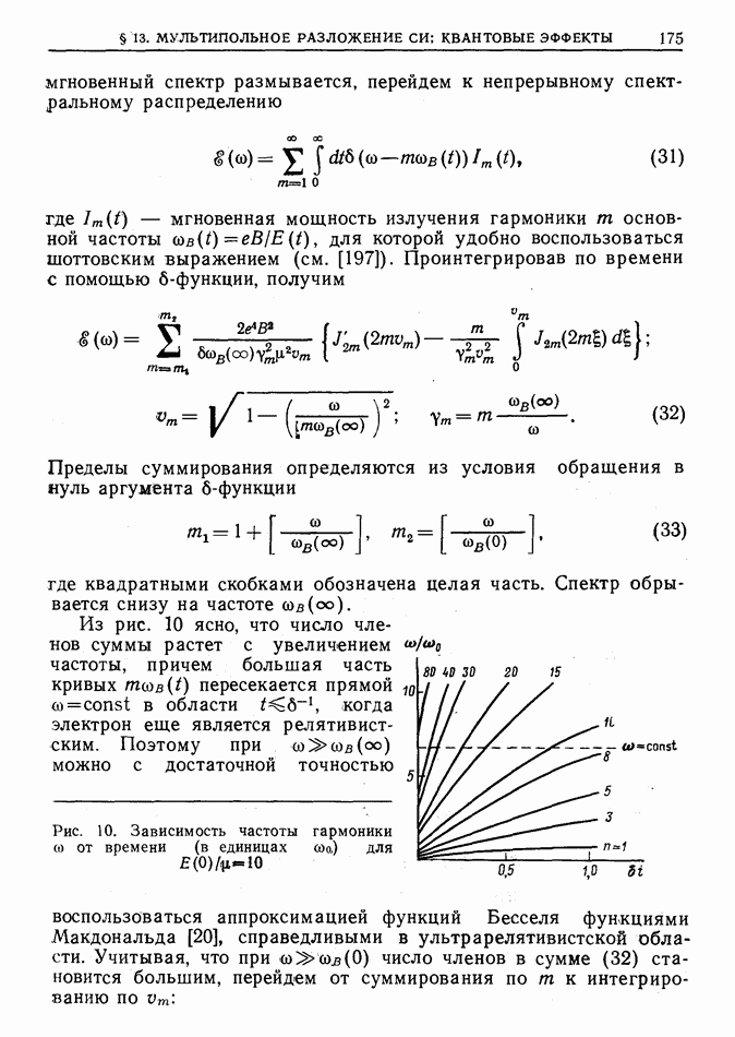 (рис. 13, б), поэтому длина дуги формирования импульса излучения в заданном направлении к асимптотически удаленному наблюдателю уже не содержит малого множителя  Поэтому характерная частота в спектре ГСИ оказывается в у раз меньше величины (2), т. е.