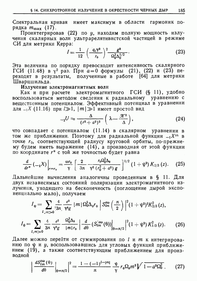 § 14. СИНХРОТРОННОЕ ИЗЛУЧЕНИЕ В ОКРЕСТНОСТИ ЧЕРНЫХ ДЫР