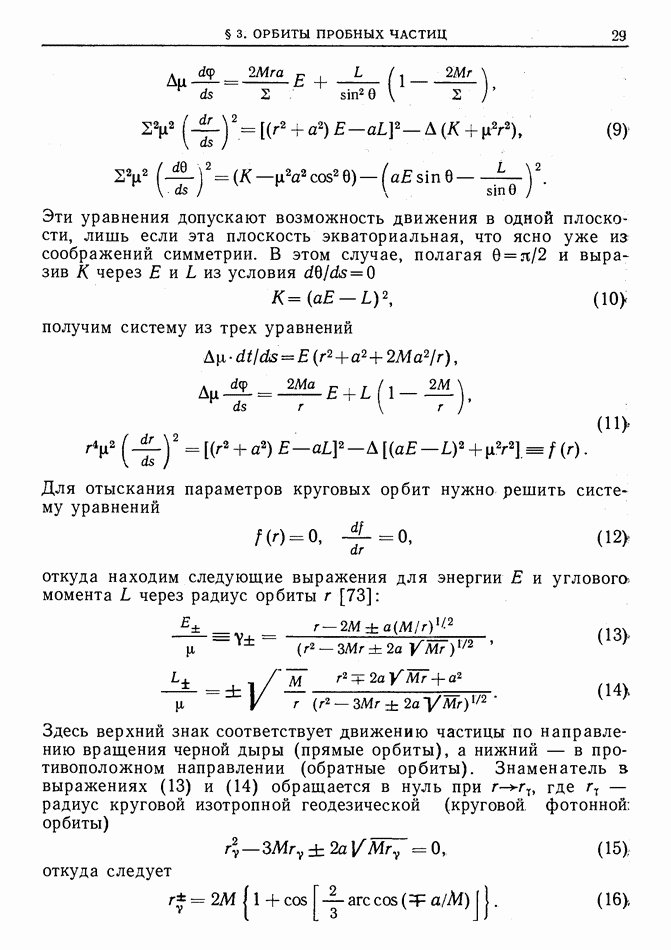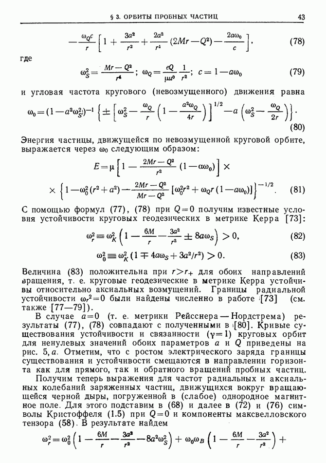 Здесь мы рассмотрим излучение релятивистских заряженных частиц, движущихся по круговым орбитам в экваториальной плоскости шварцшильдовой и керровской черных дыр при наличии внешнего магнитного поля (соответствующие траектории были описаны в § 3). На примере этой задачи можно проследить переход от режима синхротронного излучения в плоском пространстве-времени к режиму геодезического синхротронного излучения.