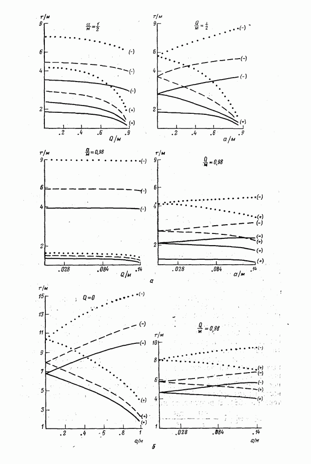 Рис. 13. Длина формирования высокочастотного импульса излучения ультрарелятивистской частицы, движущейся по окружности в плоском пространстве-времени (а), вблизи круговой светогеодезической (б)