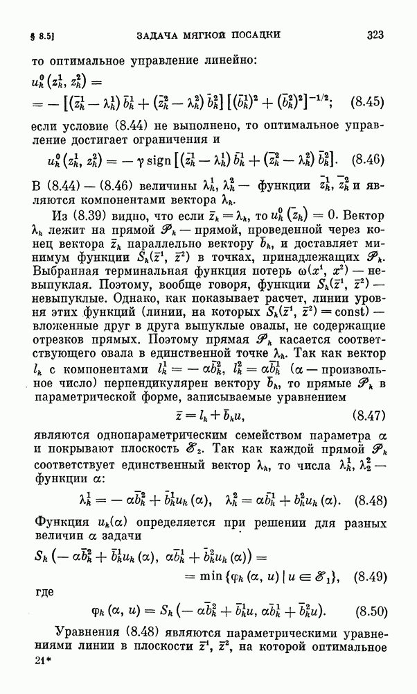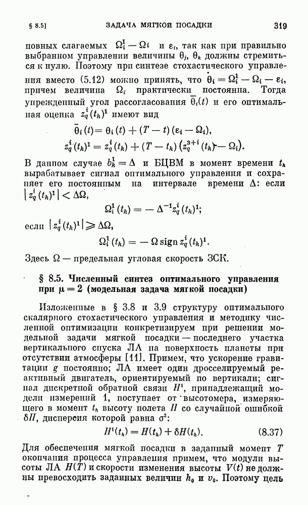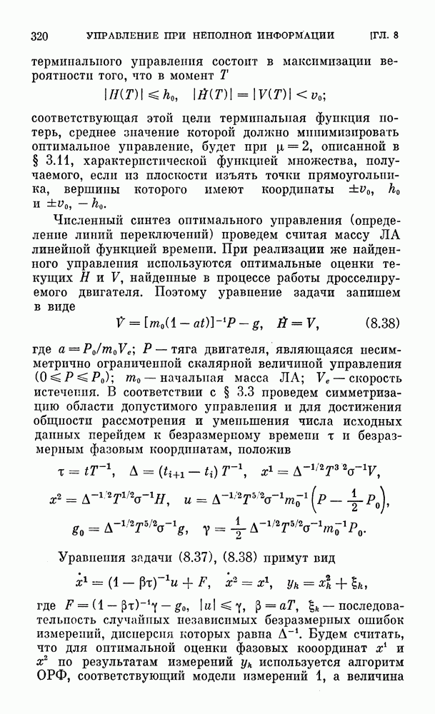 с экипажем. В этом случае модуль допустимых отрицательных перегрузок существенно меньше, чем допустимые положительные перегрузки. Аналогичная ситуация возникает и при синтезе корректирующего управления в окрестности номинальной траектории, когда, например, путем решения соответствующей детерминированной вариационной задачи оптимальное номинальное управление определяется некоторой функцией времени. В этом случае ограничен модуль суммы корректирующего управления и этой функции времени и ограничения, накладываемые на корректирующее управление, несимметричны.