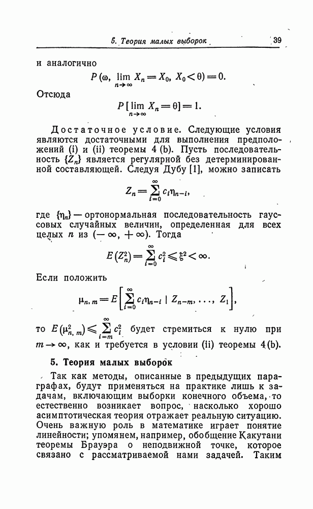 Так как методы, описанные в предыдущих параграфах, будут применяться на практике лишь к задачам, включающим выборки конечного объема, то естественно возникает вопрос, насколько хорошо асимптотическая теория отражает реальную ситуацию. Очень важную роль в математике играет понятие линейности; упомянем, например, обобщение Какутани теоремы Брауэра о неподвижной точке, которое связано с рассматриваемой нами задачей. Таким