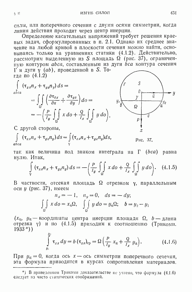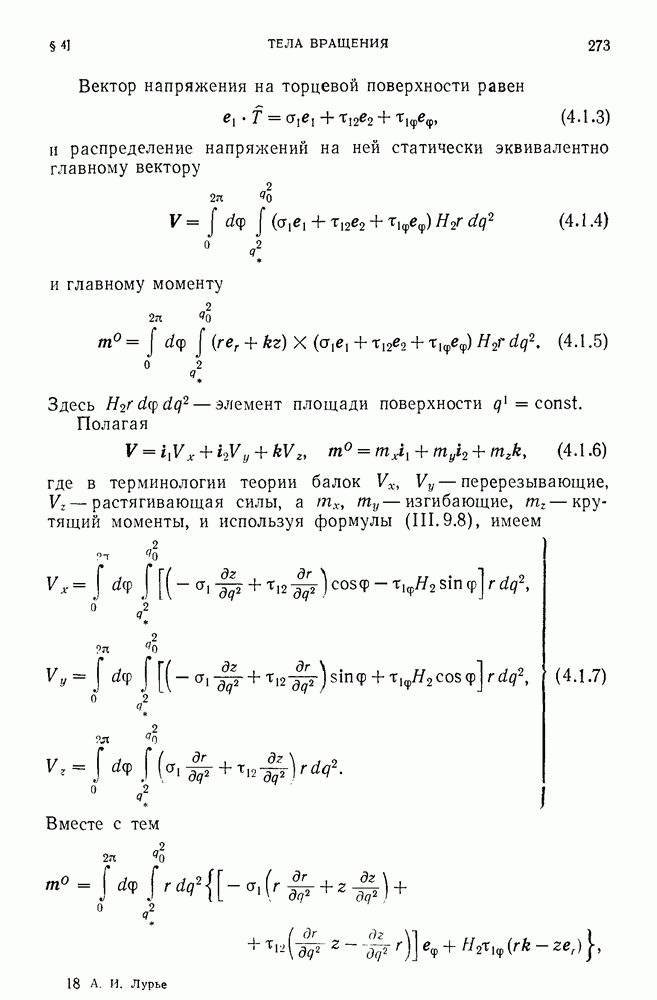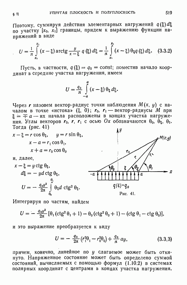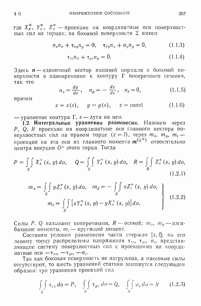 Отсюда получаем выражения проекций на оси х, у главного вектора этого распределения сил на дуге I от начальной ее точки