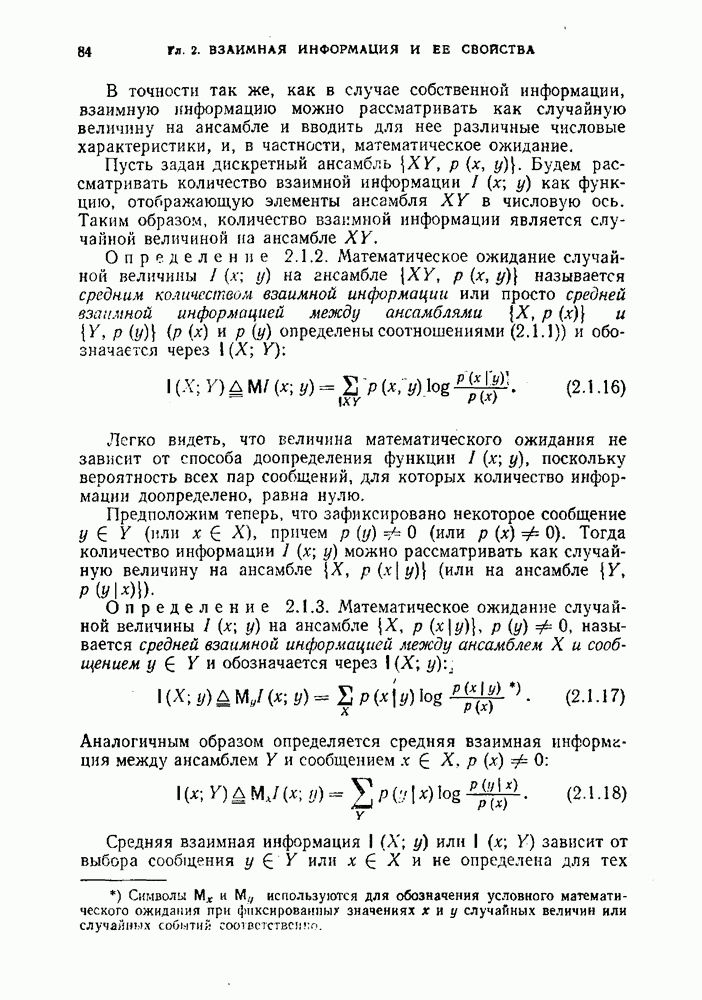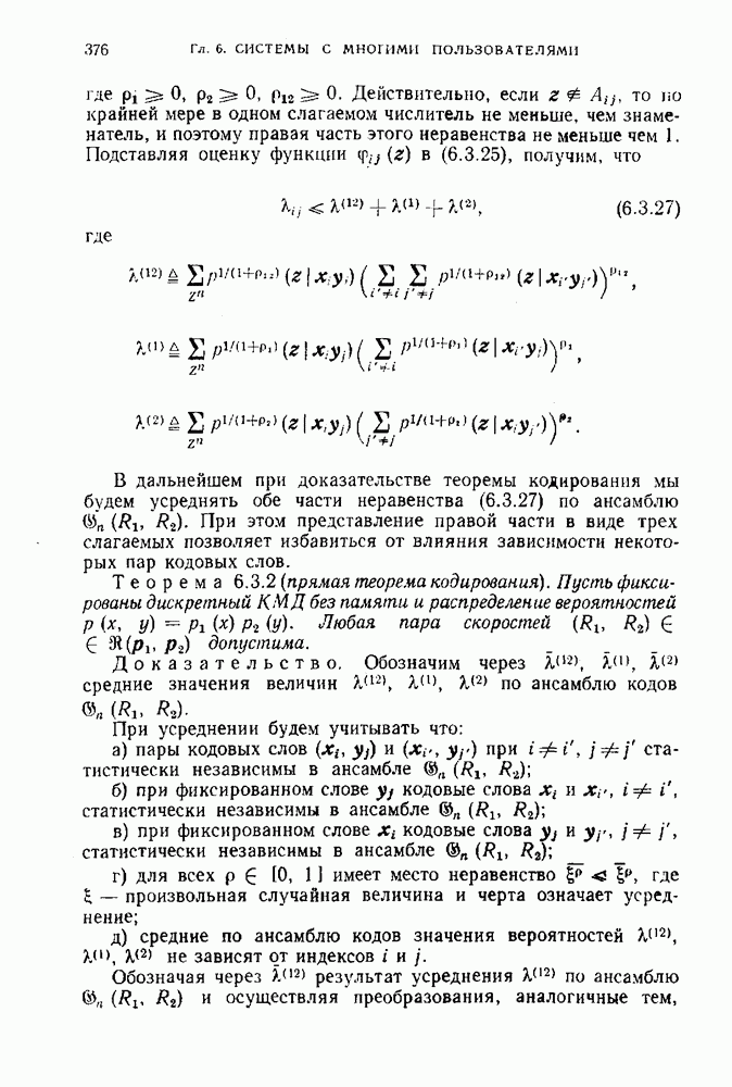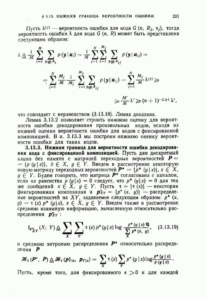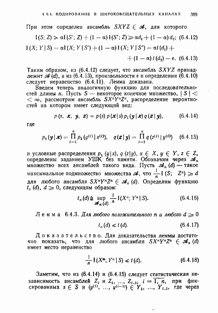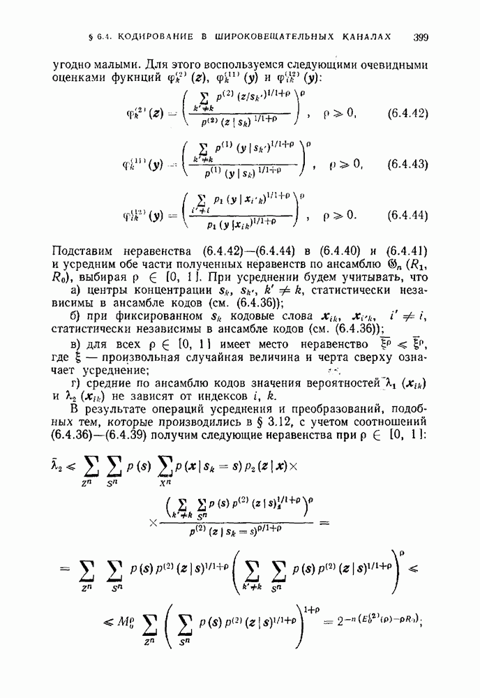 где средние взаимные информации вычислены в соответствии с распределением вероятностей (6.4.8) на ансамбле
