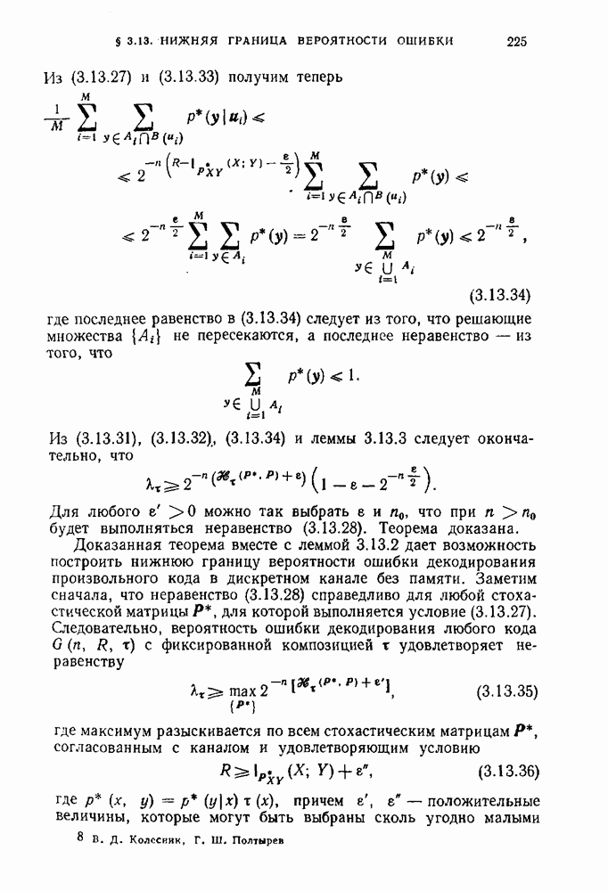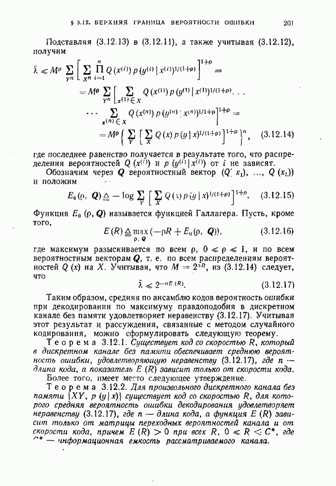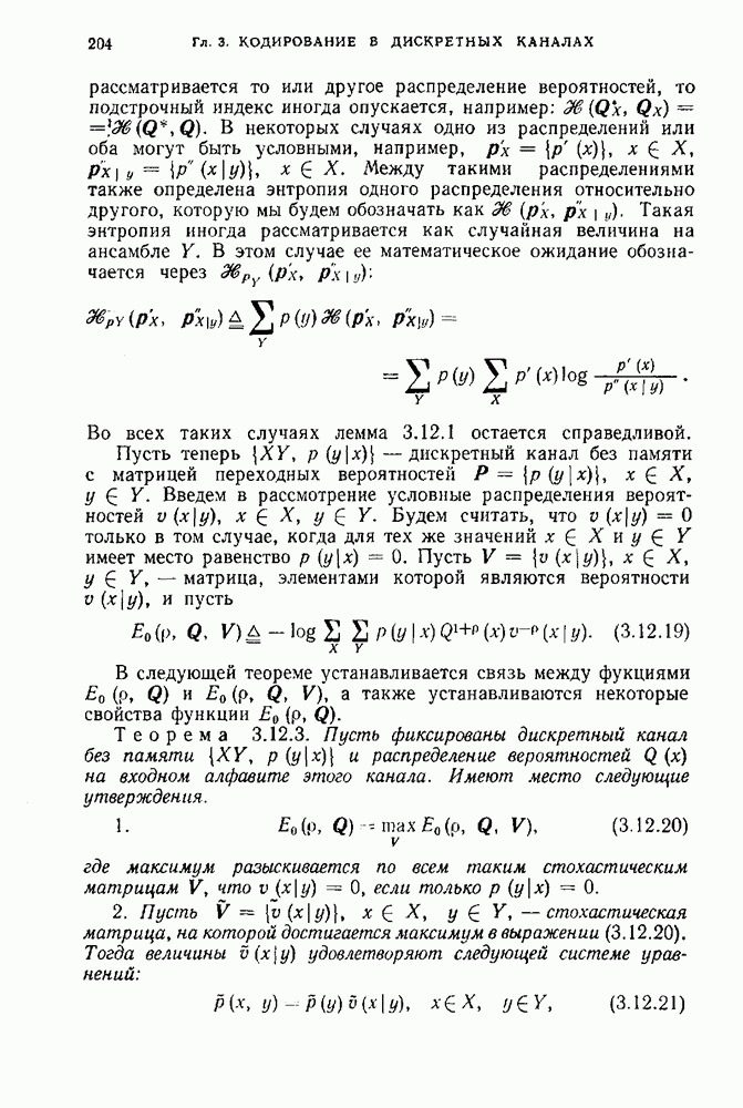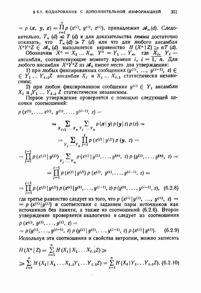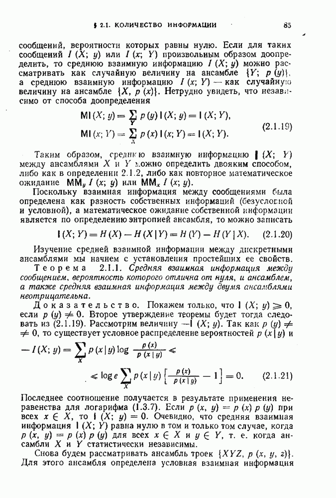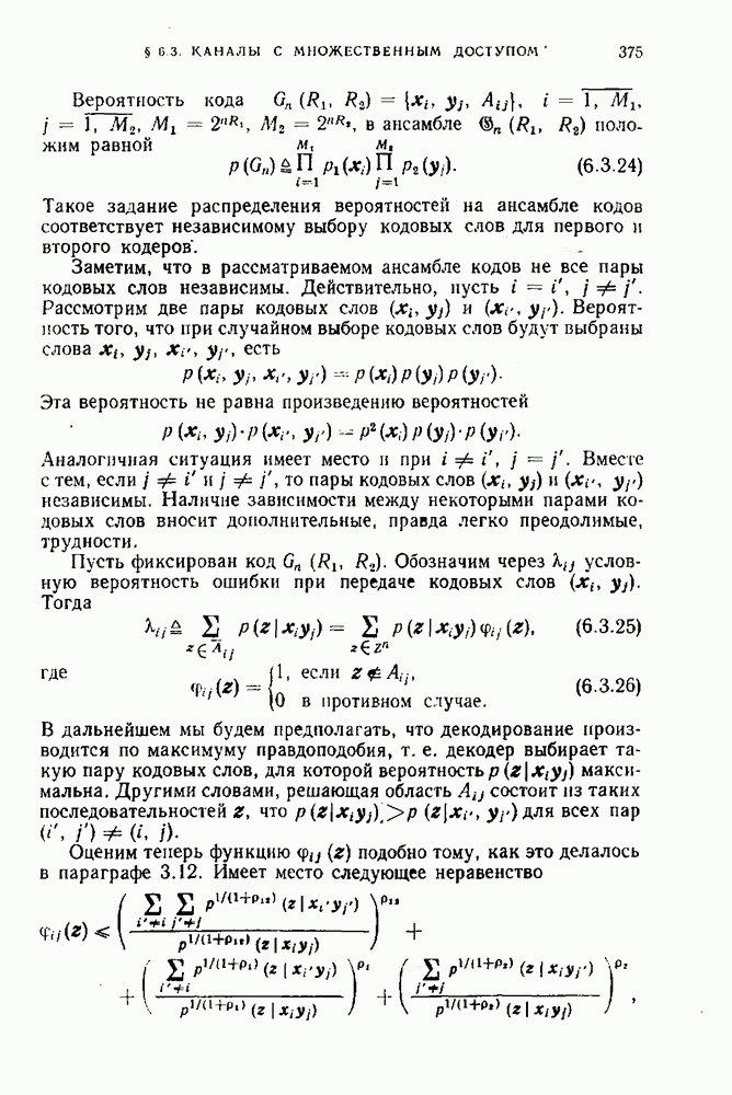 где средние взаимные информации вычислены в соответствии с распределением вероятностей (6.4.8) на ансамбле