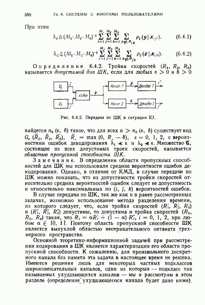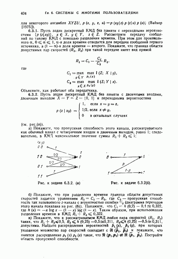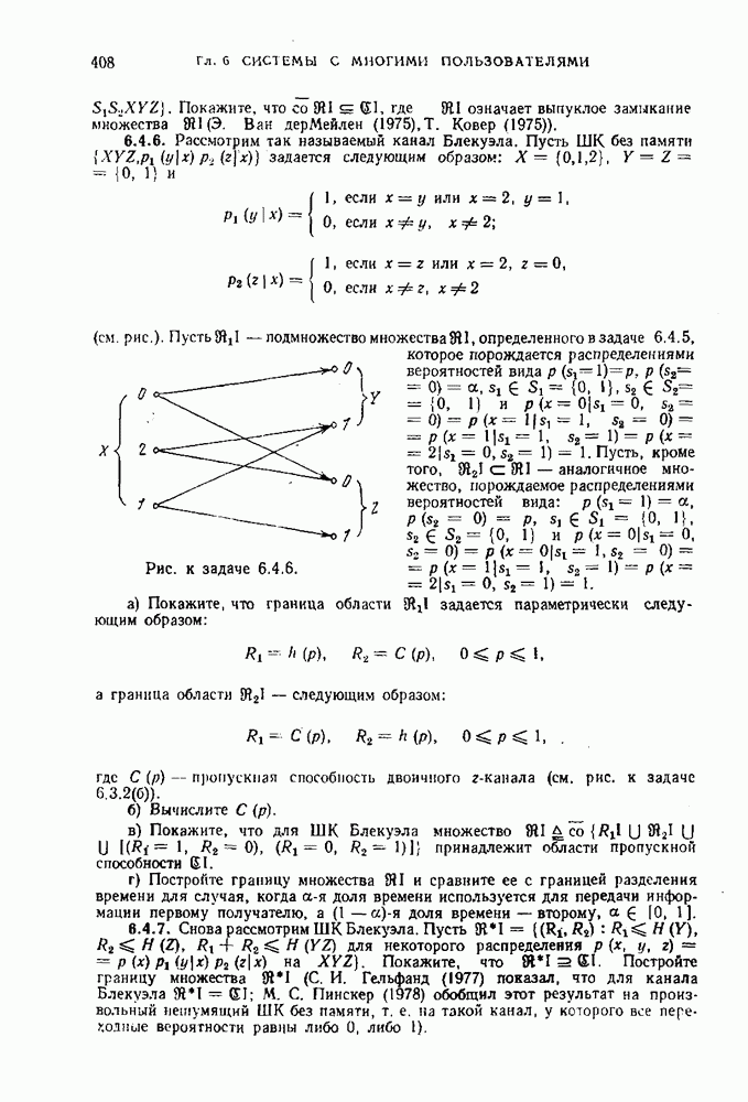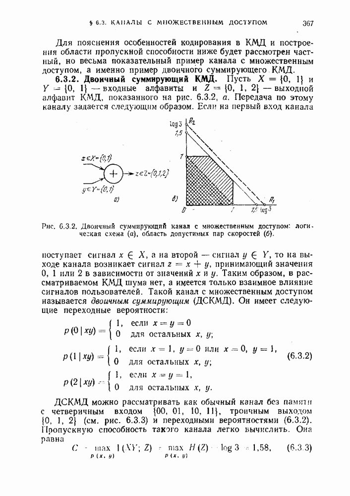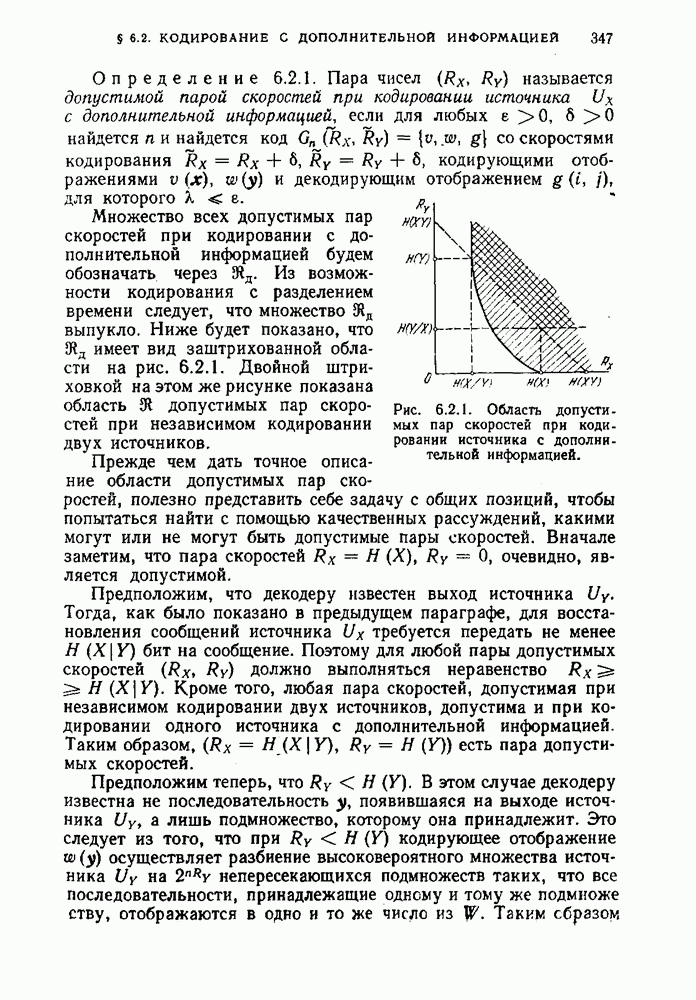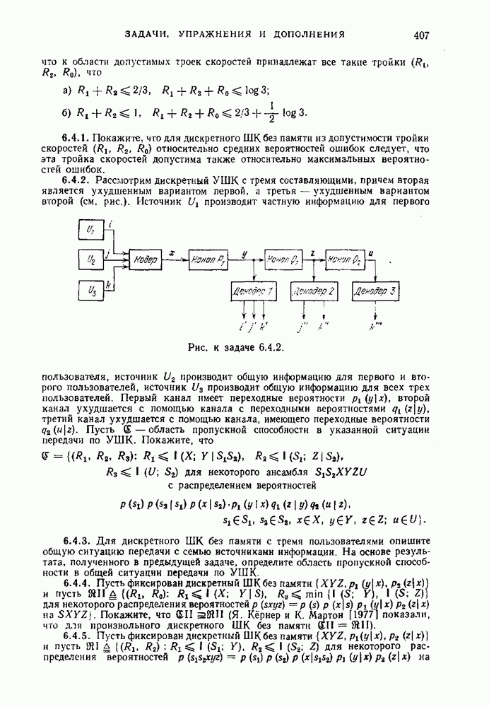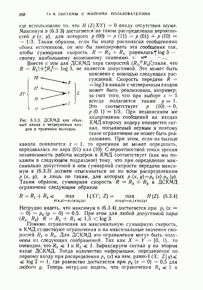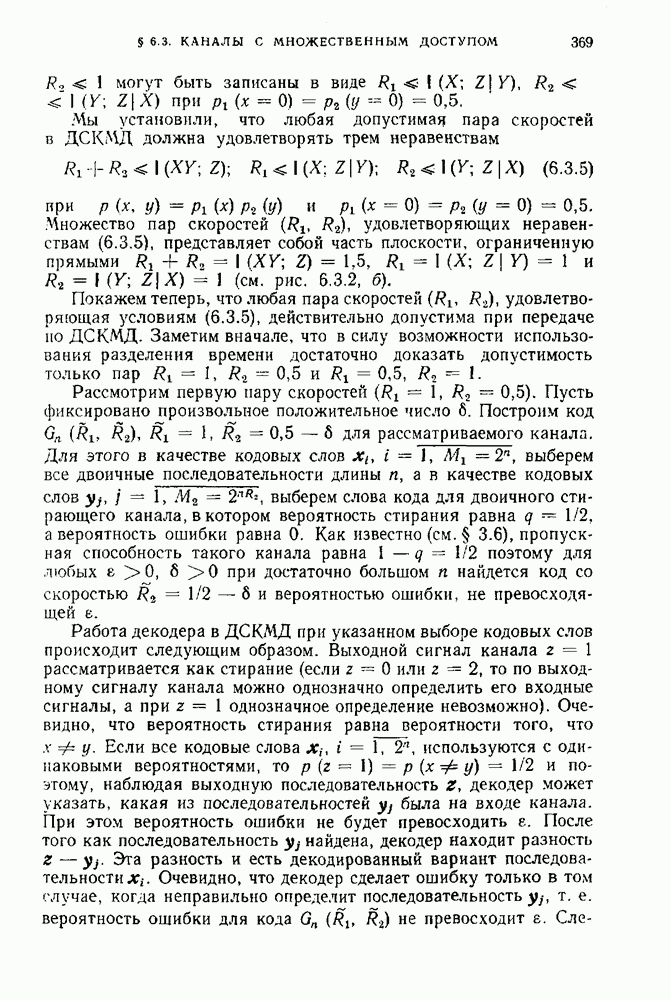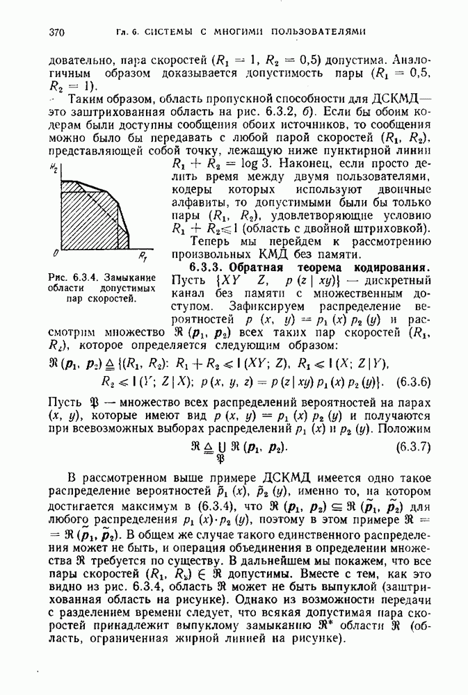 Область допустимых пар скоростей, задаваемая этими неравенствами, показана на рис. 6.4.7. Рассмотренный пример наводит на мысль о том, что и для произвольного дискретного УШК без памяти допустимые пары скоростей могут быть получены аналогичным способом. А именно, пусть