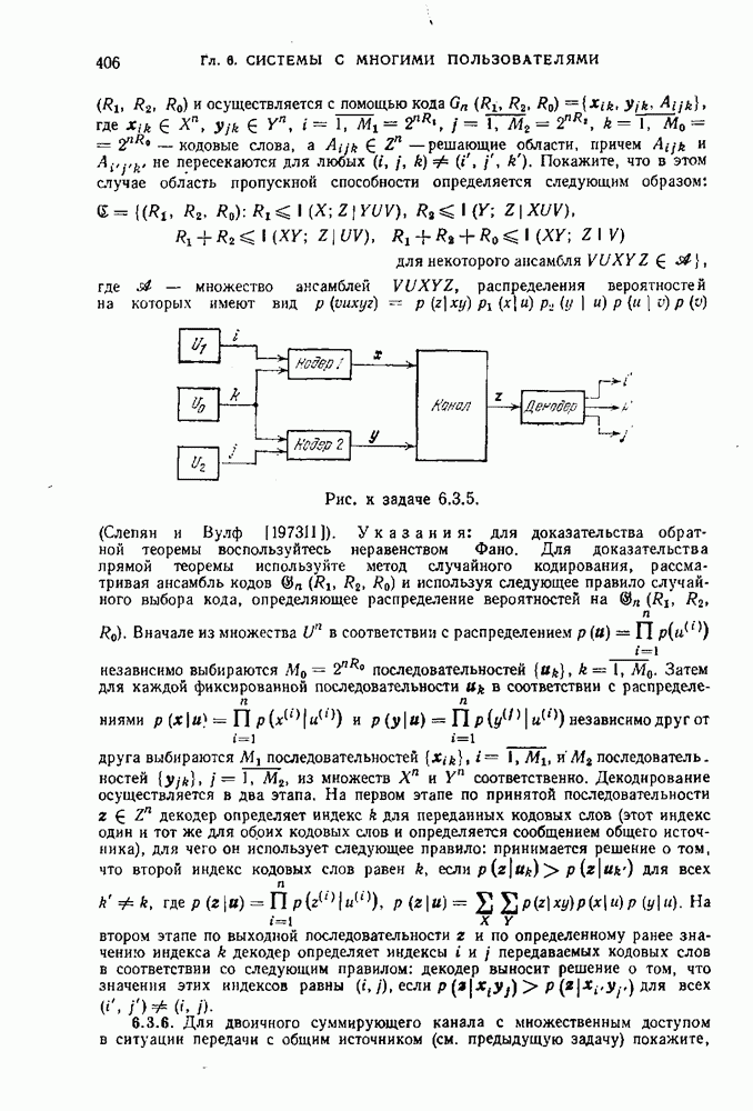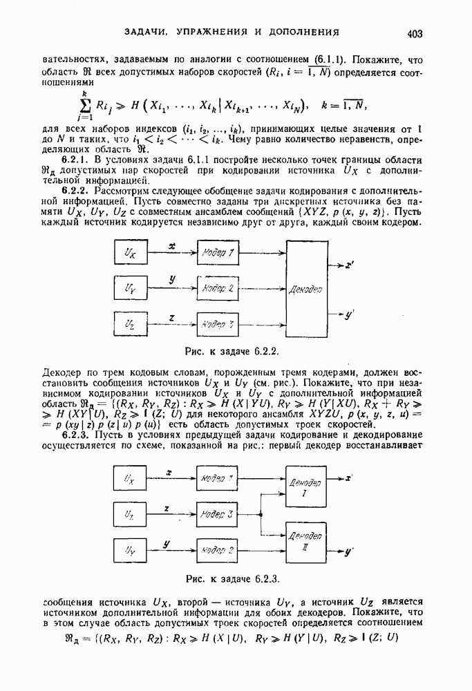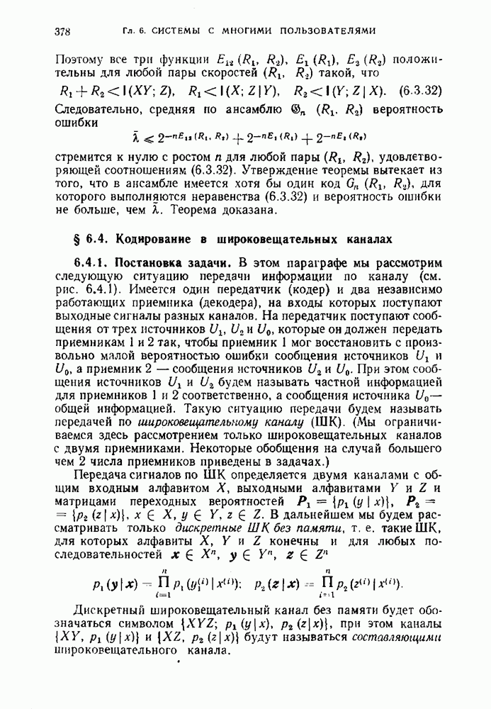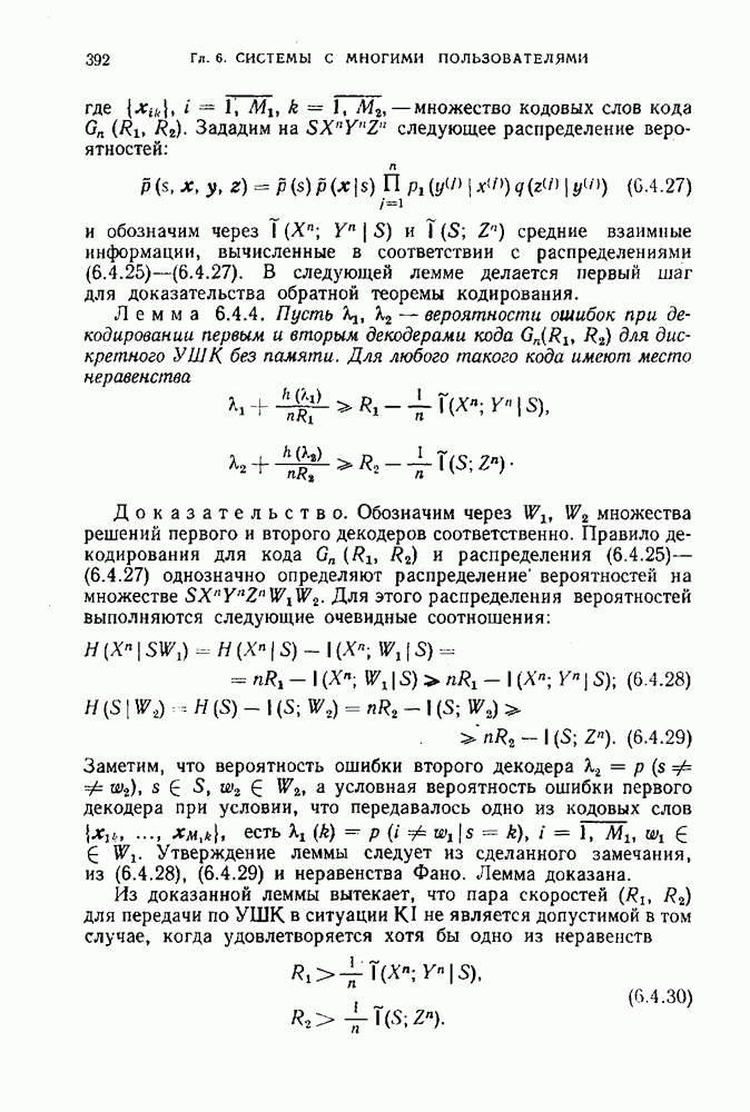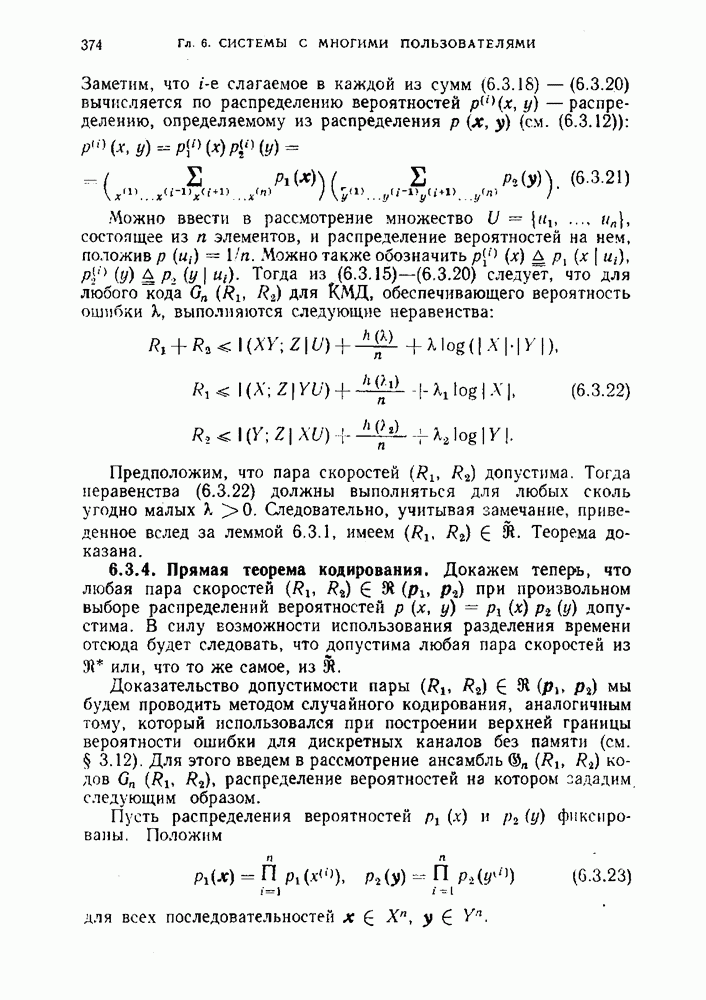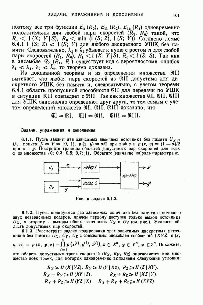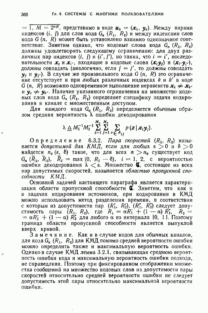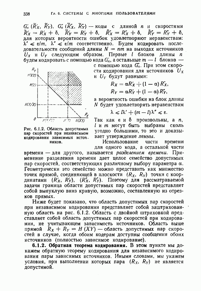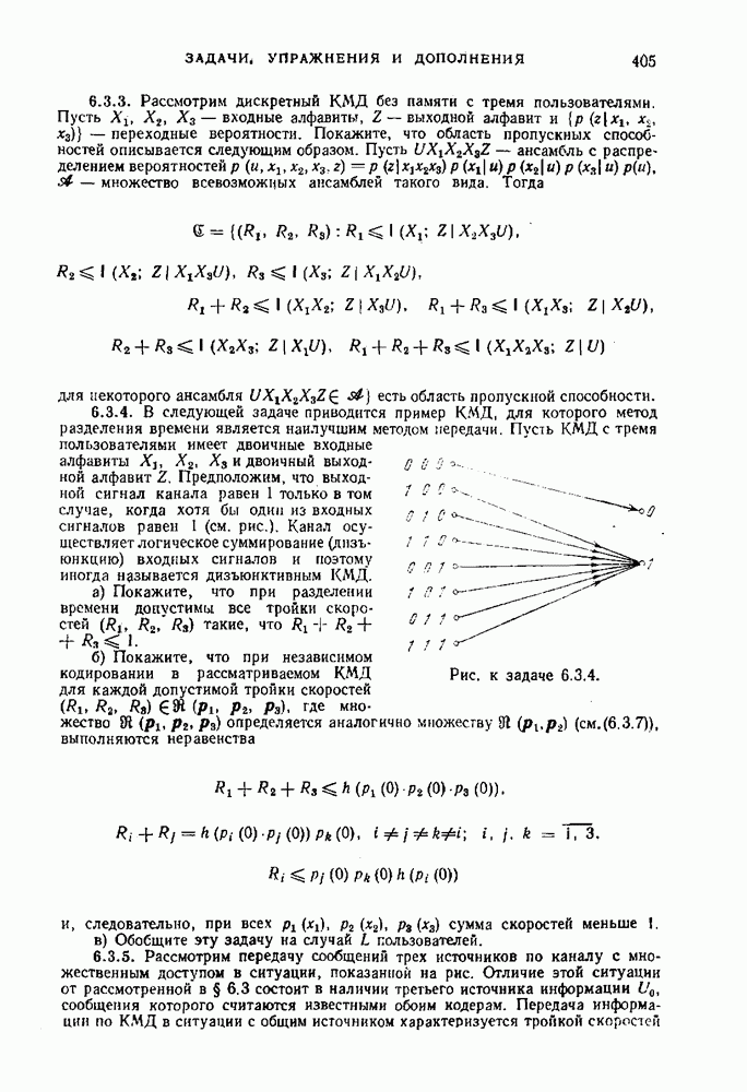 Область допустимых пар скоростей, задаваемая этими неравенствами, показана на рис. 6.4.7. Рассмотренный пример наводит на мысль о том, что и для произвольного дискретного УШК без памяти допустимые пары скоростей могут быть получены аналогичным способом. А именно, пусть