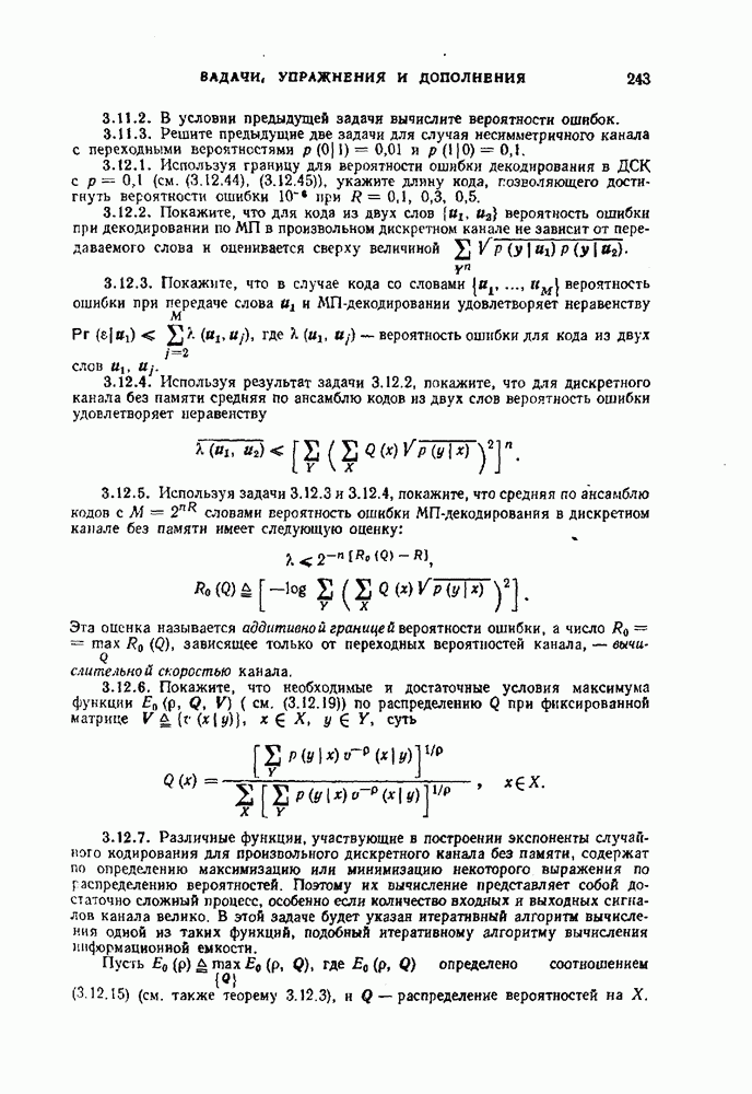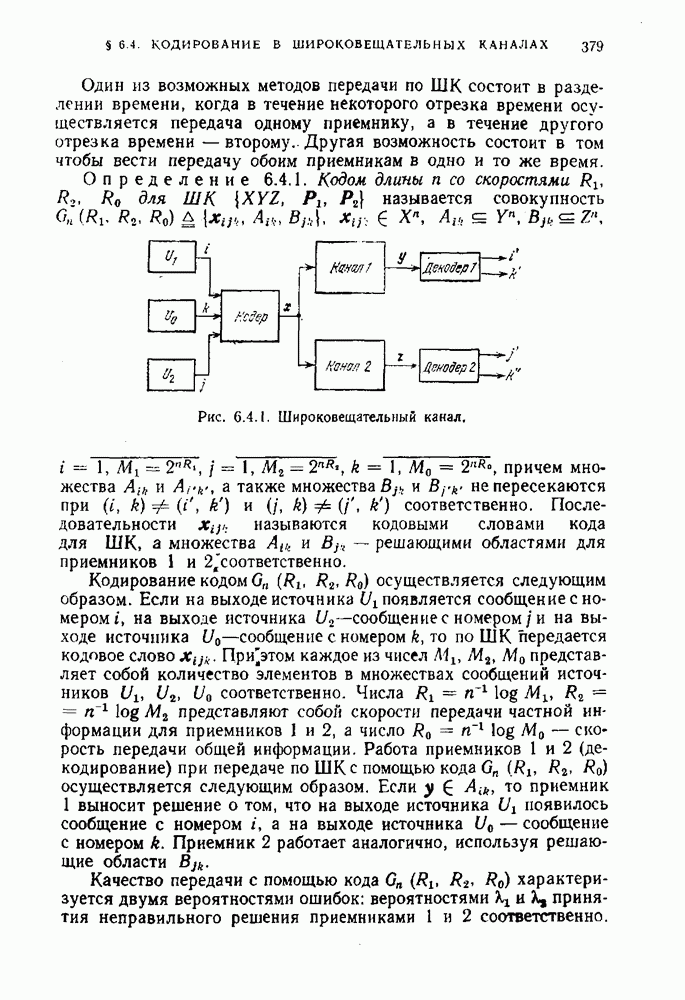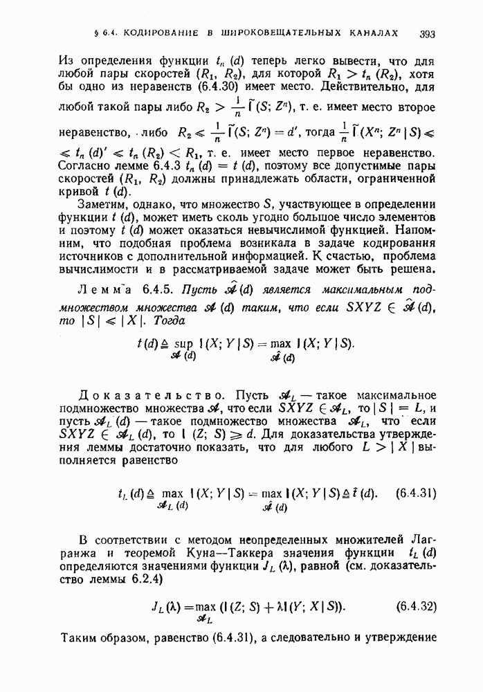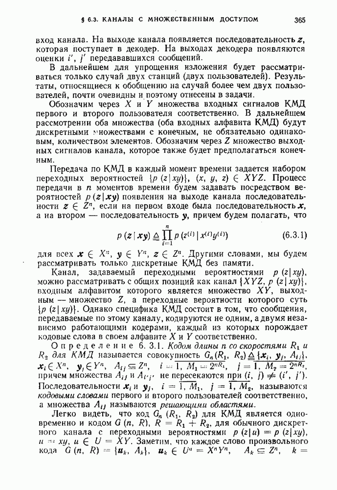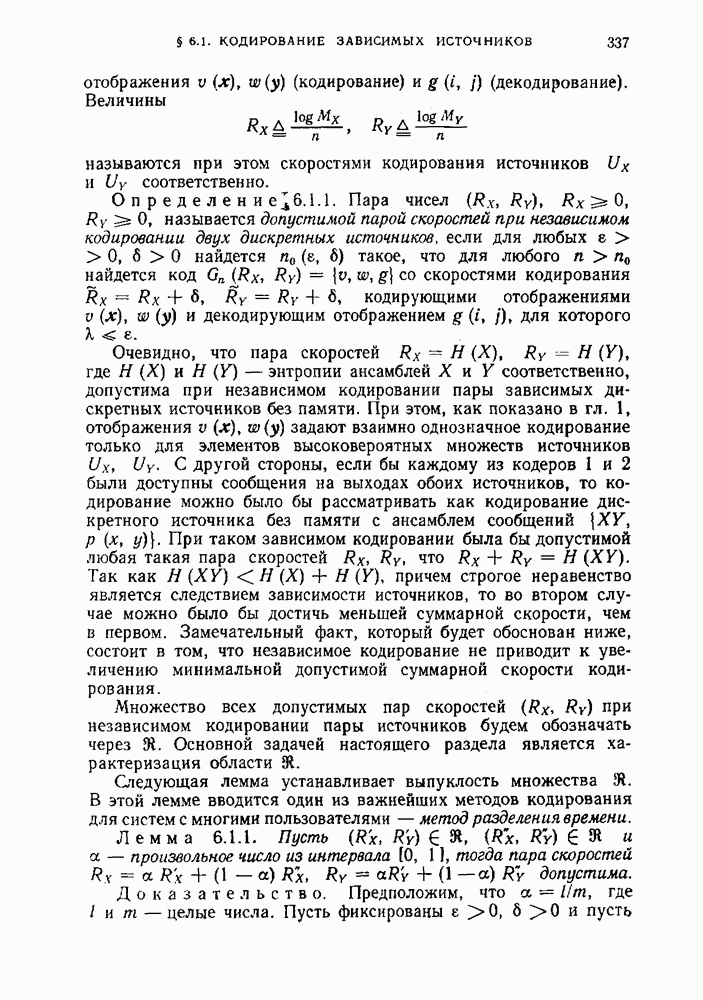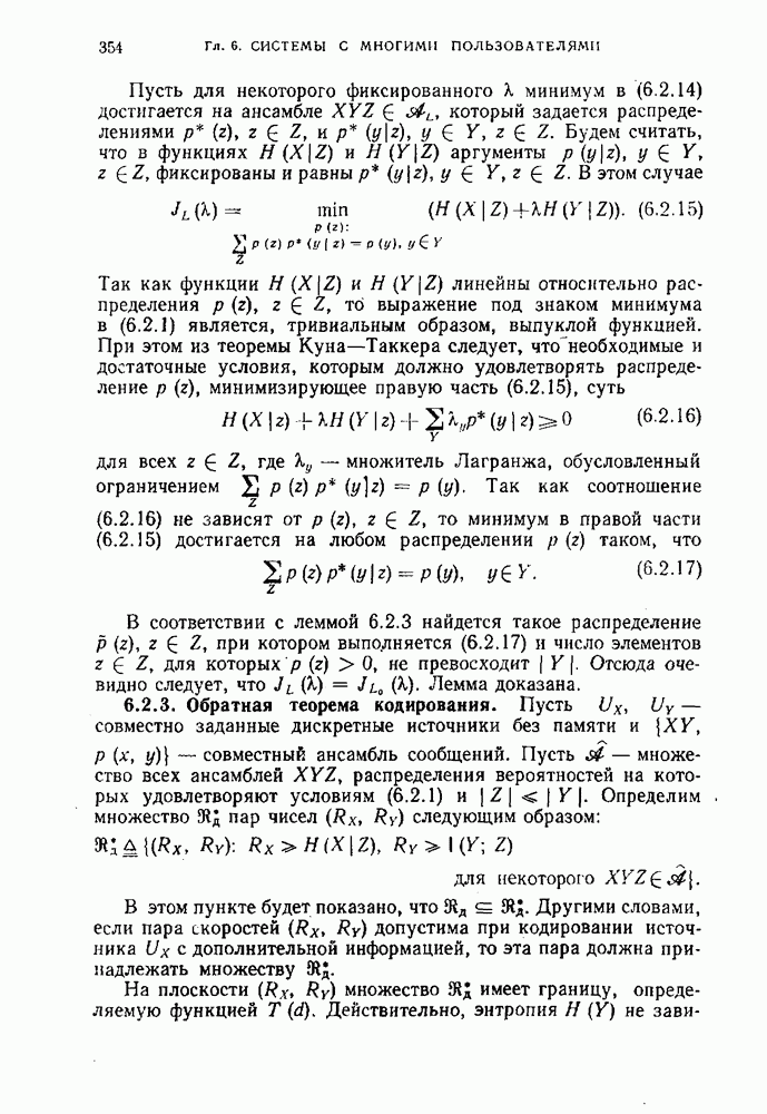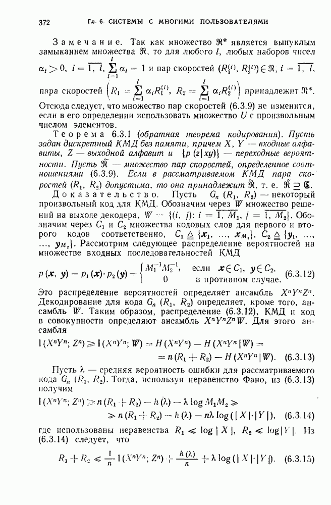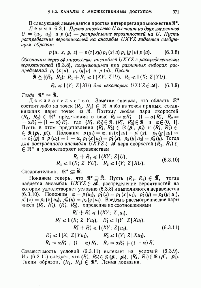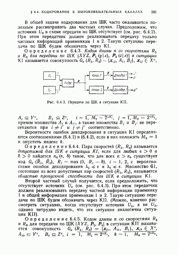 Область допустимых пар скоростей, задаваемая этими неравенствами, показана на рис. 6.4.7. Рассмотренный пример наводит на мысль о том, что и для произвольного дискретного УШК без памяти допустимые пары скоростей могут быть получены аналогичным способом. А именно, пусть