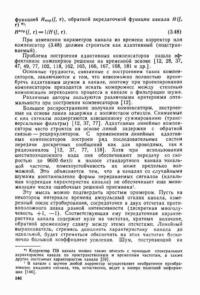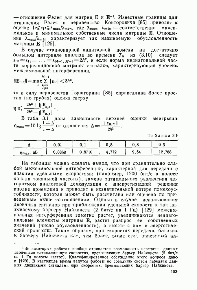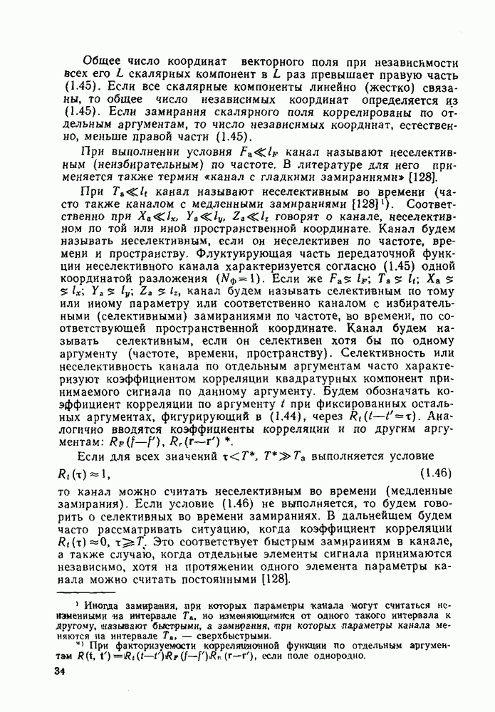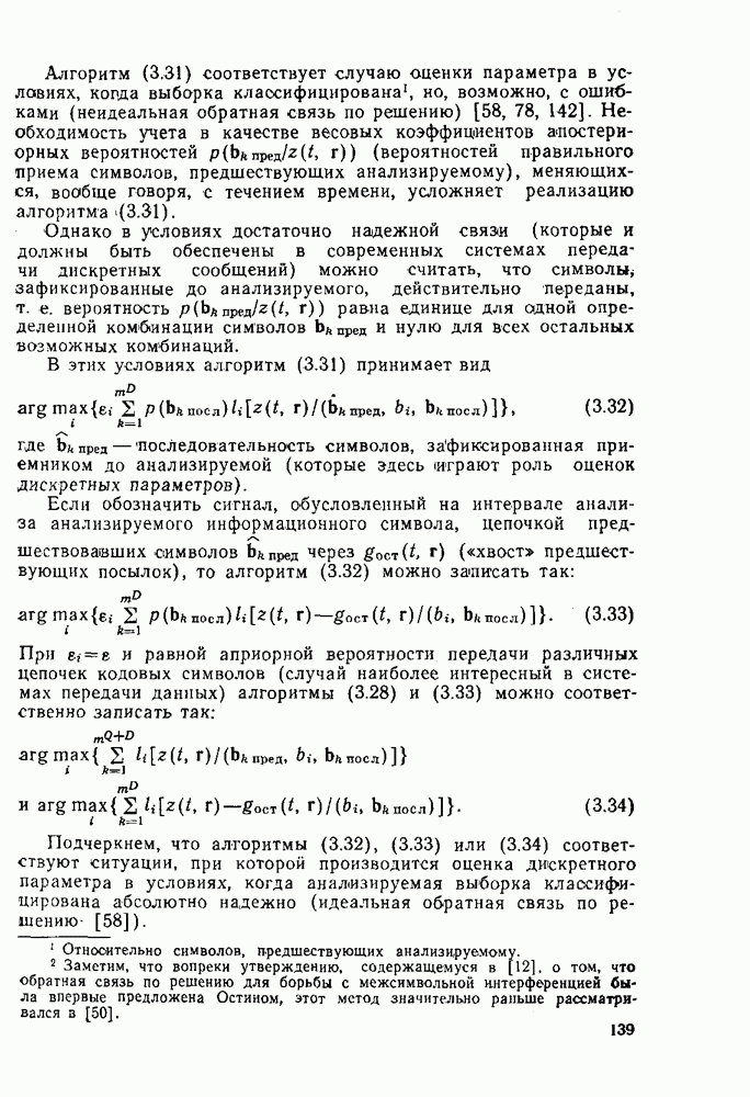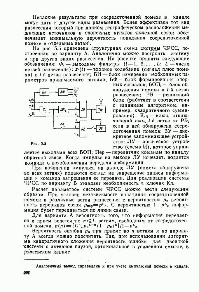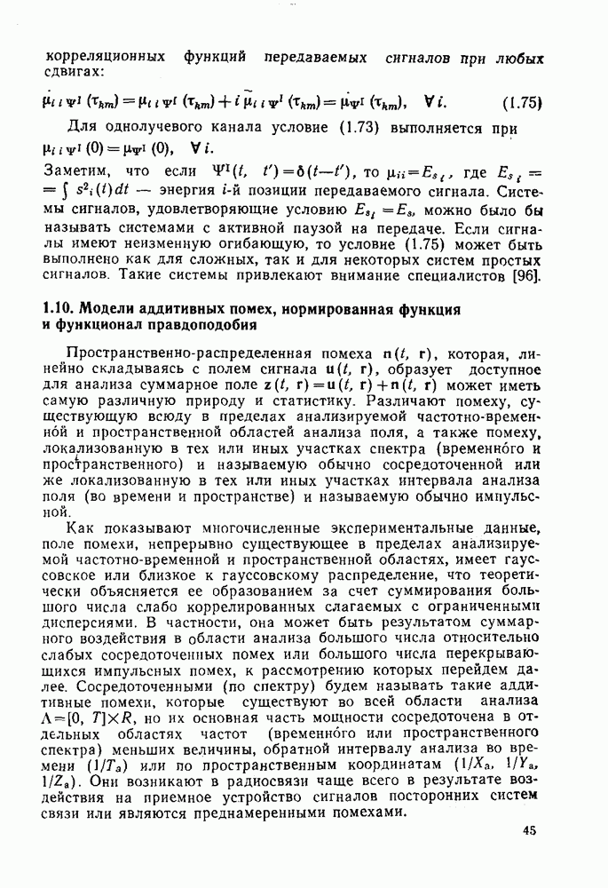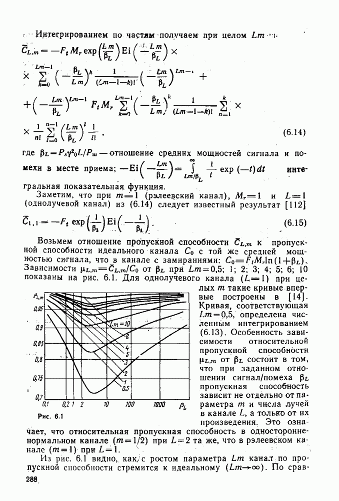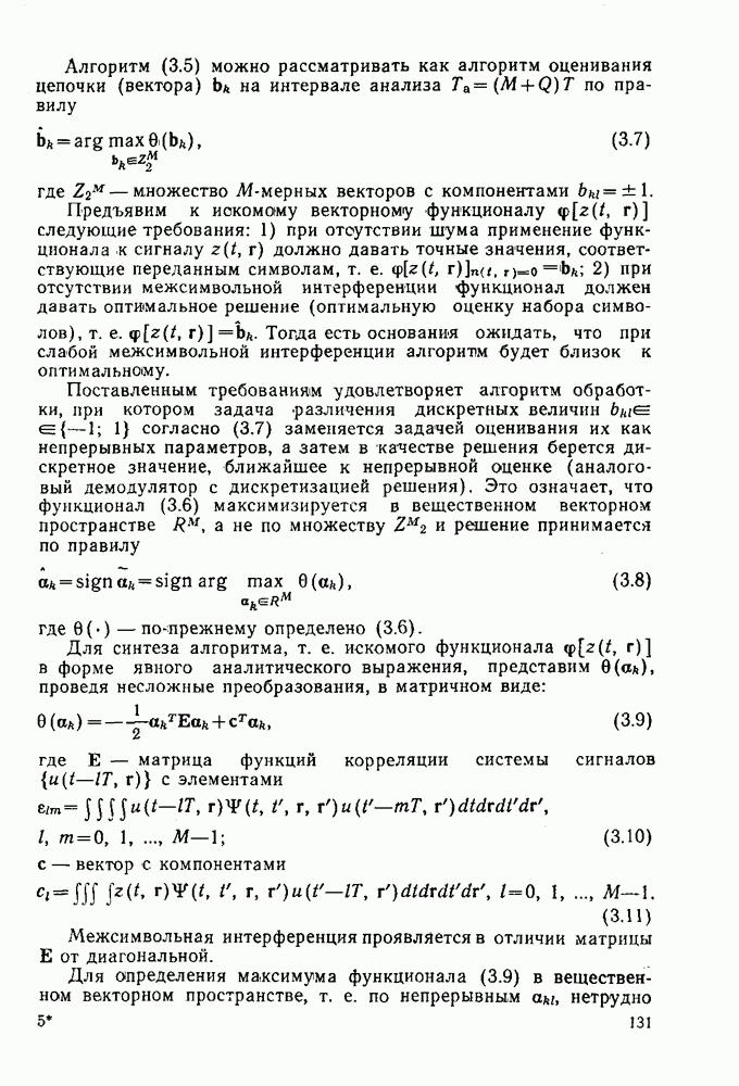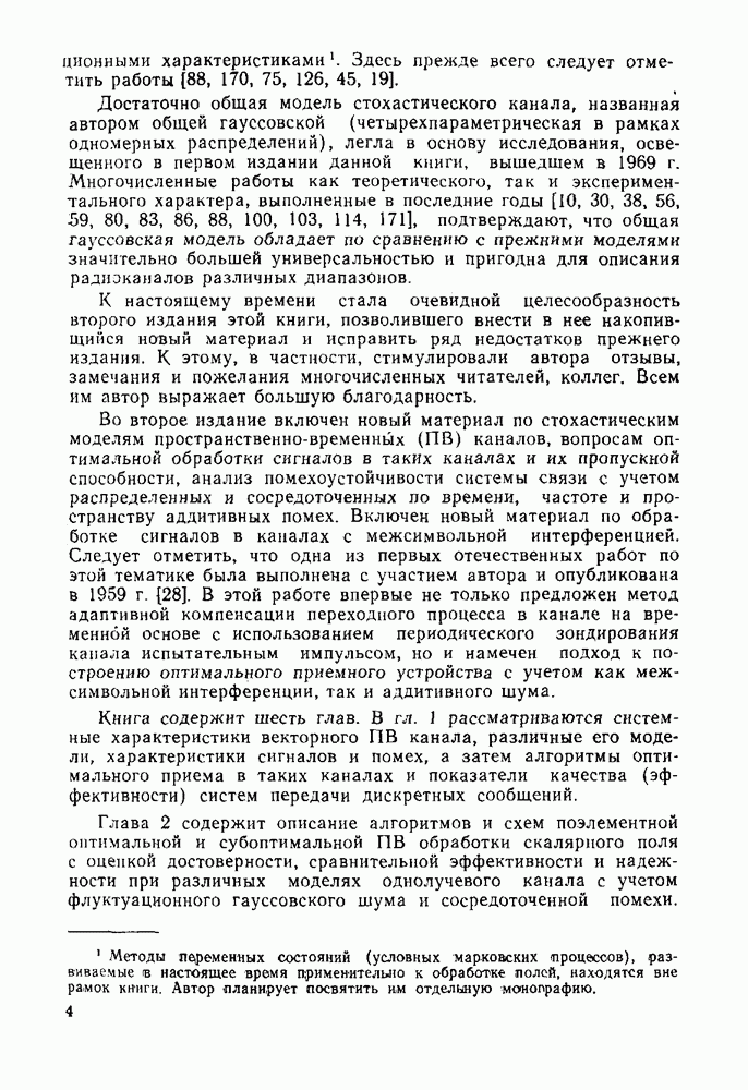 Из сравнения полученных выражений видно, что в каналах с небольшими значениями При Итак, для ортогональной в усиленном смысле системы с активной паузой прием по простому алгоритму квадратичного суммирования (2.132) дает примерно те же результаты, что и более трудная для реализации оптимальная схема. Оценим энергетический проигрыш, связанный с потерей оптимальности (условие Анализ, проведенный в работе [176] для обобщенного рэлеевского канала, показывает, что этот проигрыш монотонно растет с увеличением Таблица 2.7 (см. скан) Из таблицы видно, что если коэффициент взаимной корреляции сигналов по огибающей не превышает 0,5, то энергетический проигрыш не превышает Оценим теперь эффективность простых многопозиционных кодов и одноканальных (по частоте) систем, используемых в четырехпараметрическом канале с гладкими замираниями при независимом приеме элементов сигнала. Для прямой (без канала обратной связи [97, 128]) системы передачи информации с В односторонне-нормальном канале в области малых ошибок с учетом (2.136).
