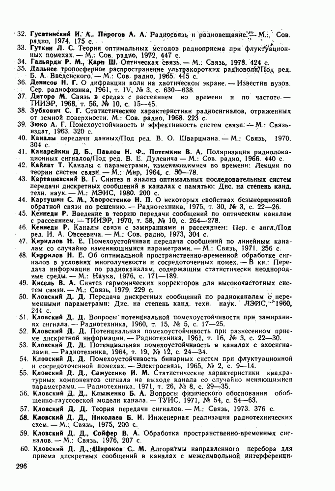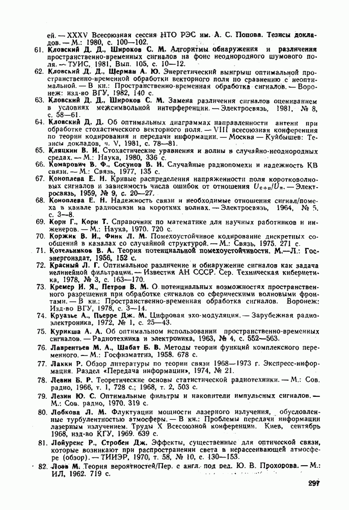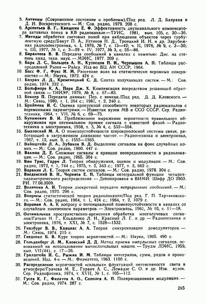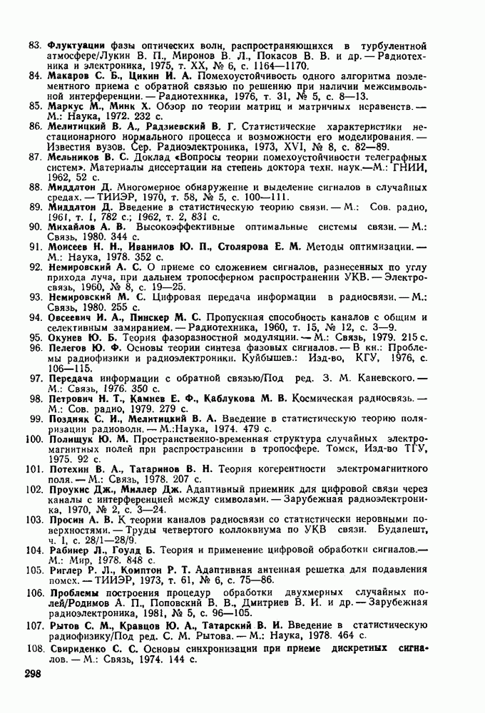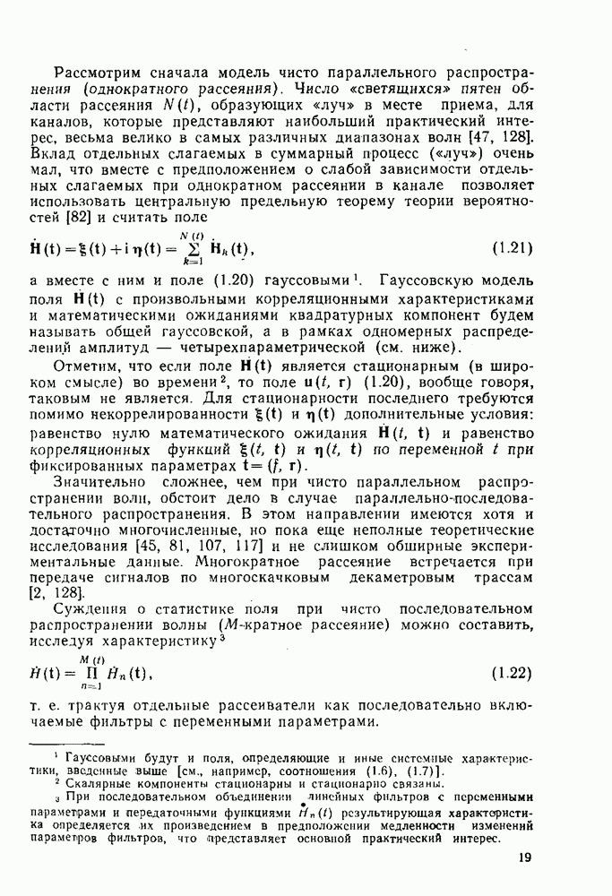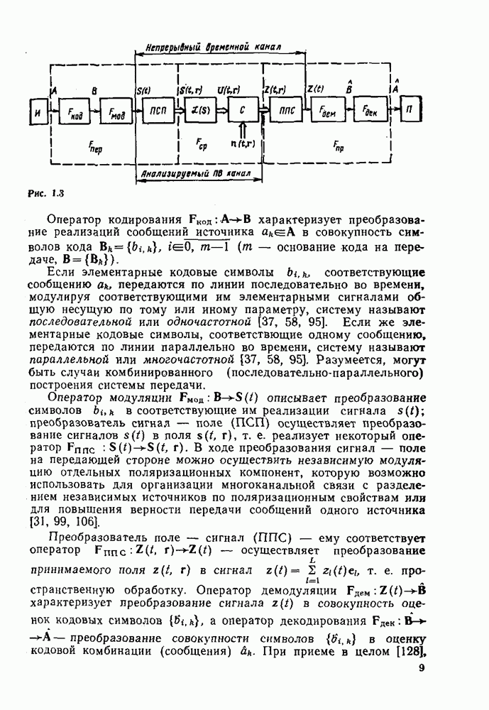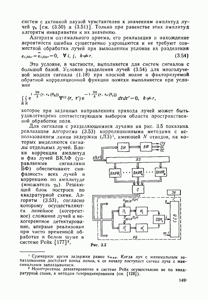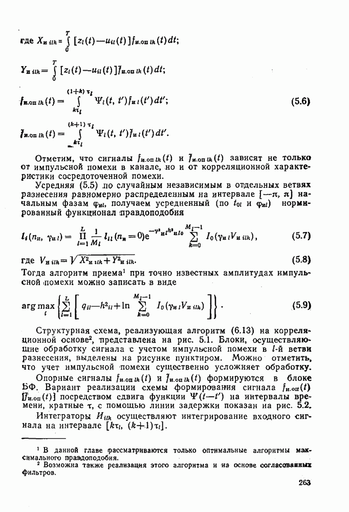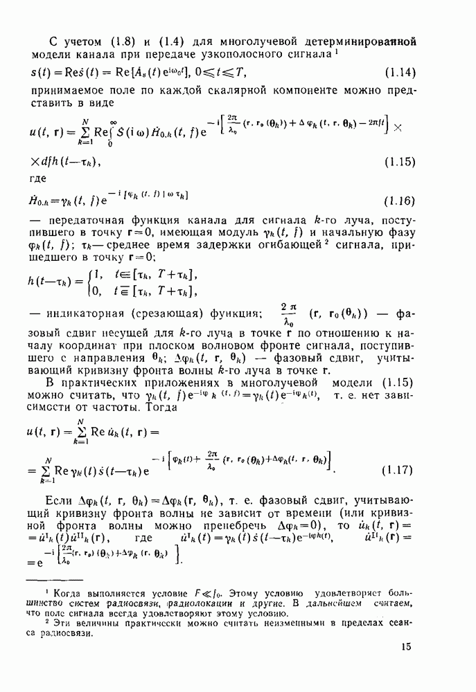 Из сравнения полученных выражений видно, что в каналах с небольшими значениями При Итак, для ортогональной в усиленном смысле системы с активной паузой прием по простому алгоритму квадратичного суммирования (2.132) дает примерно те же результаты, что и более трудная для реализации оптимальная схема. Оценим энергетический проигрыш, связанный с потерей оптимальности (условие Анализ, проведенный в работе [176] для обобщенного рэлеевского канала, показывает, что этот проигрыш монотонно растет с увеличением Таблица 2.7 (см. скан) Из таблицы видно, что если коэффициент взаимной корреляции сигналов по огибающей не превышает 0,5, то энергетический проигрыш не превышает Оценим теперь эффективность простых многопозиционных кодов и одноканальных (по частоте) систем, используемых в четырехпараметрическом канале с гладкими замираниями при независимом приеме элементов сигнала. Для прямой (без канала обратной связи [97, 128]) системы передачи информации с В односторонне-нормальном канале в области малых ошибок с учетом (2.136).