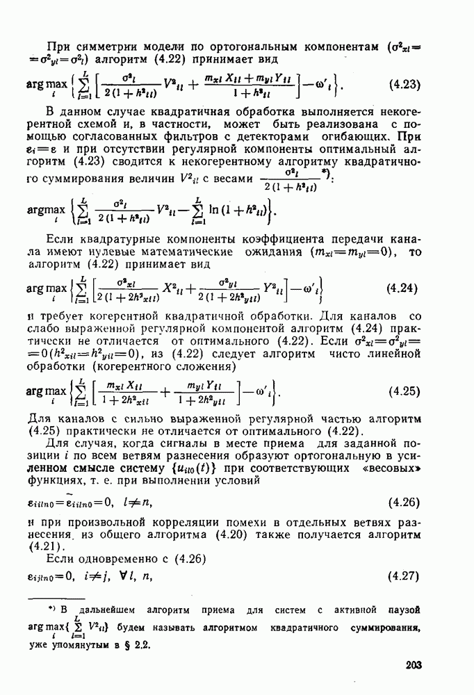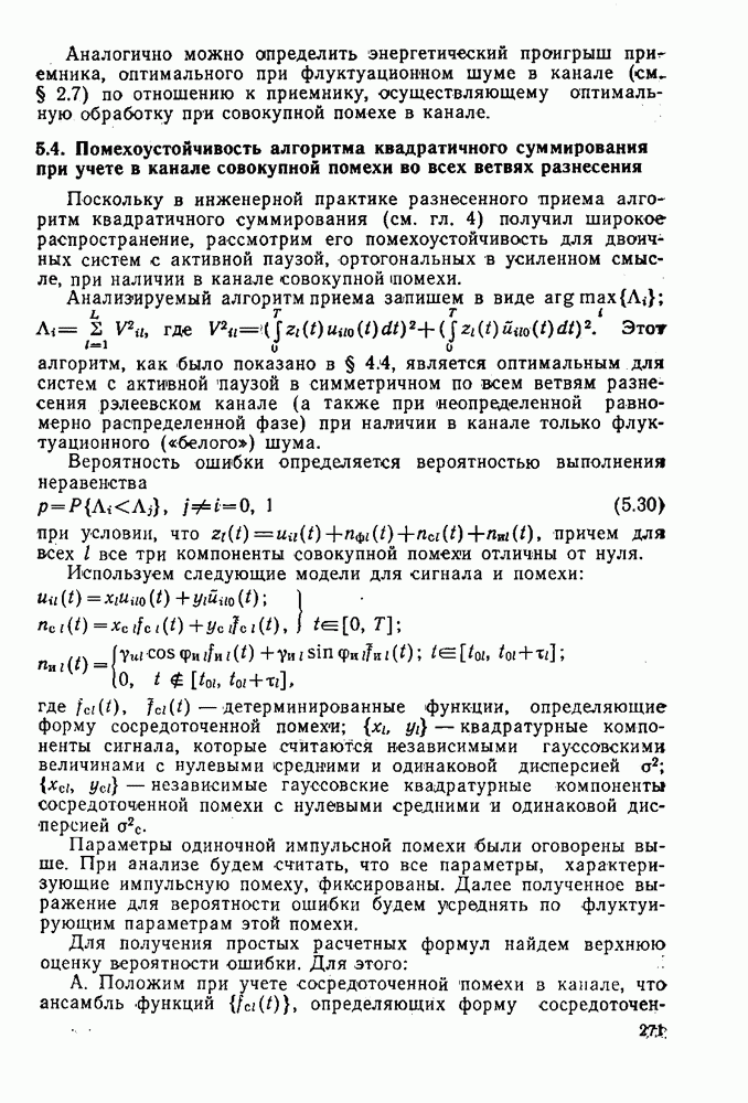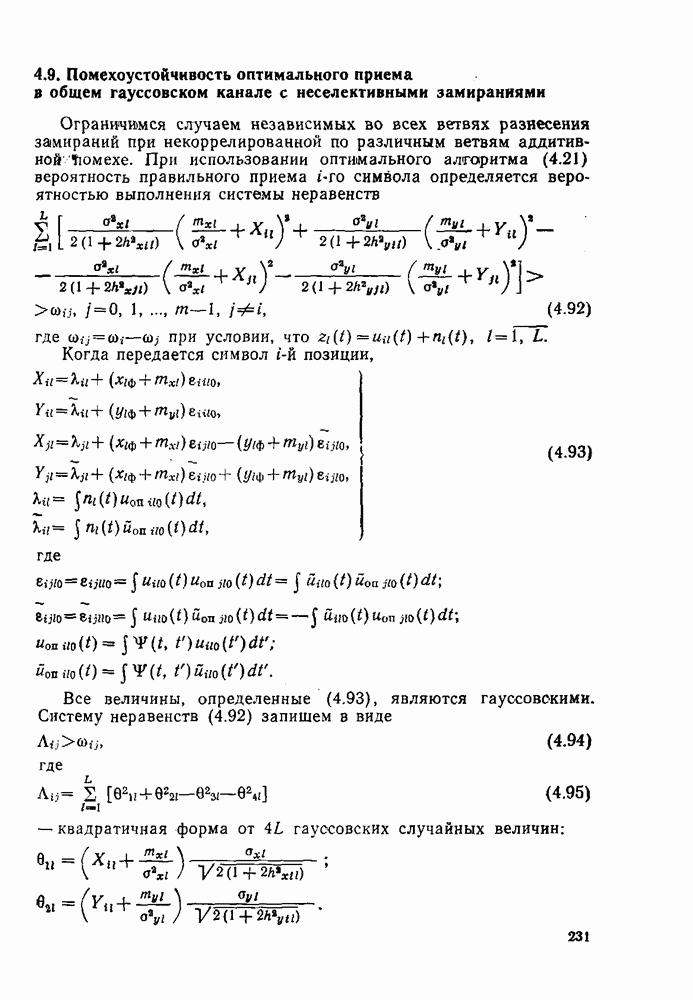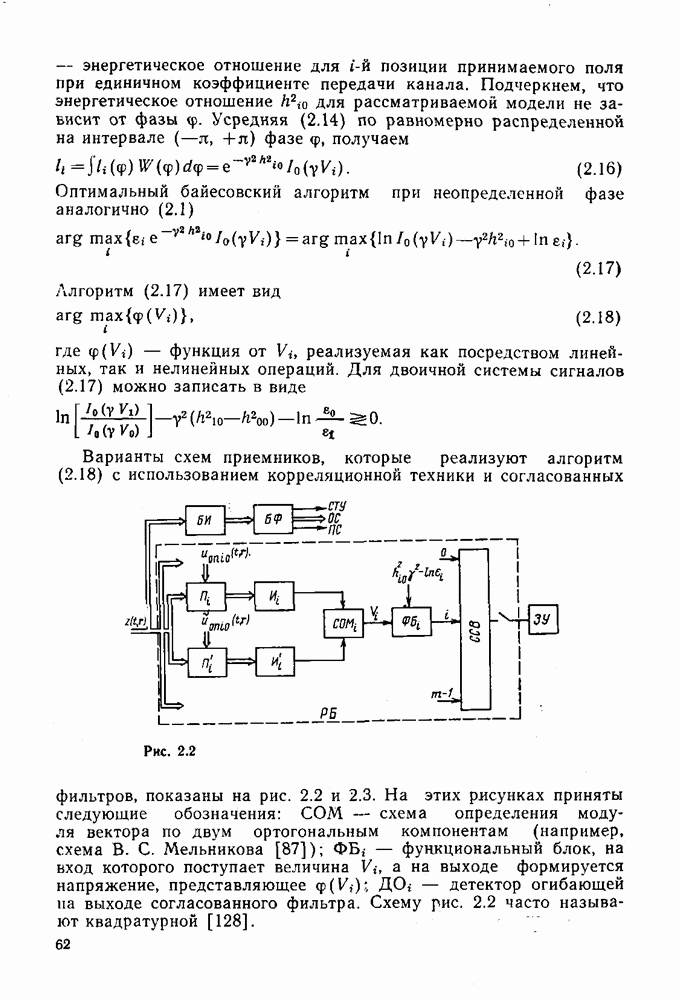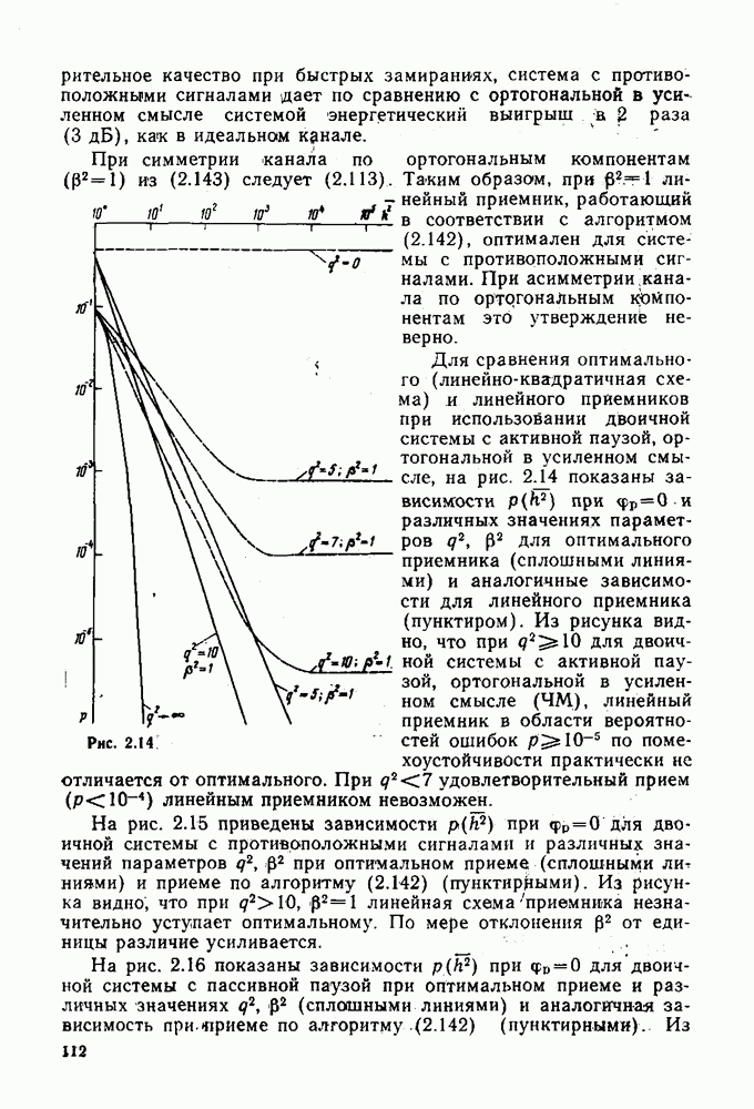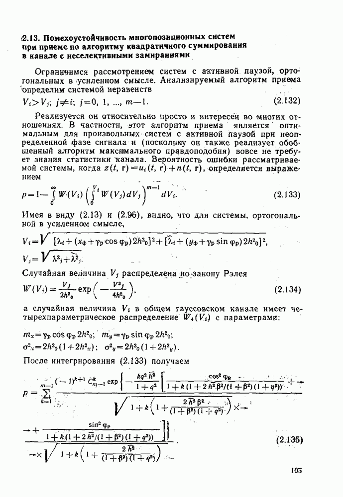 2.13. Помехоустойчивость многопозиционных систем при приеме по алгоритму квадратичного суммирования в канале с неселективными замираниямиОграничимся рассмотрением систем с активной лаузой, ортогональных в усиленном смысле. Анализируемый алгоритм приема определим системой неравенств