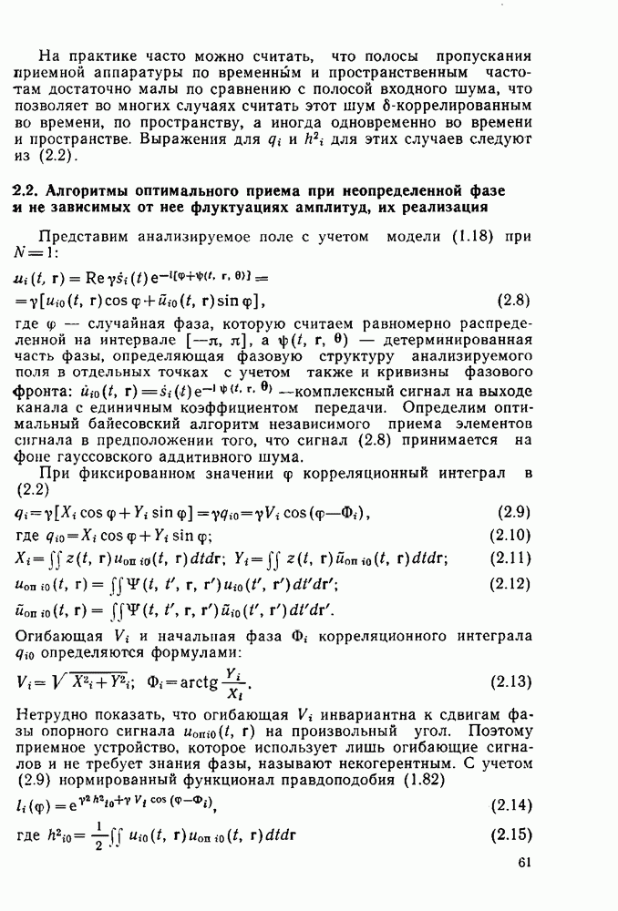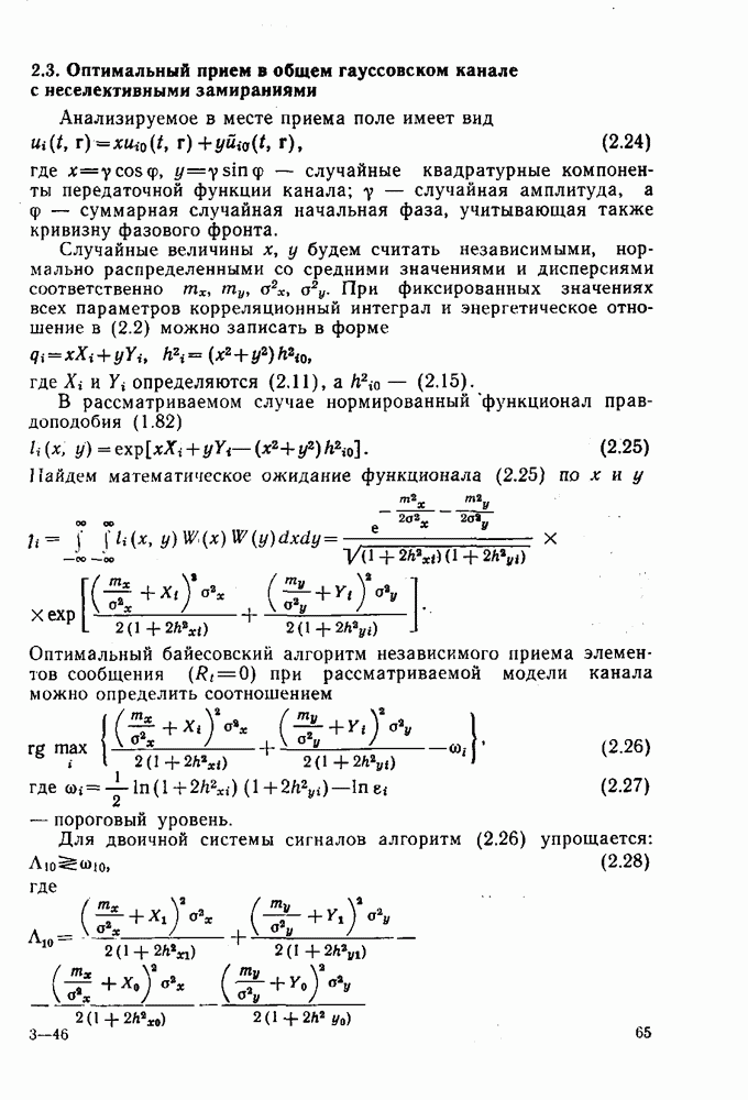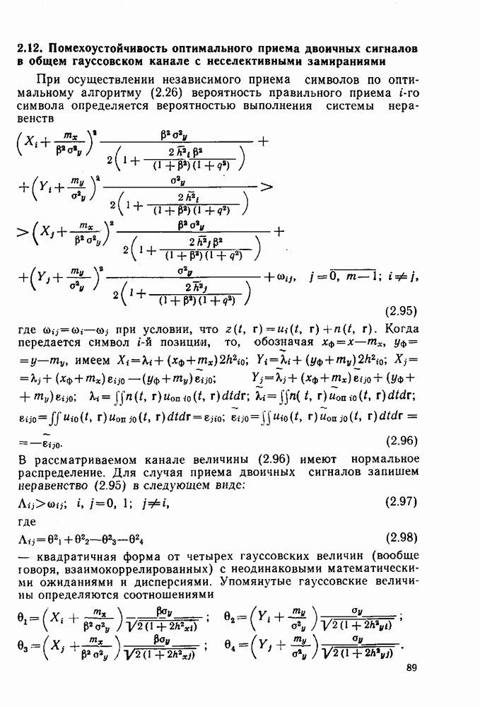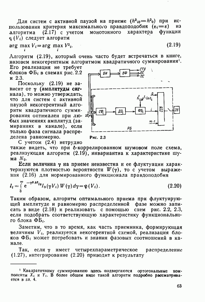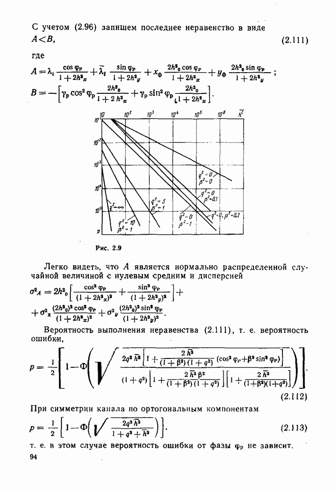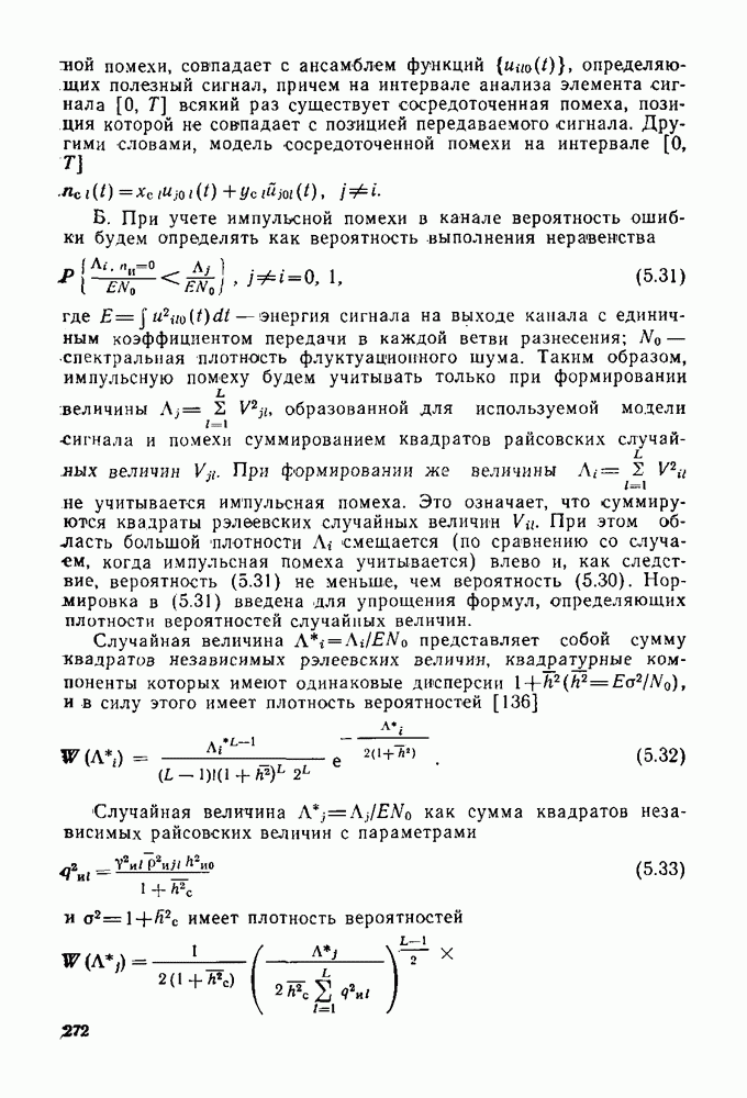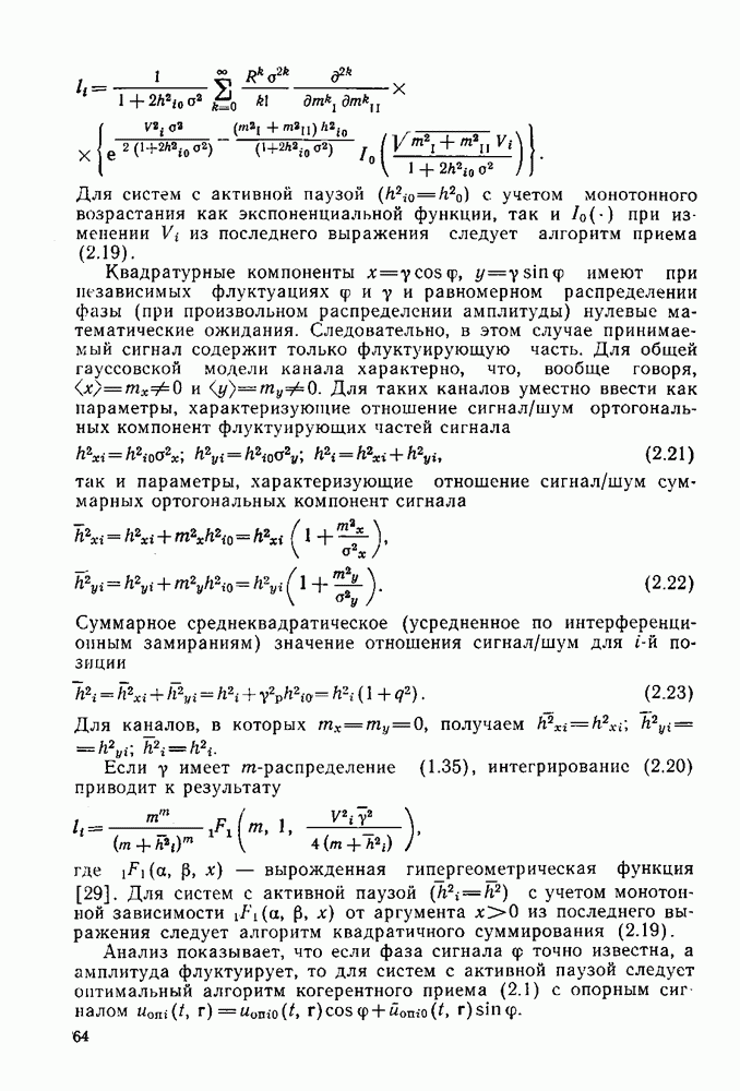 2.13. Помехоустойчивость многопозиционных систем при приеме по алгоритму квадратичного суммирования в канале с неселективными замираниямиОграничимся рассмотрением систем с активной лаузой, ортогональных в усиленном смысле. Анализируемый алгоритм приема определим системой неравенств