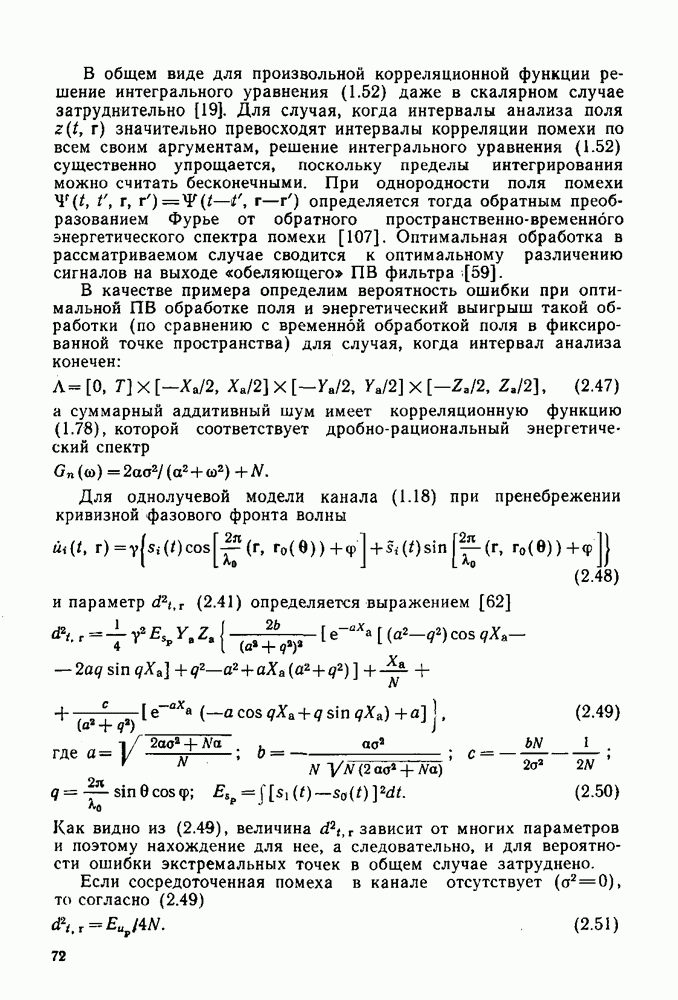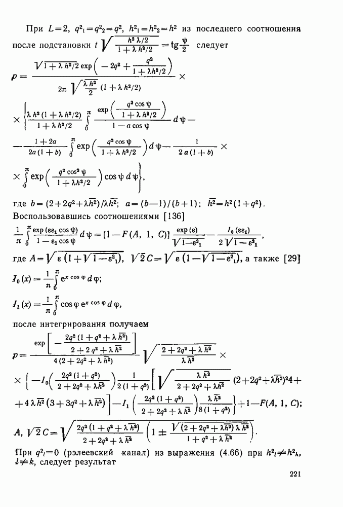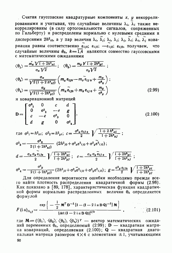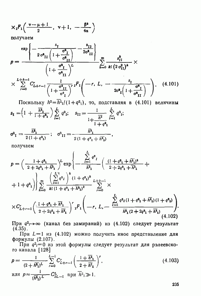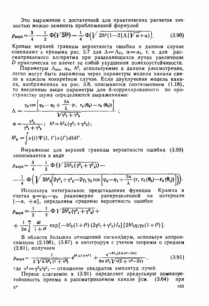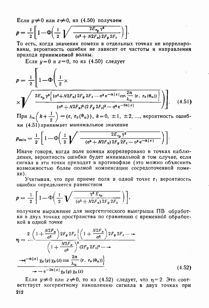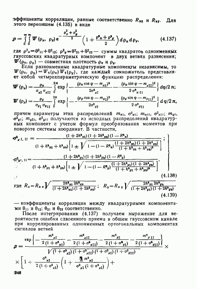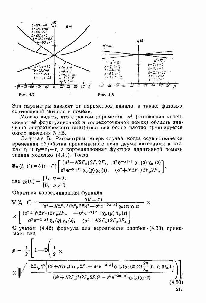 Если амплитуда сигнала не флуктуирует, то из соотношения (2.135) следует результат (2.93). Для двухпозиционной системы, ортогональной в усиленном смысле, при щриеме по алгоритму квадратичного суммирования а четырехпараметрическом канале вероятность ошибки
