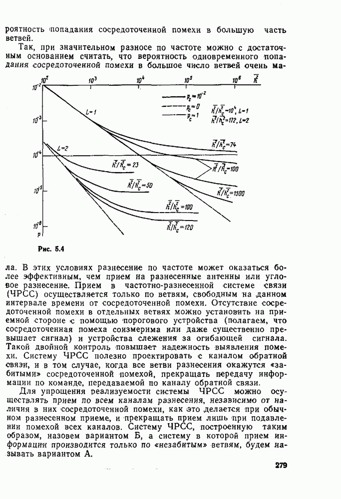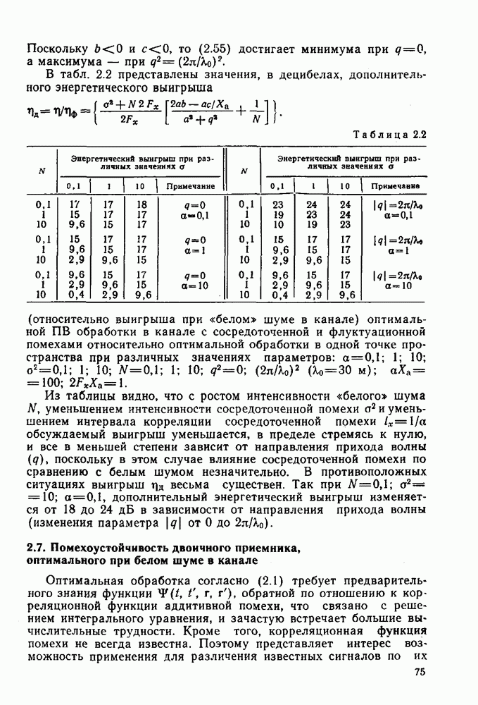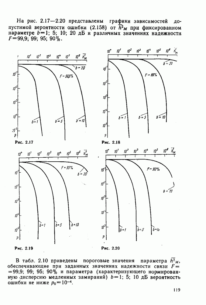 Значения Таблица 2.8 (см. скан) Из таблицы видно, что в подрэлеевском канале увеличение основания кода от двух до восьми приводит к монотонному росту энергетического выигрыша, который с увеличением асимметрии канала по ортогональным компонентам возрастает. Дальнейшее увеличение позиционности кода выгодно не при любых значениях коэффициента асимметрии Энергетический выигрыш, определенный выше, не учитывает полосы частот системы. Между тем она может иметь решающее значение при выборе той или иной системы связи. Если многопозиционное кодирование осуществляется с использованием набора частот, то полоса Определим теперь помехоустойчивость многопозиционных систем с активной паузой при использовании алгоритма квадратичного суммирования в канале с