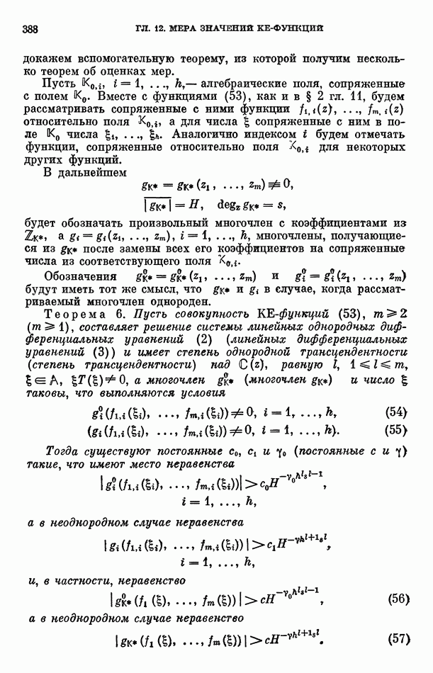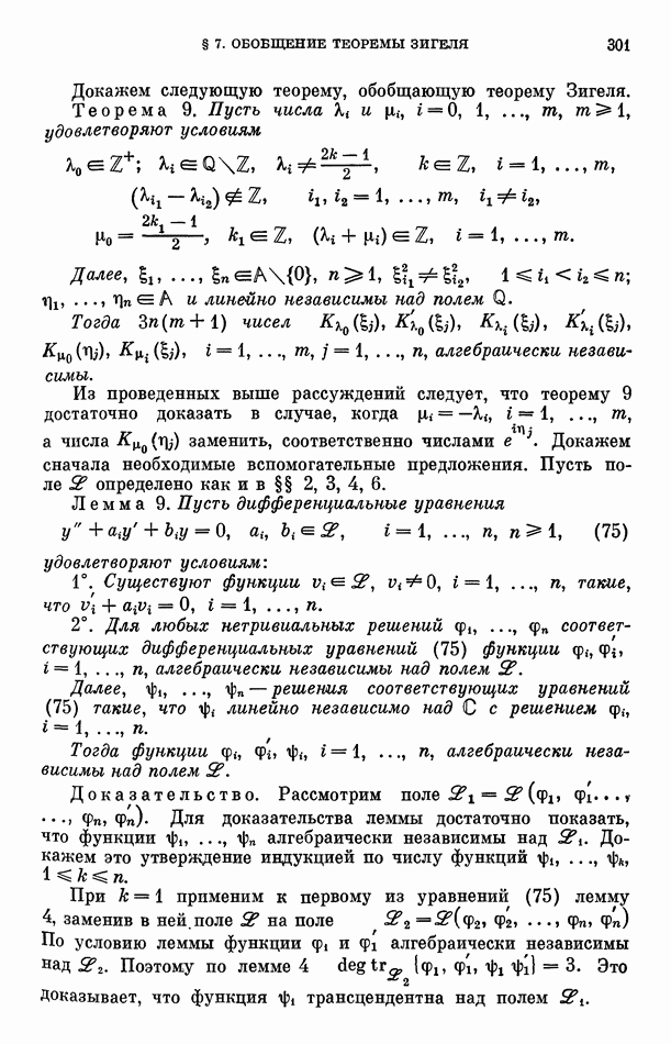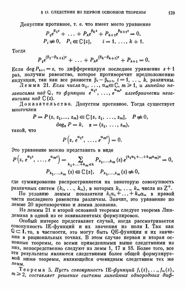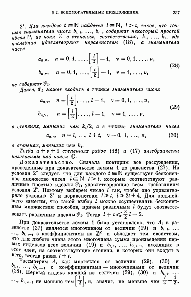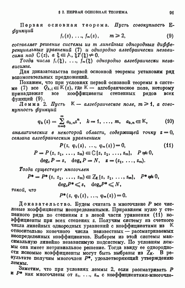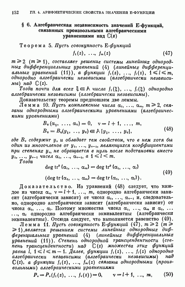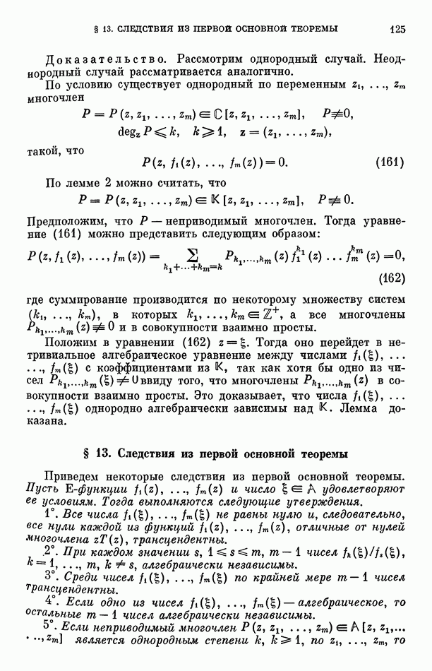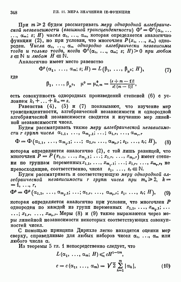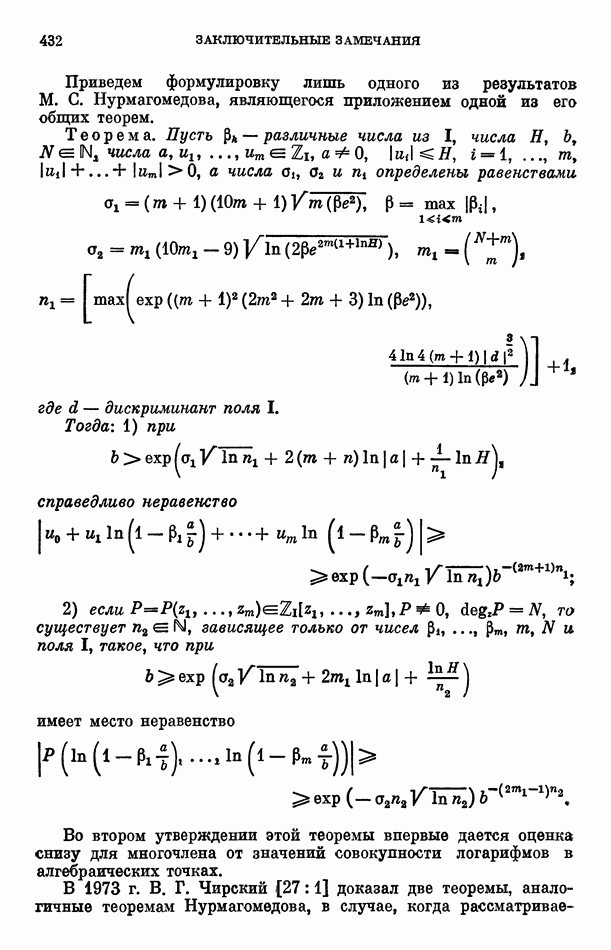 имеет бесконечное множество решений в алгебраических числах Тогда Доказательство теоремы 10 аналогично доказательству теоремы 6 с использованием теоремы 9 вместо теоремы Лиувилля. В дальнейшем потребуется теорема, обобщающая теорему 8 на случай многочлена от нескольких алгебраических чисел. Ее доказательство аналогично доказательству теоремы 8, но в нем используется утверждение о том, что существует алгебраическое поле Теорема 11. Пусть Тогда существует постоянная