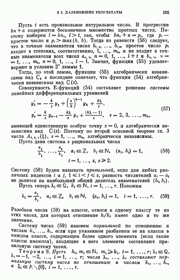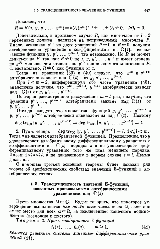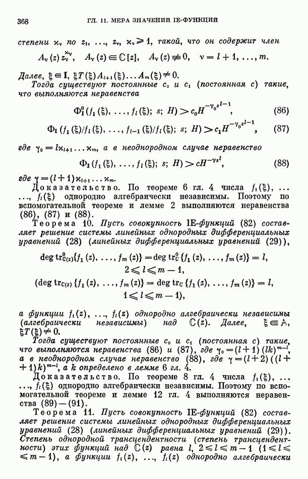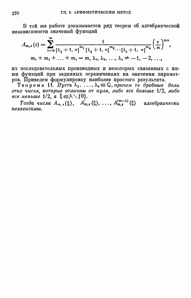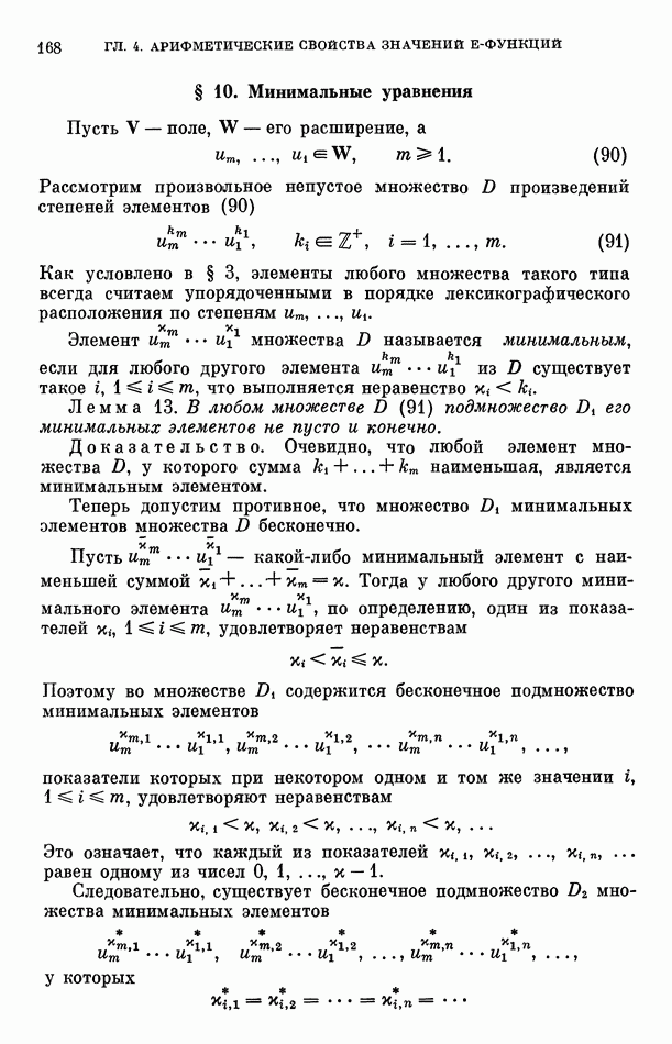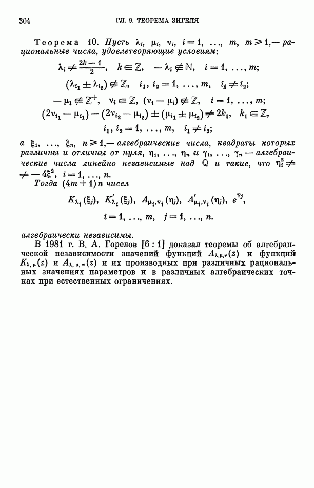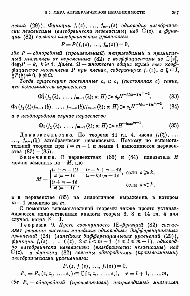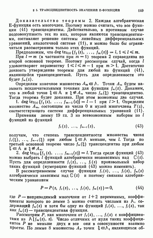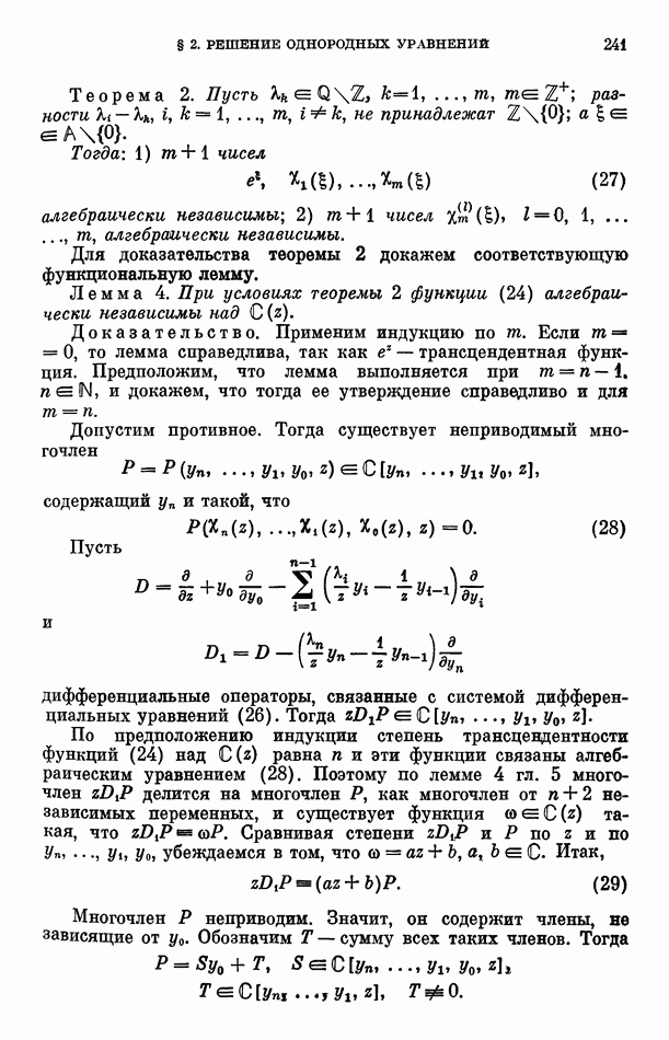 имеет бесконечное множество решений в алгебраических числах Тогда Доказательство теоремы 10 аналогично доказательству теоремы 6 с использованием теоремы 9 вместо теоремы Лиувилля. В дальнейшем потребуется теорема, обобщающая теорему 8 на случай многочлена от нескольких алгебраических чисел. Ее доказательство аналогично доказательству теоремы 8, но в нем используется утверждение о том, что существует алгебраическое поле Теорема 11. Пусть Тогда существует постоянная