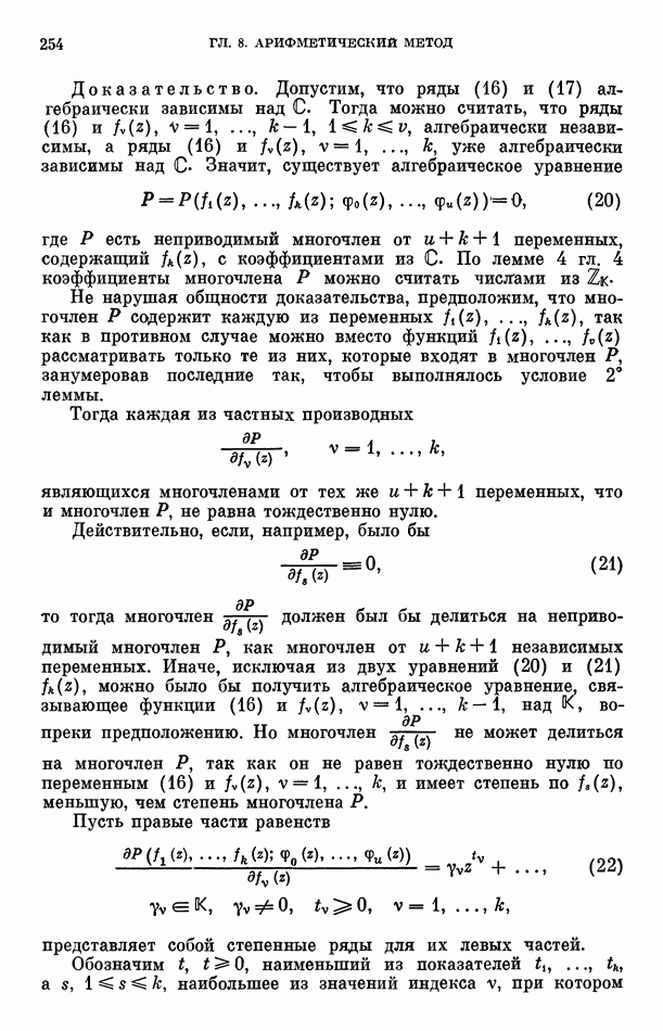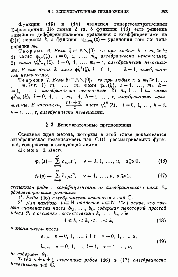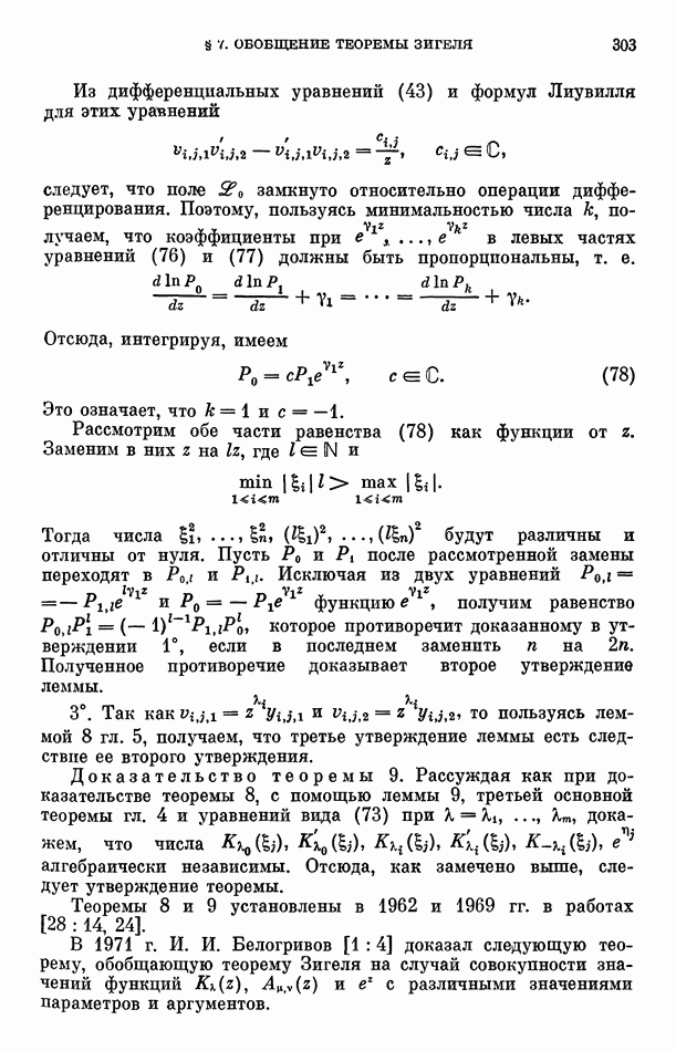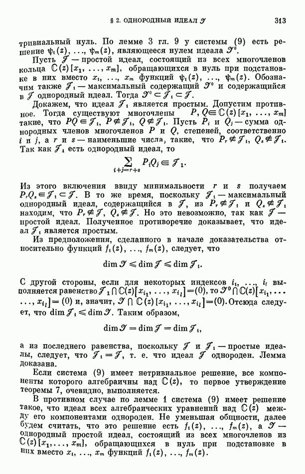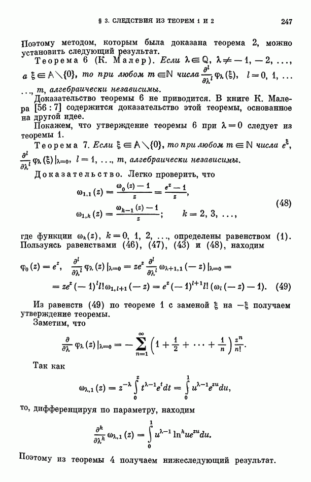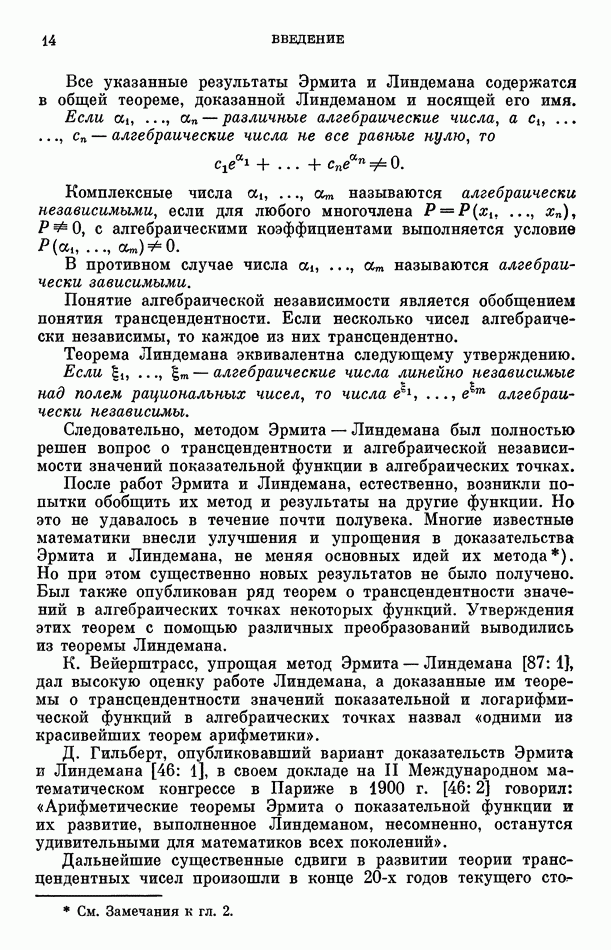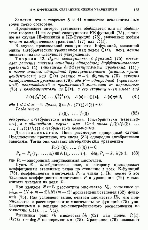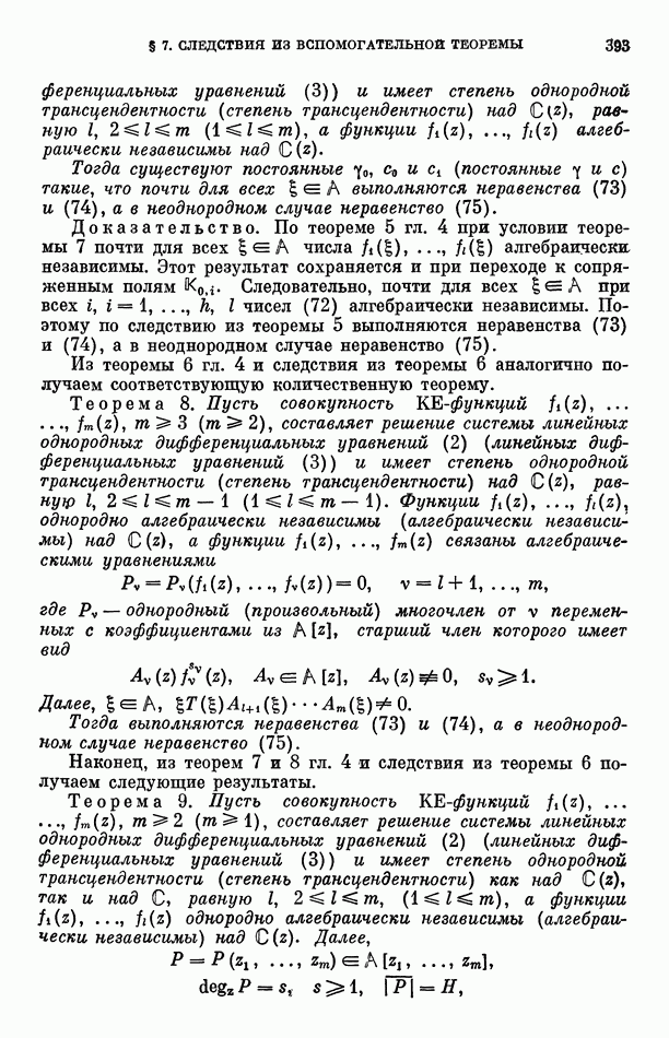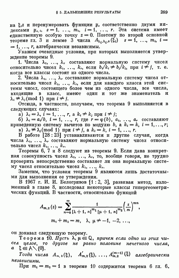 имеет бесконечное множество решений в алгебраических числах Тогда Доказательство теоремы 10 аналогично доказательству теоремы 6 с использованием теоремы 9 вместо теоремы Лиувилля. В дальнейшем потребуется теорема, обобщающая теорему 8 на случай многочлена от нескольких алгебраических чисел. Ее доказательство аналогично доказательству теоремы 8, но в нем используется утверждение о том, что существует алгебраическое поле Теорема 11. Пусть Тогда существует постоянная