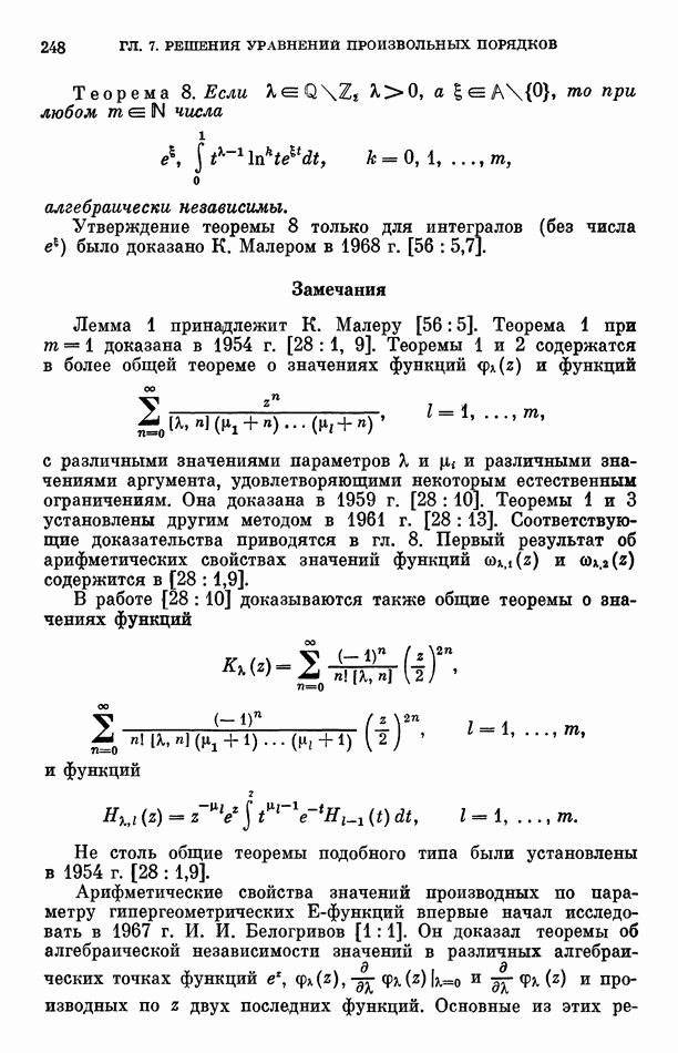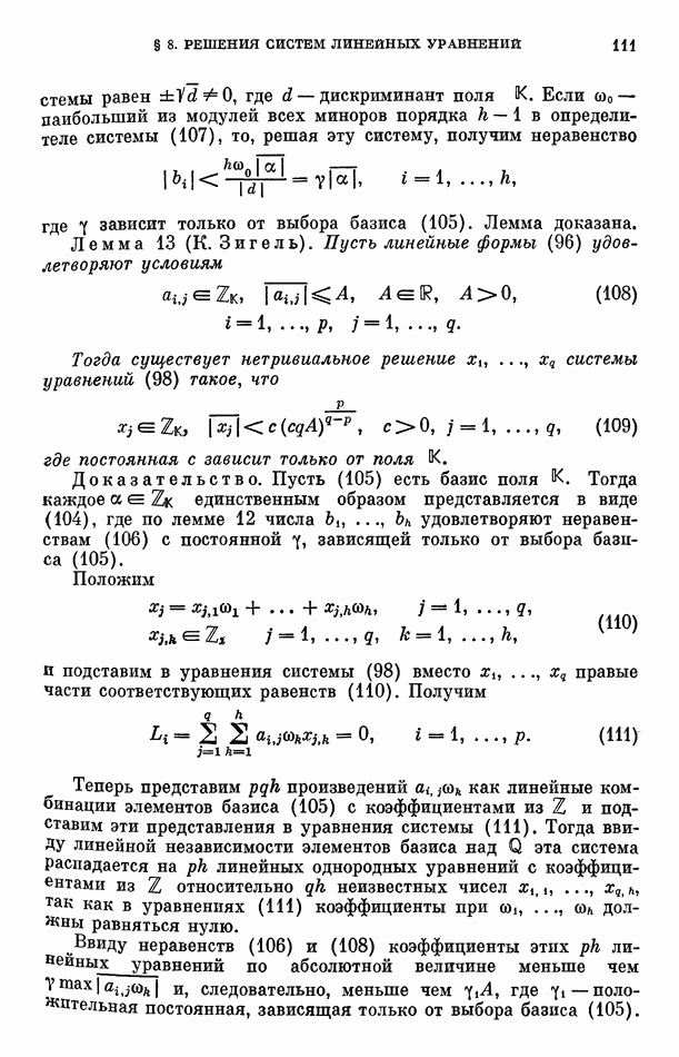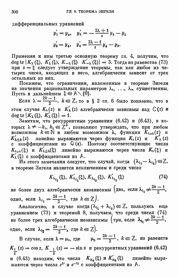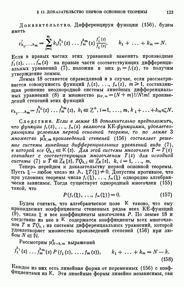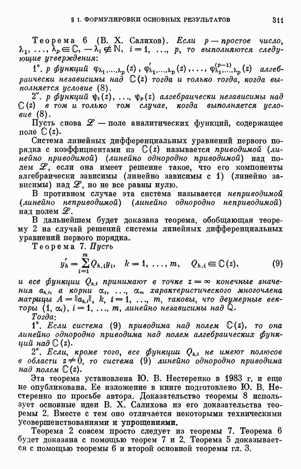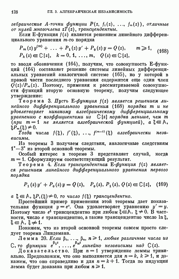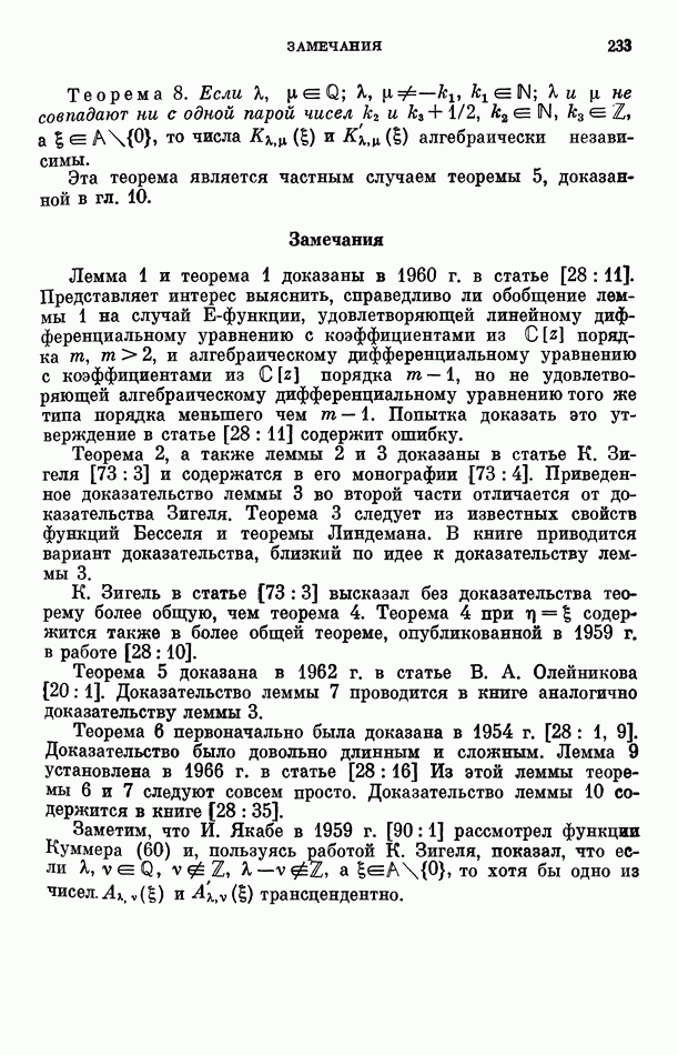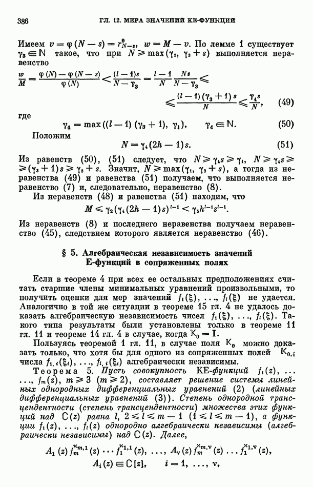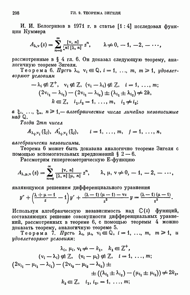 имеет бесконечное множество решений в алгебраических числах Тогда Доказательство теоремы 10 аналогично доказательству теоремы 6 с использованием теоремы 9 вместо теоремы Лиувилля. В дальнейшем потребуется теорема, обобщающая теорему 8 на случай многочлена от нескольких алгебраических чисел. Ее доказательство аналогично доказательству теоремы 8, но в нем используется утверждение о том, что существует алгебраическое поле Теорема 11. Пусть Тогда существует постоянная