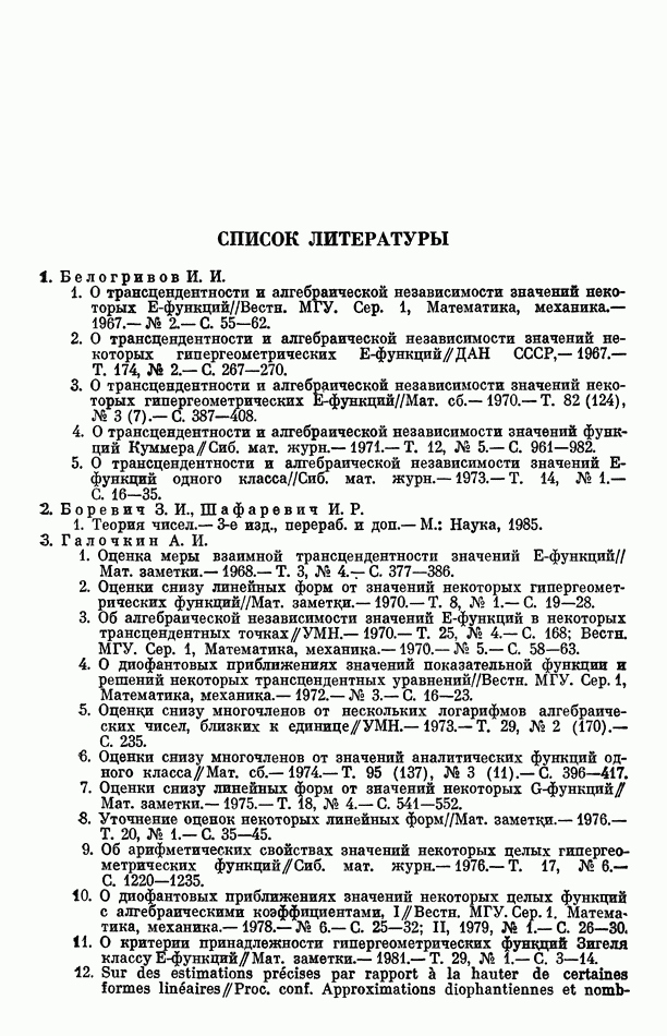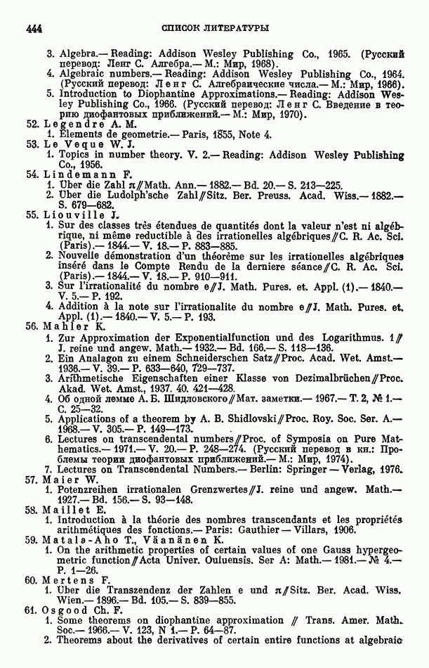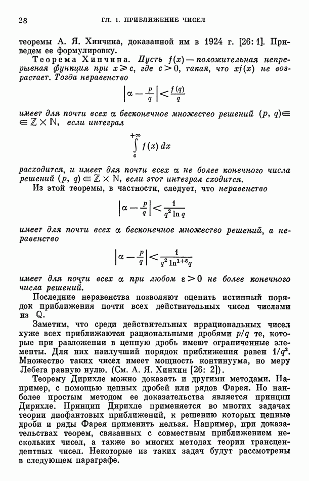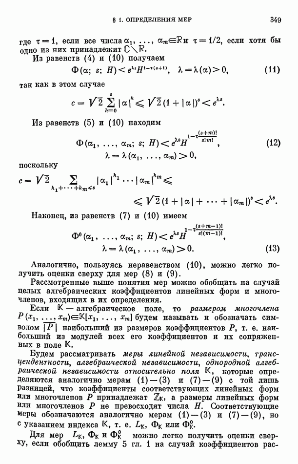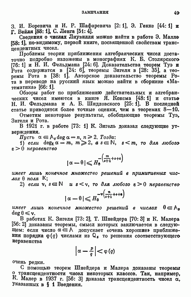 при различных В качестве чисел 0, приближающих число а, иногда рассматривают числа из некоторого алгебраического поля К, или только примитивные числа этого поля, а иногда алгебраические числа фиксированной степени. Величину (43) естественно оценивать с помощью положительных функций