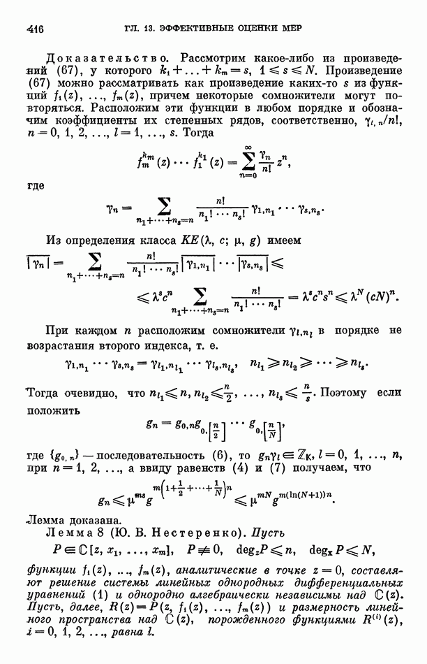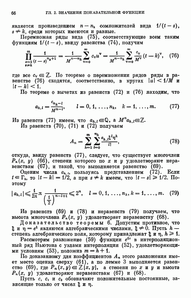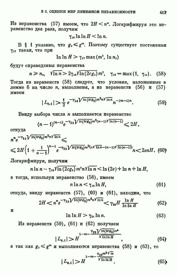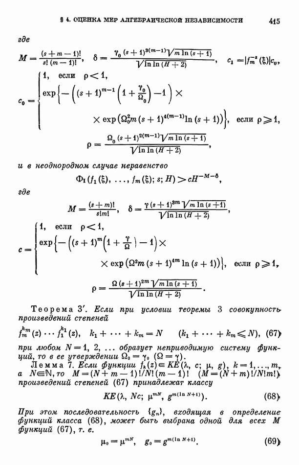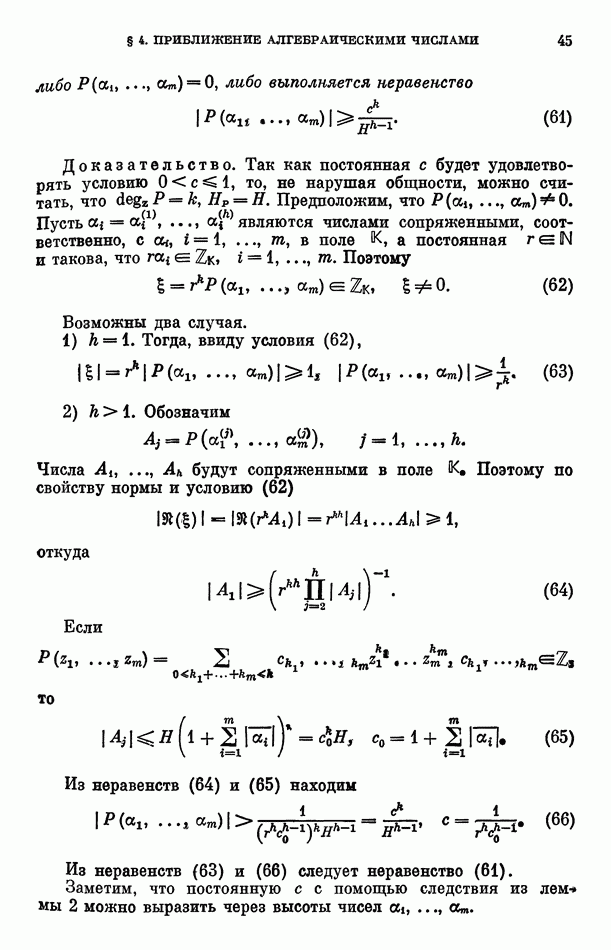 Из неравенств (63) и (66) следует неравенство (61). Заметим, что постоянную с с помощью следствия из леммы 2 можно выразить через высоты чисел