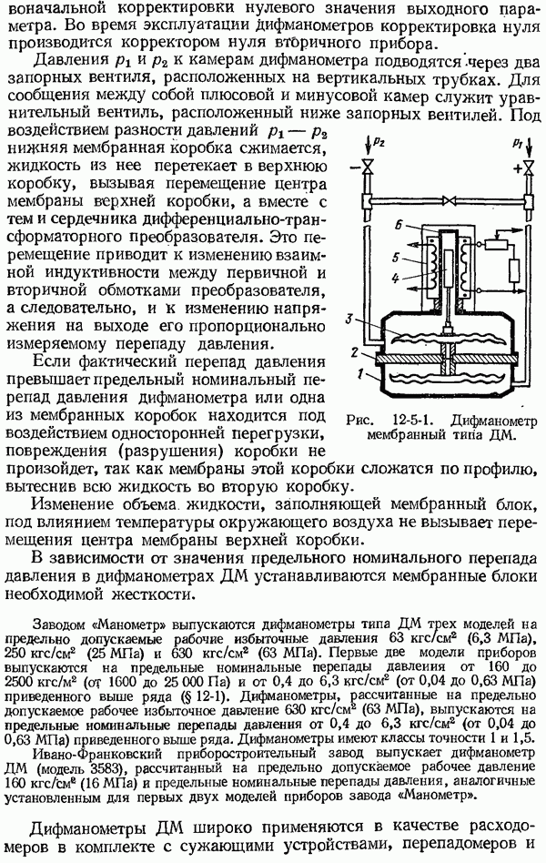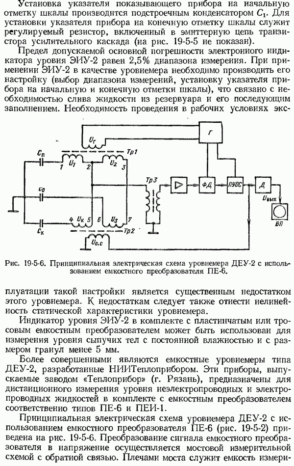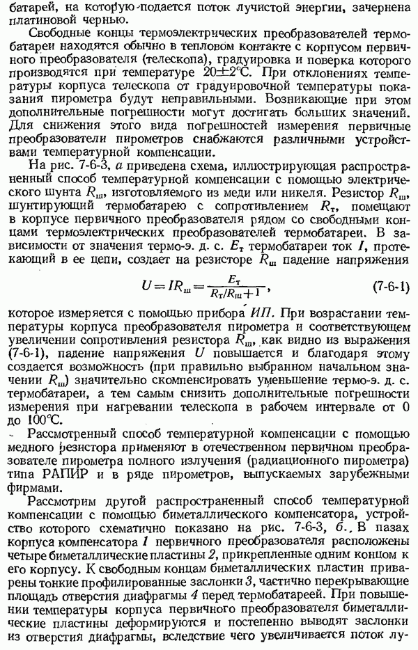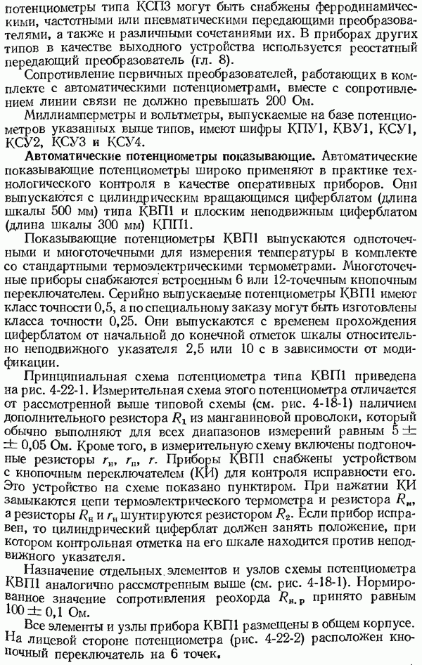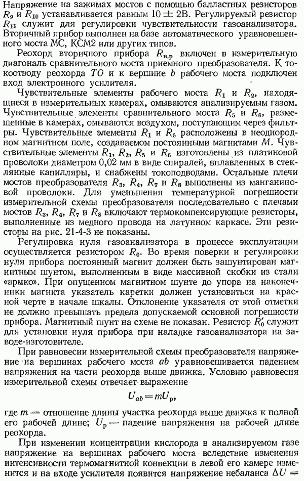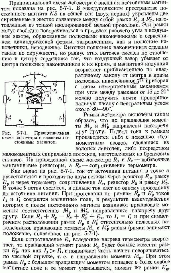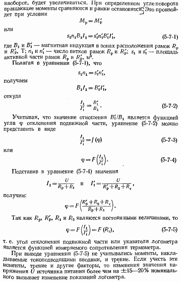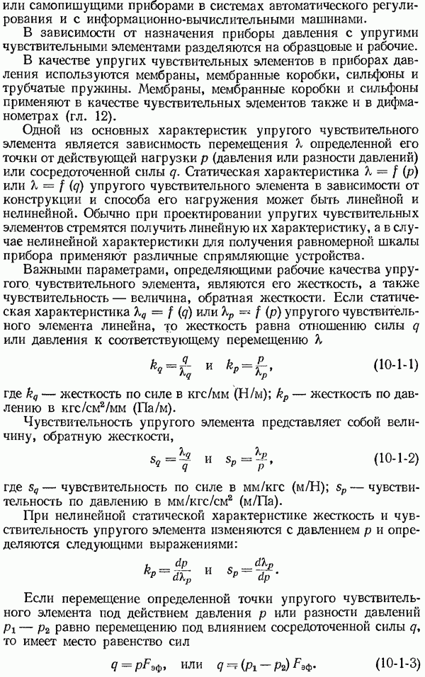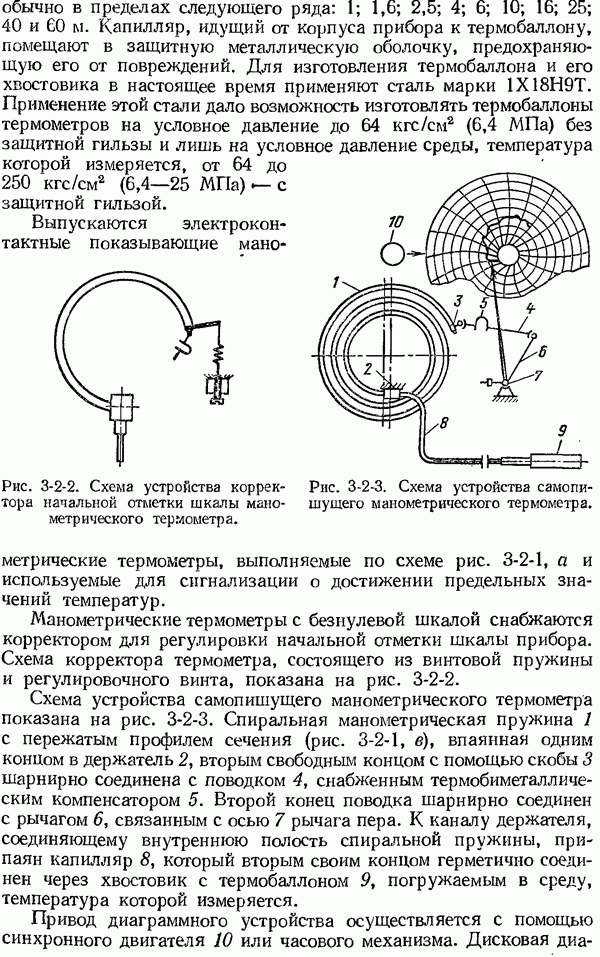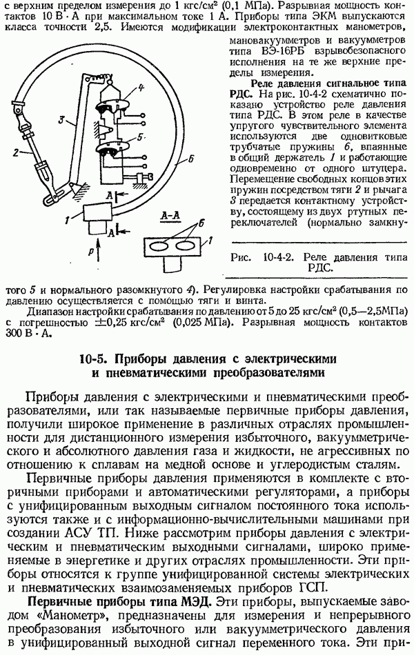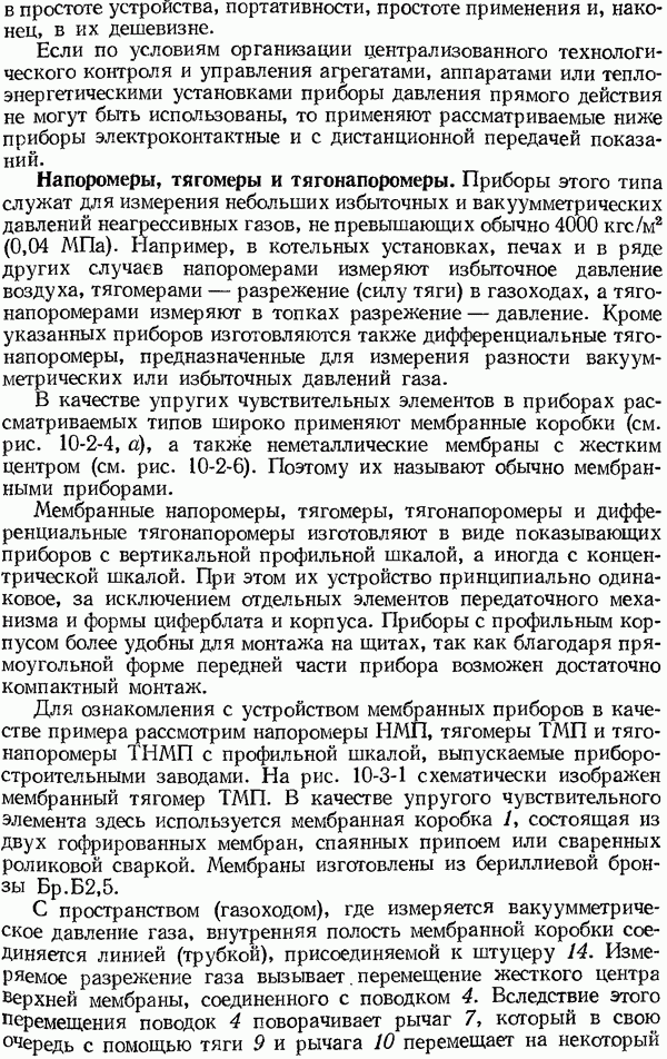Рис. 8-11-2. Схема устройства пневматического передающего преобразователя. Пневматический передающий преобразователь со схемой, показанной на рис. 8-11-2, устанавливается в качестве дополнительного устройства в манометрических термометрах, выпускаемых казанским заводом «Теплоконт-роль». В основу построения этого пневматического передающего преобразователя положен принцип силовой компенсации. Угол поворота выходной оси 1 прибора посредством тяги 2, поводков 3 и 4, рычага 5 и цилиндрической пружины 7 передается на свободный конец манометрической пружины 6 устройства обратной связи. При повороте оси 1 свободный конец манометрической пружины, перемещаясь под действием усилия дистанционнои передачи и одновременно в манометрическую пружину устройства обратной связи, где преобразуется в пропорциональное усилие обратной связи Мерой усилия Заслонка индикатора рассогласования имеет максимальный рабочий ход примерно Пневматический преобразователь снабжен корректором нуля, с помощью которого устанавливается начальное значение выходного сигнала Пределы допускаемых основной и дополнительных погрешностей пневматических передающих преобразователей нормируются в зависимости от типа и класса точности манометрического термометра. В основу построения пневматических передающих преобразователей для преобразования угла поворота оси манометров, дифманометров типа