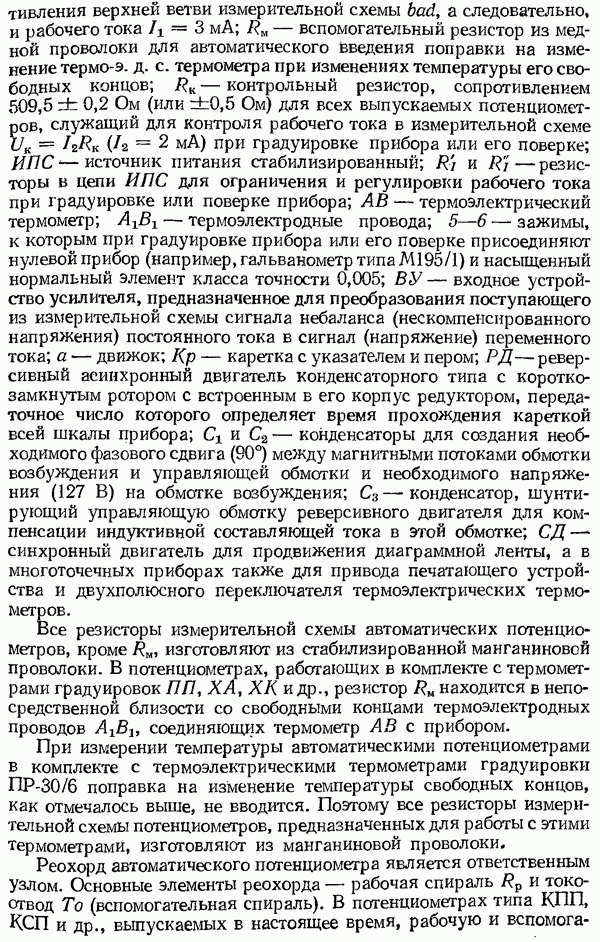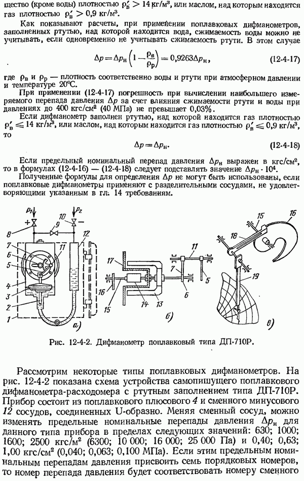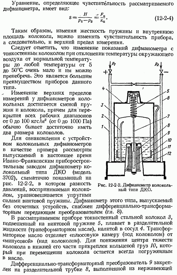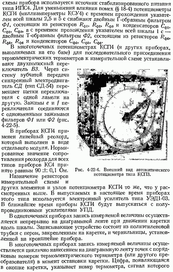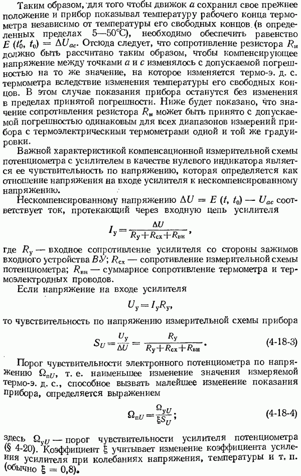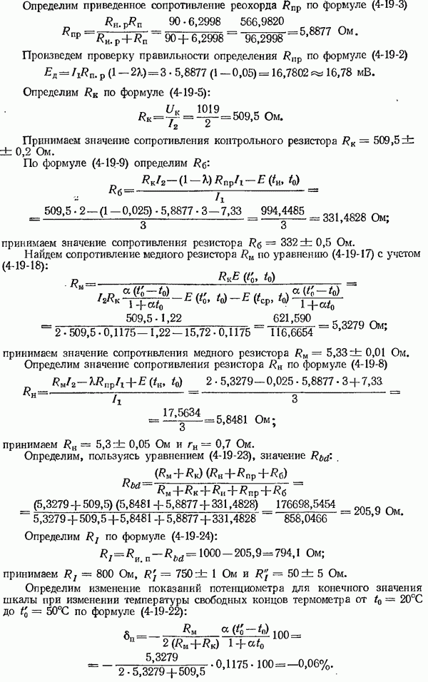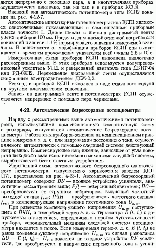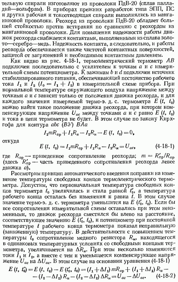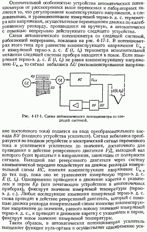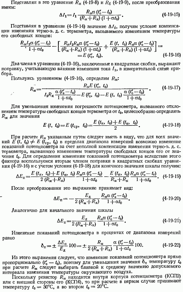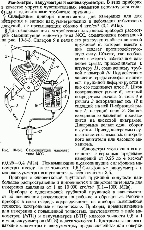 Рис. 8-11-2. Схема устройства пневматического передающего преобразователя. Пневматический передающий преобразователь со схемой, показанной на рис. 8-11-2, устанавливается в качестве дополнительного устройства в манометрических термометрах, выпускаемых казанским заводом «Теплоконт-роль». В основу построения этого пневматического передающего преобразователя положен принцип силовой компенсации. Угол поворота выходной оси 1 прибора посредством тяги 2, поводков 3 и 4, рычага 5 и цилиндрической пружины 7 передается на свободный конец манометрической пружины 6 устройства обратной связи. При повороте оси 1 свободный конец манометрической пружины, перемещаясь под действием усилия дистанционнои передачи и одновременно в манометрическую пружину устройства обратной связи, где преобразуется в пропорциональное усилие обратной связи Мерой усилия Заслонка индикатора рассогласования имеет максимальный рабочий ход примерно Пневматический преобразователь снабжен корректором нуля, с помощью которого устанавливается начальное значение выходного сигнала Пределы допускаемых основной и дополнительных погрешностей пневматических передающих преобразователей нормируются в зависимости от типа и класса точности манометрического термометра. В основу построения пневматических передающих преобразователей для преобразования угла поворота оси манометров, дифманометров типа