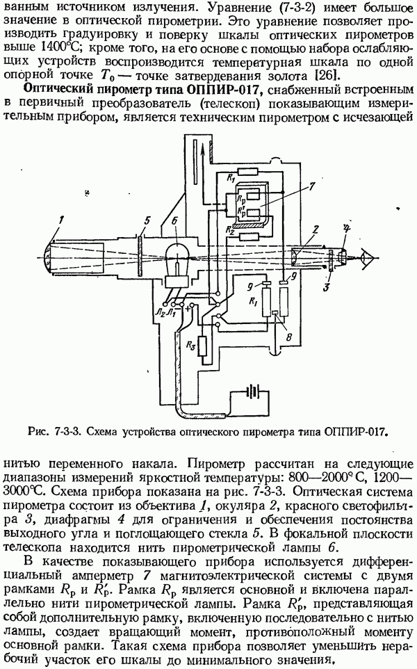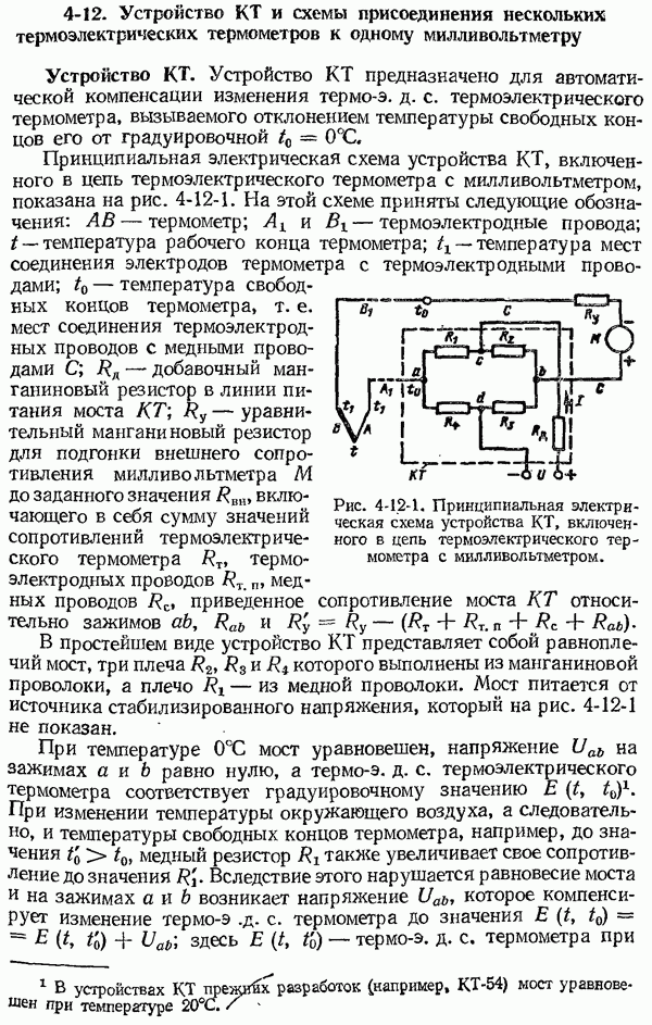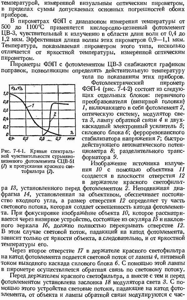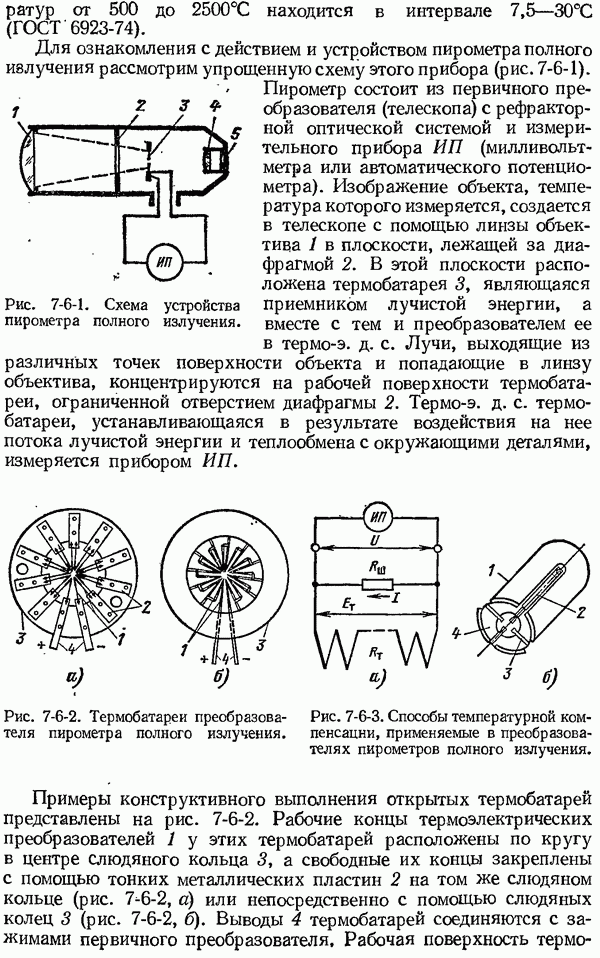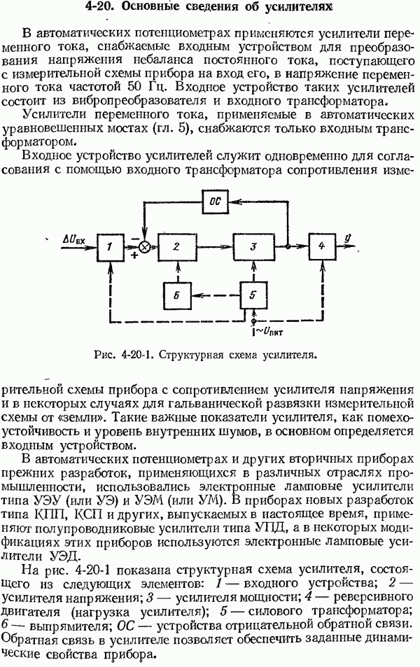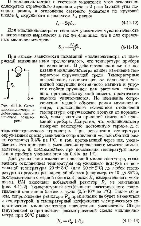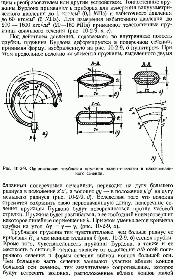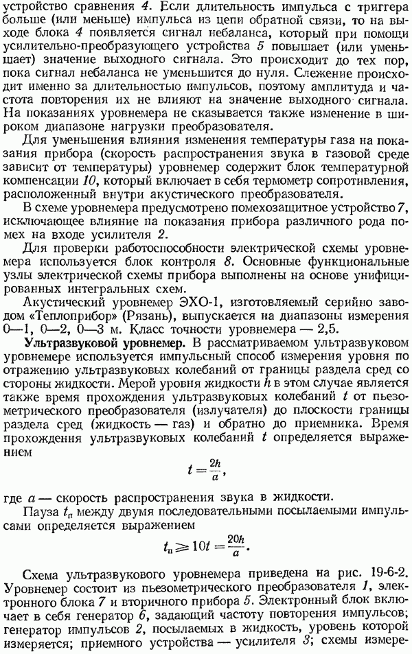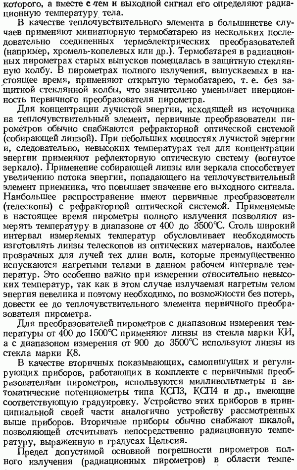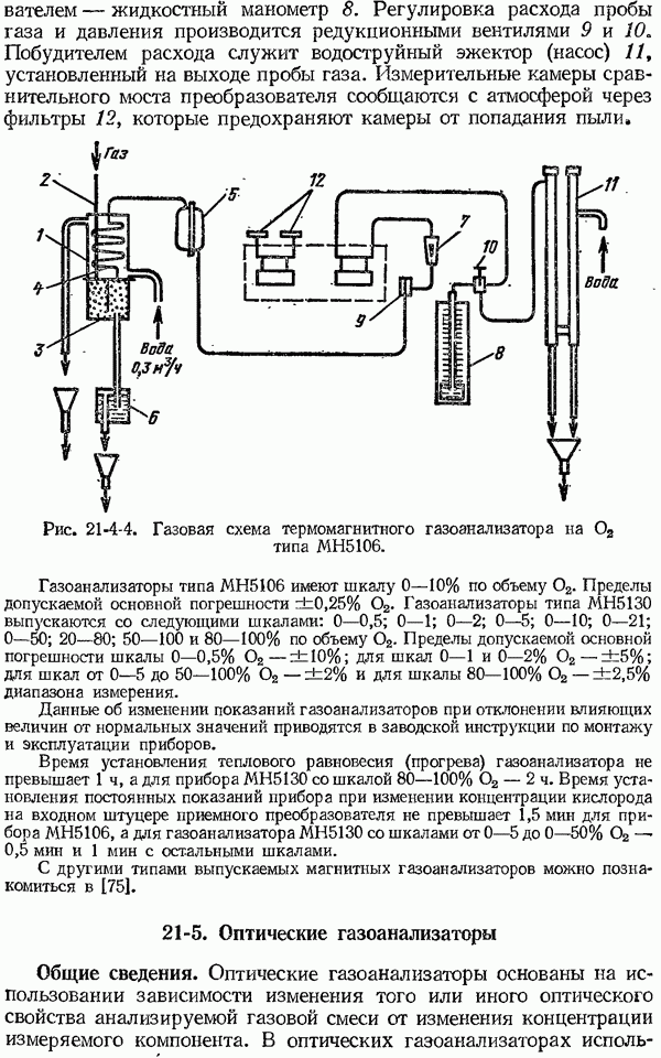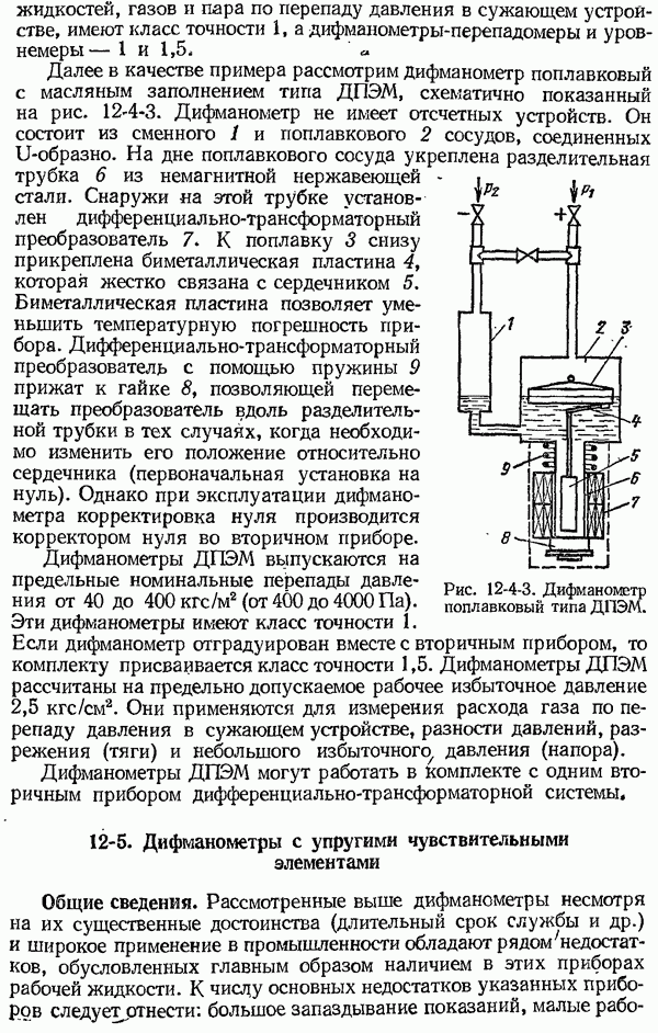 Рис. 8-11-2. Схема устройства пневматического передающего преобразователя. Пневматический передающий преобразователь со схемой, показанной на рис. 8-11-2, устанавливается в качестве дополнительного устройства в манометрических термометрах, выпускаемых казанским заводом «Теплоконт-роль». В основу построения этого пневматического передающего преобразователя положен принцип силовой компенсации. Угол поворота выходной оси 1 прибора посредством тяги 2, поводков 3 и 4, рычага 5 и цилиндрической пружины 7 передается на свободный конец манометрической пружины 6 устройства обратной связи. При повороте оси 1 свободный конец манометрической пружины, перемещаясь под действием усилия дистанционнои передачи и одновременно в манометрическую пружину устройства обратной связи, где преобразуется в пропорциональное усилие обратной связи Мерой усилия Заслонка индикатора рассогласования имеет максимальный рабочий ход примерно Пневматический преобразователь снабжен корректором нуля, с помощью которого устанавливается начальное значение выходного сигнала Пределы допускаемых основной и дополнительных погрешностей пневматических передающих преобразователей нормируются в зависимости от типа и класса точности манометрического термометра. В основу построения пневматических передающих преобразователей для преобразования угла поворота оси манометров, дифманометров типа