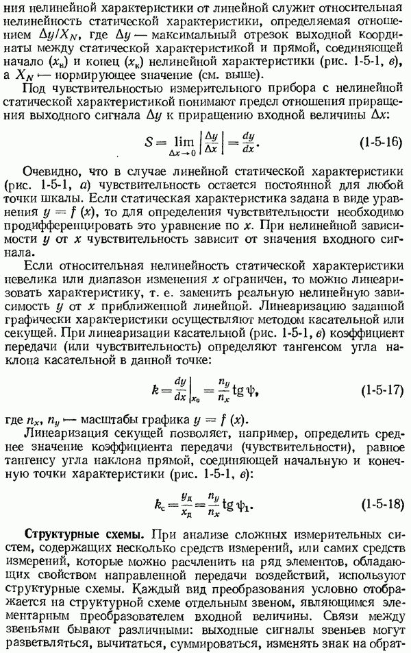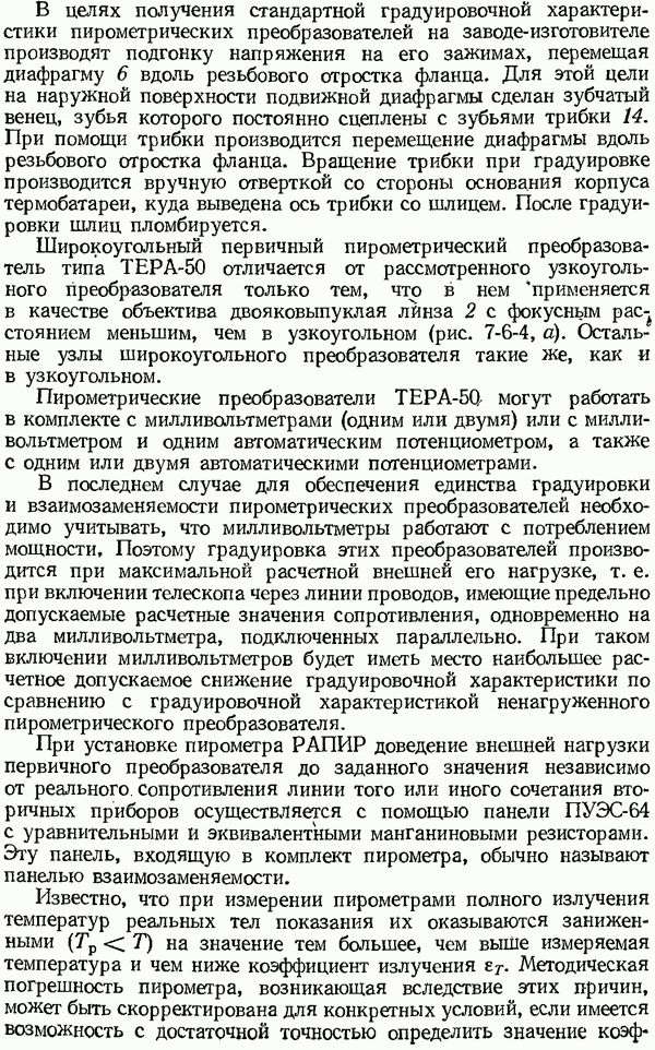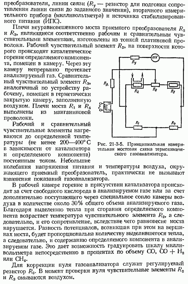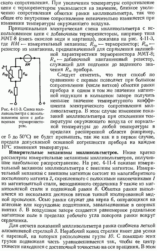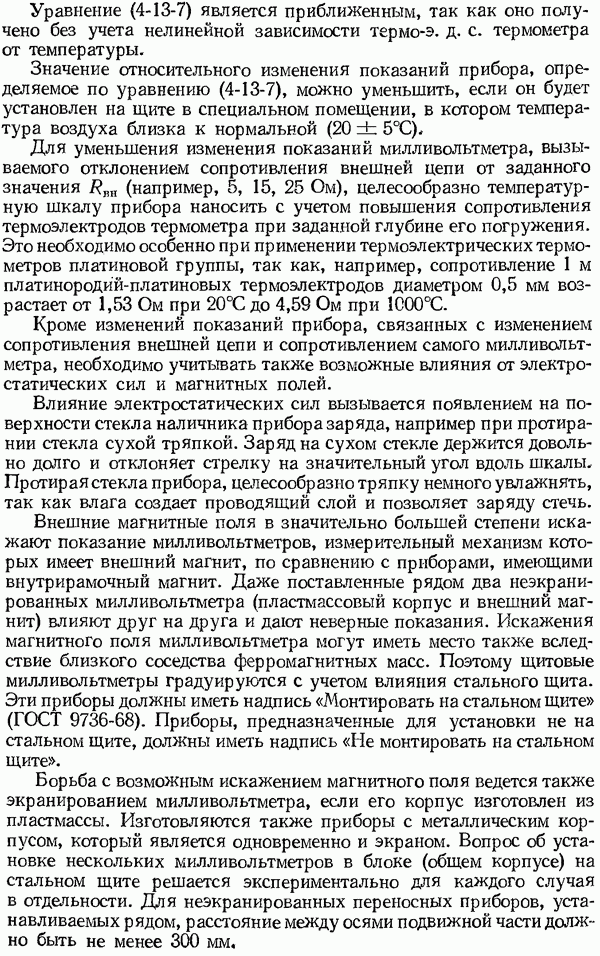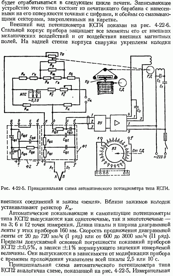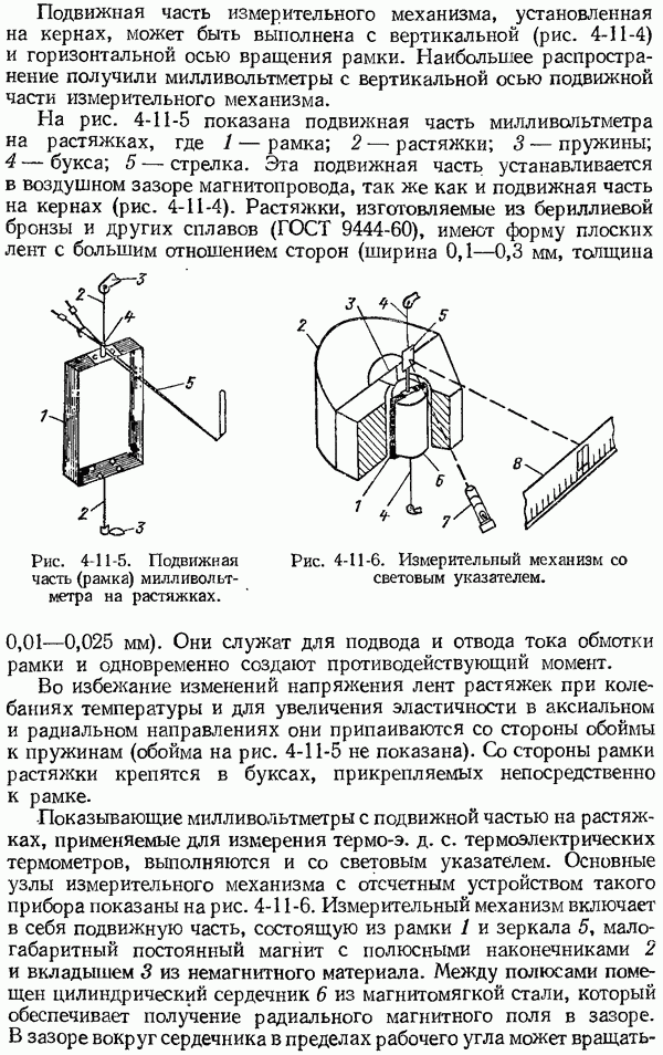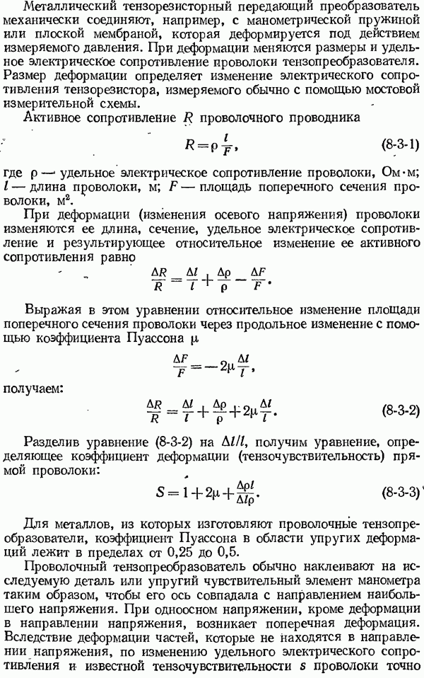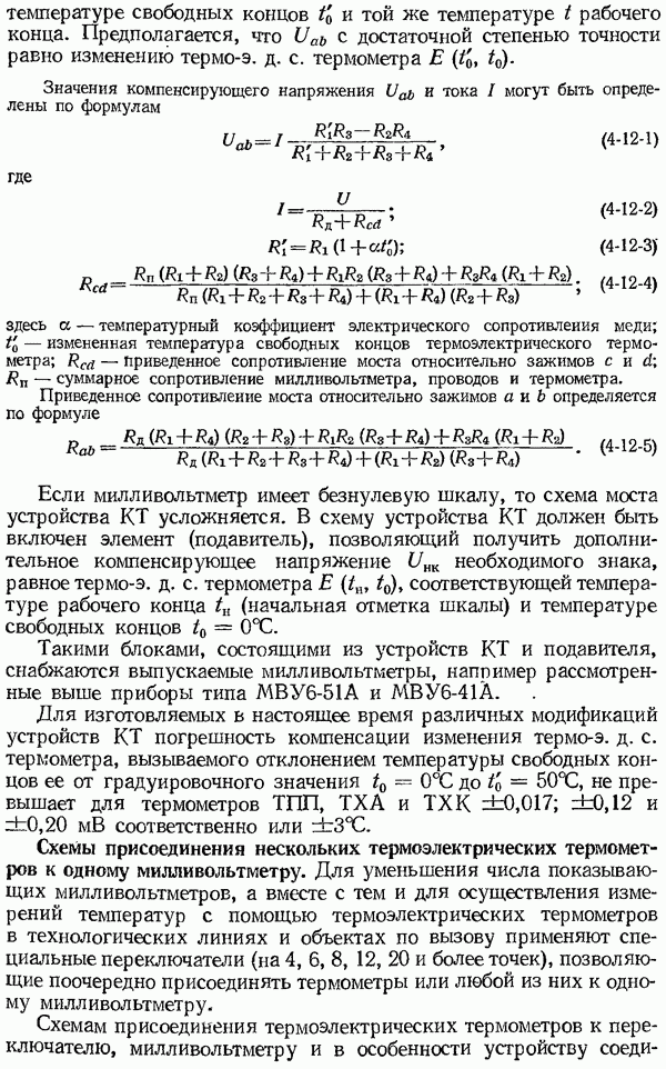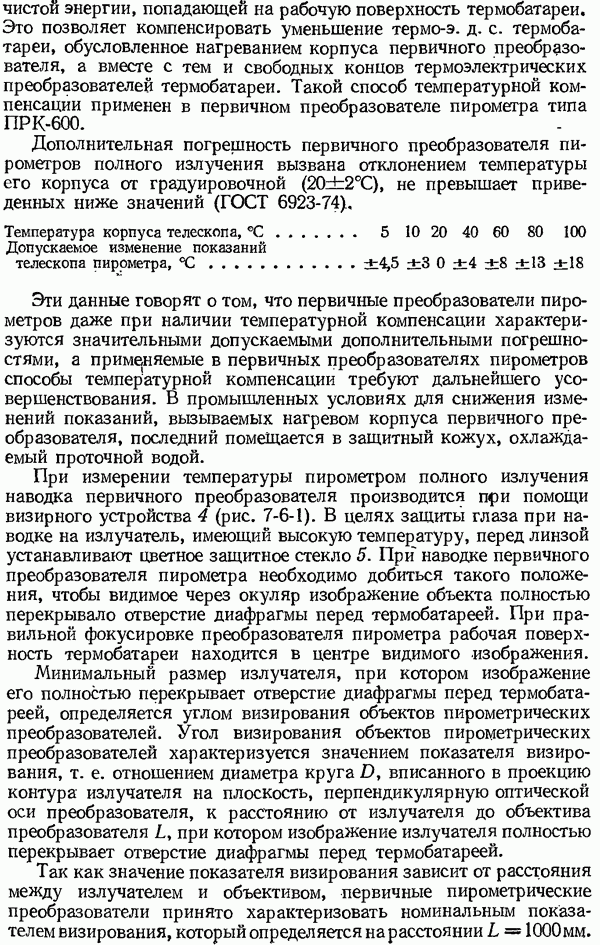 Рис. 8-11-2. Схема устройства пневматического передающего преобразователя. Пневматический передающий преобразователь со схемой, показанной на рис. 8-11-2, устанавливается в качестве дополнительного устройства в манометрических термометрах, выпускаемых казанским заводом «Теплоконт-роль». В основу построения этого пневматического передающего преобразователя положен принцип силовой компенсации. Угол поворота выходной оси 1 прибора посредством тяги 2, поводков 3 и 4, рычага 5 и цилиндрической пружины 7 передается на свободный конец манометрической пружины 6 устройства обратной связи. При повороте оси 1 свободный конец манометрической пружины, перемещаясь под действием усилия дистанционнои передачи и одновременно в манометрическую пружину устройства обратной связи, где преобразуется в пропорциональное усилие обратной связи Мерой усилия Заслонка индикатора рассогласования имеет максимальный рабочий ход примерно Пневматический преобразователь снабжен корректором нуля, с помощью которого устанавливается начальное значение выходного сигнала Пределы допускаемых основной и дополнительных погрешностей пневматических передающих преобразователей нормируются в зависимости от типа и класса точности манометрического термометра. В основу построения пневматических передающих преобразователей для преобразования угла поворота оси манометров, дифманометров типа