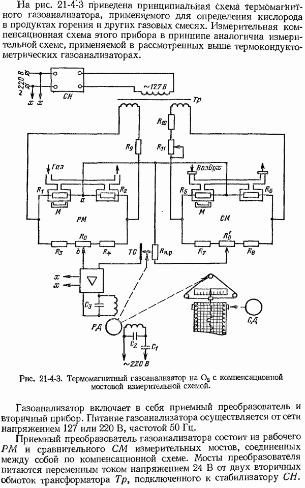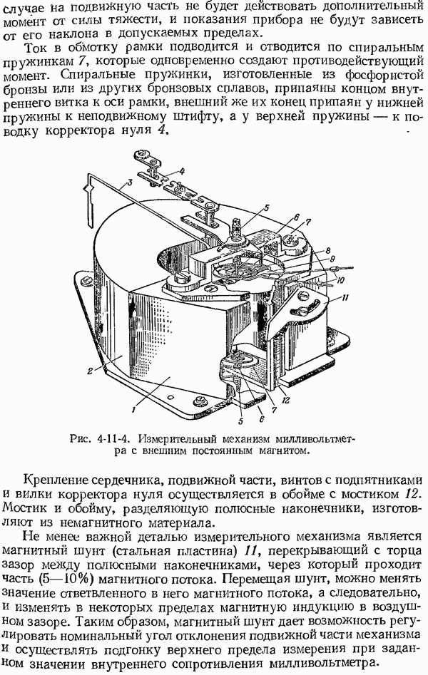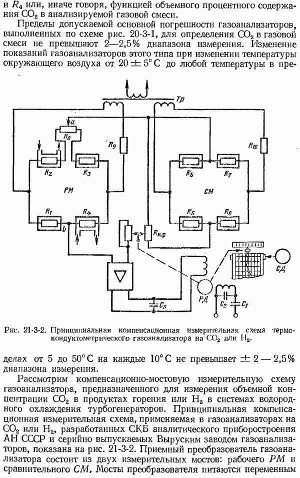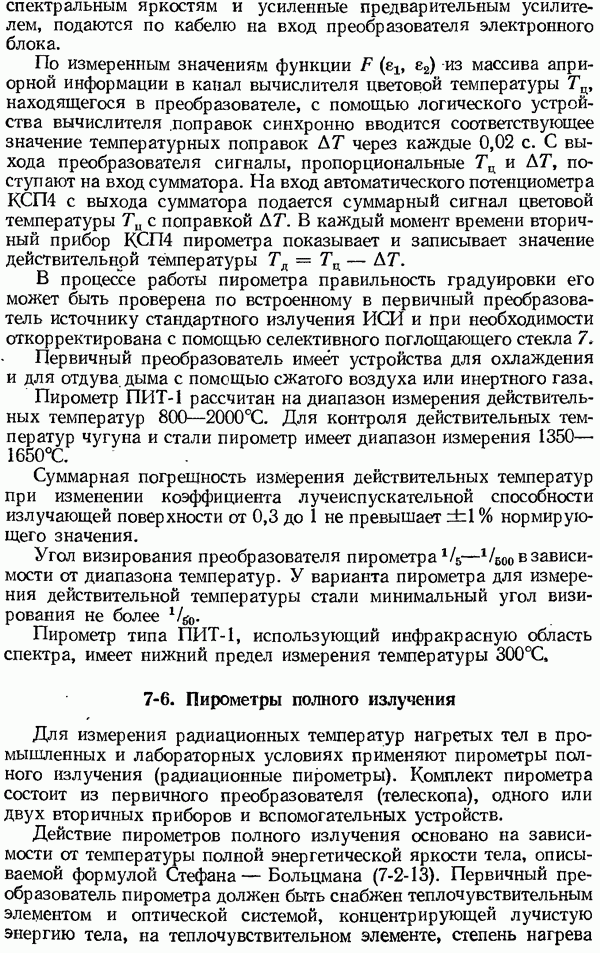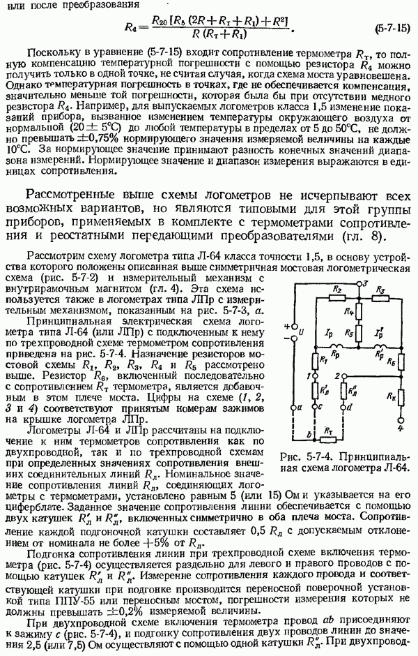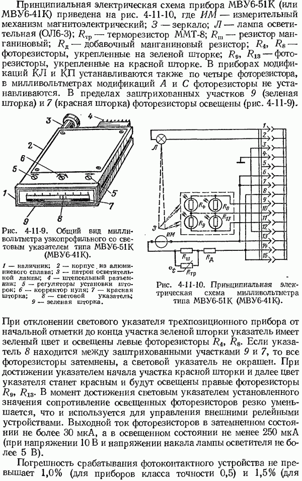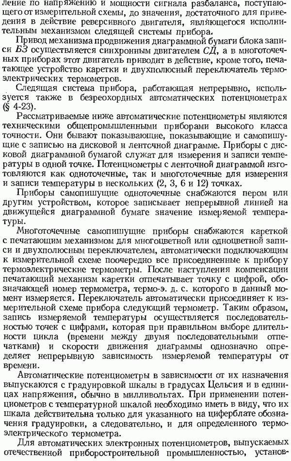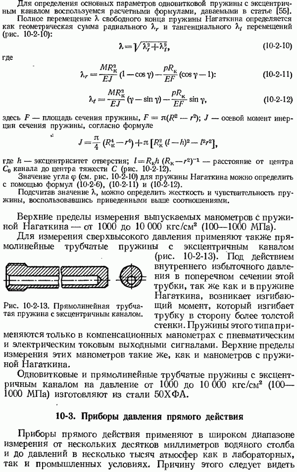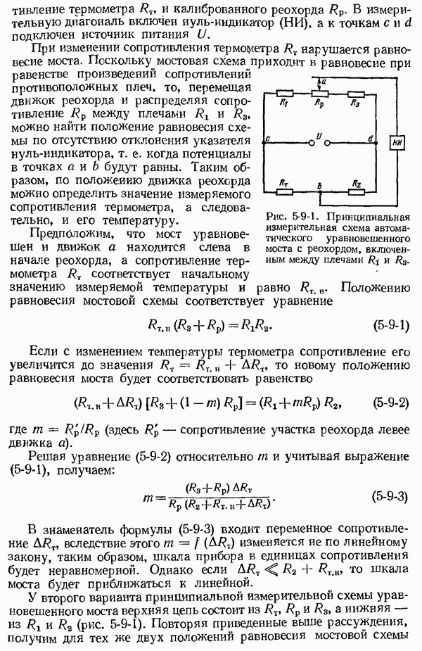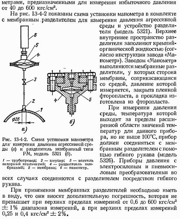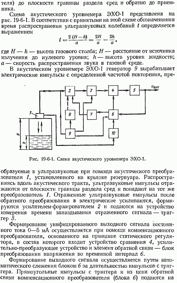 Рис. 8-11-2. Схема устройства пневматического передающего преобразователя. Пневматический передающий преобразователь со схемой, показанной на рис. 8-11-2, устанавливается в качестве дополнительного устройства в манометрических термометрах, выпускаемых казанским заводом «Теплоконт-роль». В основу построения этого пневматического передающего преобразователя положен принцип силовой компенсации. Угол поворота выходной оси 1 прибора посредством тяги 2, поводков 3 и 4, рычага 5 и цилиндрической пружины 7 передается на свободный конец манометрической пружины 6 устройства обратной связи. При повороте оси 1 свободный конец манометрической пружины, перемещаясь под действием усилия дистанционнои передачи и одновременно в манометрическую пружину устройства обратной связи, где преобразуется в пропорциональное усилие обратной связи Мерой усилия Заслонка индикатора рассогласования имеет максимальный рабочий ход примерно Пневматический преобразователь снабжен корректором нуля, с помощью которого устанавливается начальное значение выходного сигнала Пределы допускаемых основной и дополнительных погрешностей пневматических передающих преобразователей нормируются в зависимости от типа и класса точности манометрического термометра. В основу построения пневматических передающих преобразователей для преобразования угла поворота оси манометров, дифманометров типа