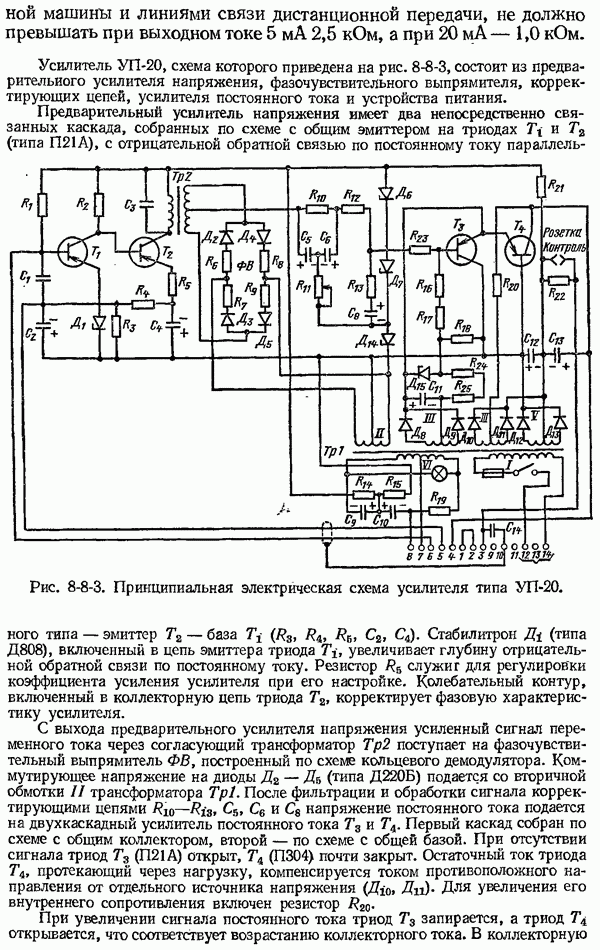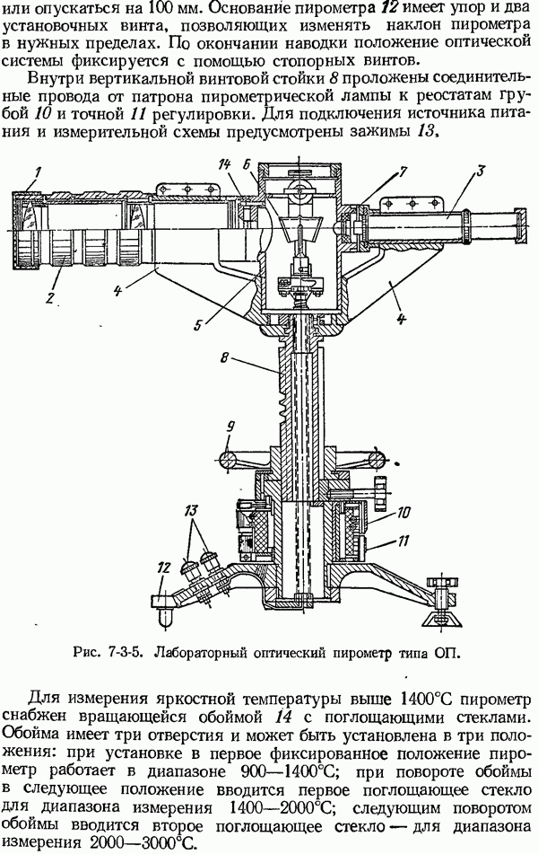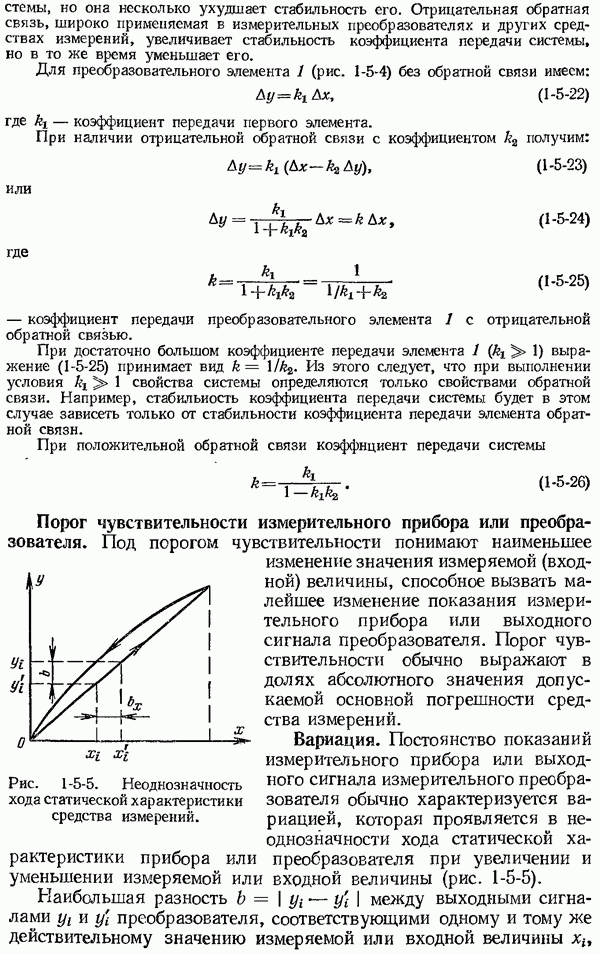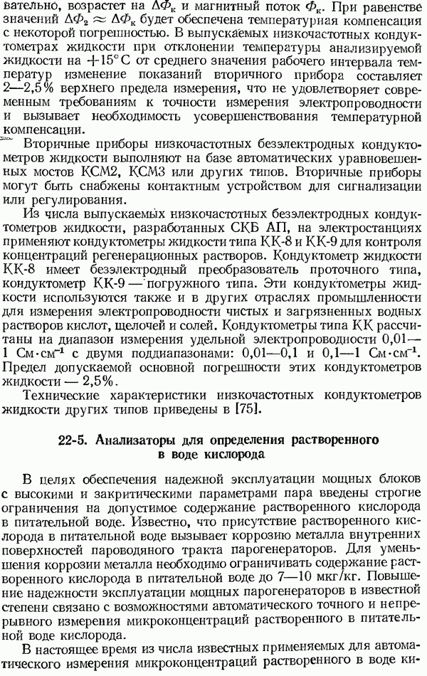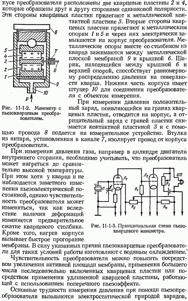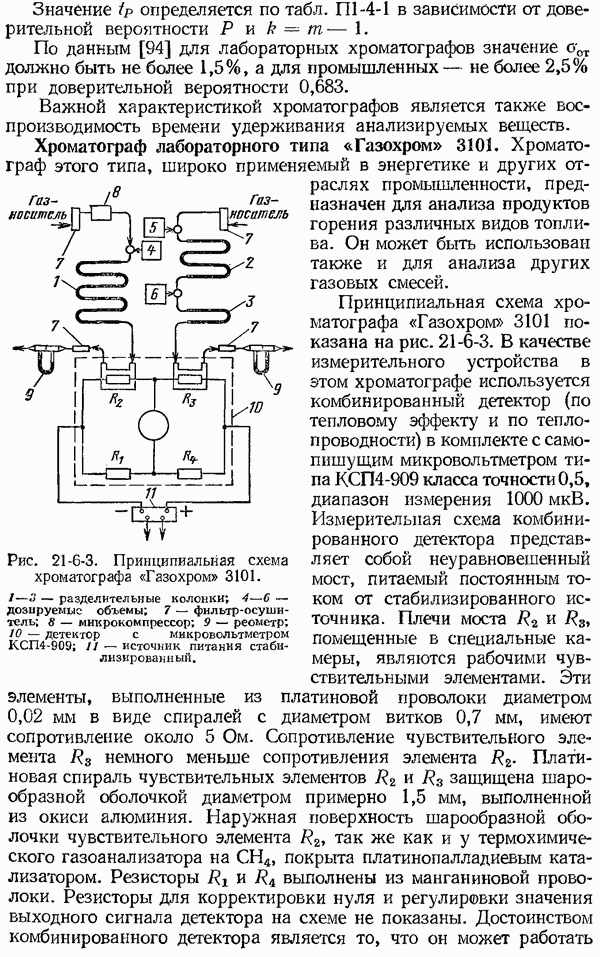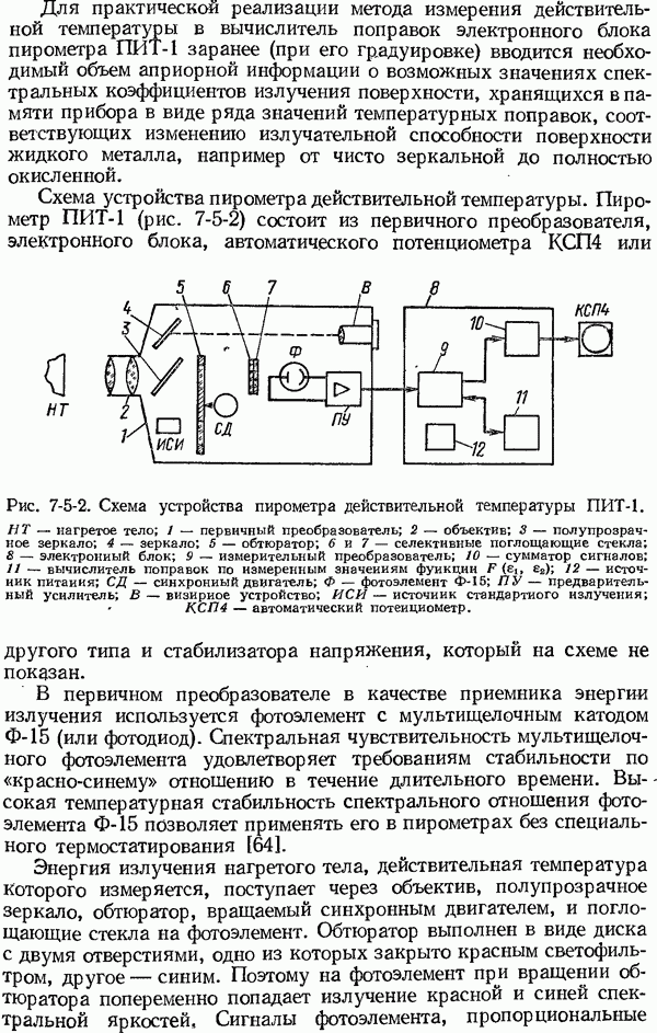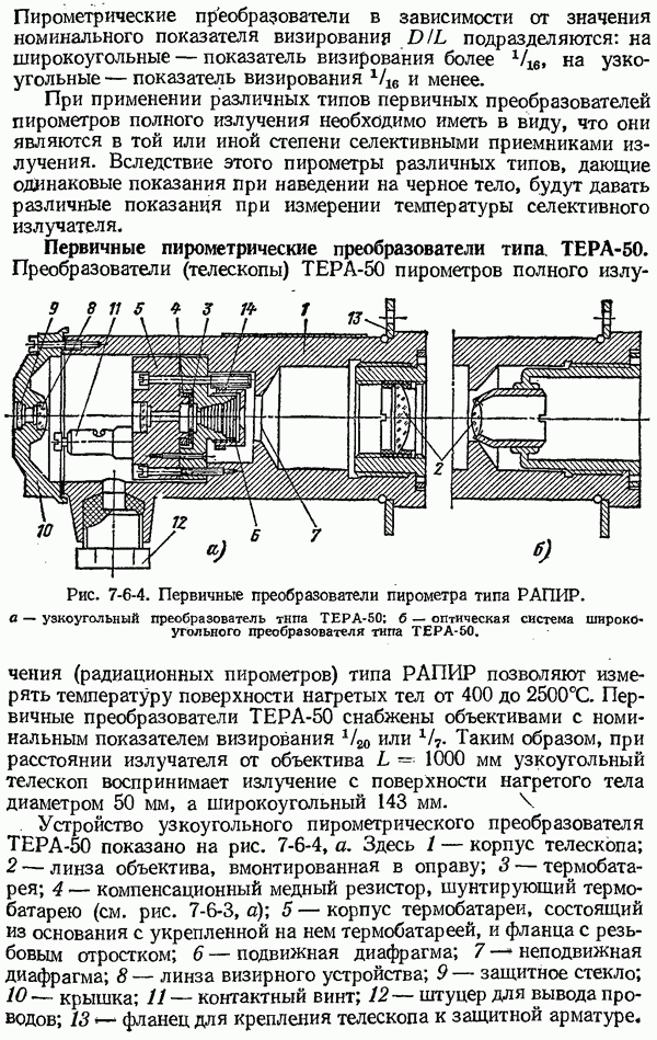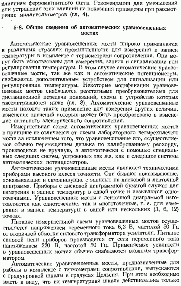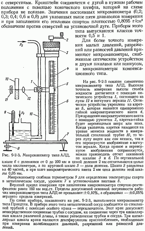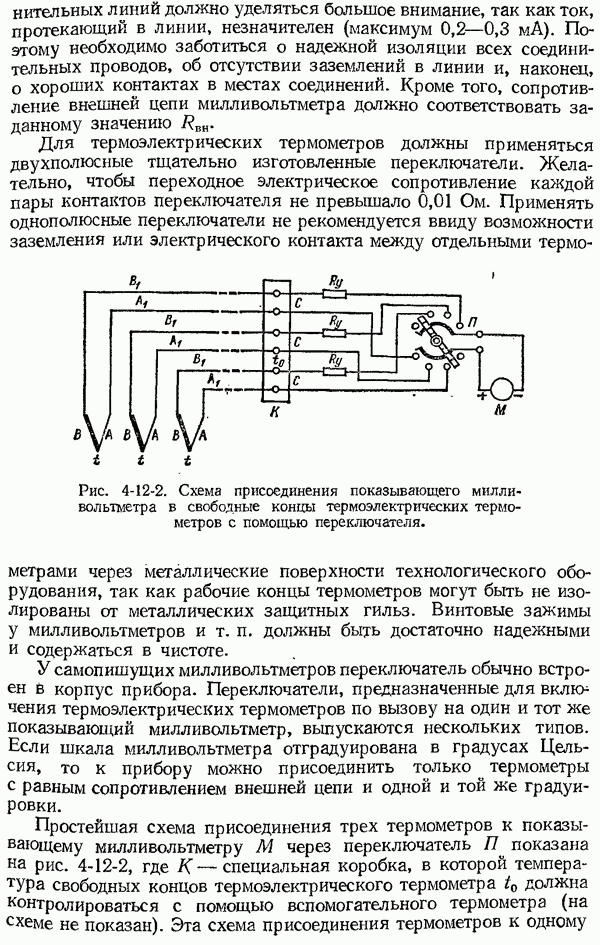 Рис. 8-11-2. Схема устройства пневматического передающего преобразователя. Пневматический передающий преобразователь со схемой, показанной на рис. 8-11-2, устанавливается в качестве дополнительного устройства в манометрических термометрах, выпускаемых казанским заводом «Теплоконт-роль». В основу построения этого пневматического передающего преобразователя положен принцип силовой компенсации. Угол поворота выходной оси 1 прибора посредством тяги 2, поводков 3 и 4, рычага 5 и цилиндрической пружины 7 передается на свободный конец манометрической пружины 6 устройства обратной связи. При повороте оси 1 свободный конец манометрической пружины, перемещаясь под действием усилия дистанционнои передачи и одновременно в манометрическую пружину устройства обратной связи, где преобразуется в пропорциональное усилие обратной связи Мерой усилия Заслонка индикатора рассогласования имеет максимальный рабочий ход примерно Пневматический преобразователь снабжен корректором нуля, с помощью которого устанавливается начальное значение выходного сигнала Пределы допускаемых основной и дополнительных погрешностей пневматических передающих преобразователей нормируются в зависимости от типа и класса точности манометрического термометра. В основу построения пневматических передающих преобразователей для преобразования угла поворота оси манометров, дифманометров типа