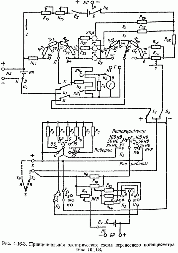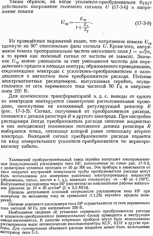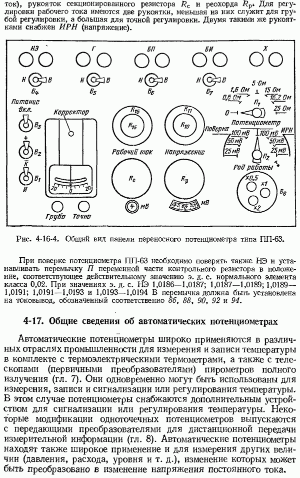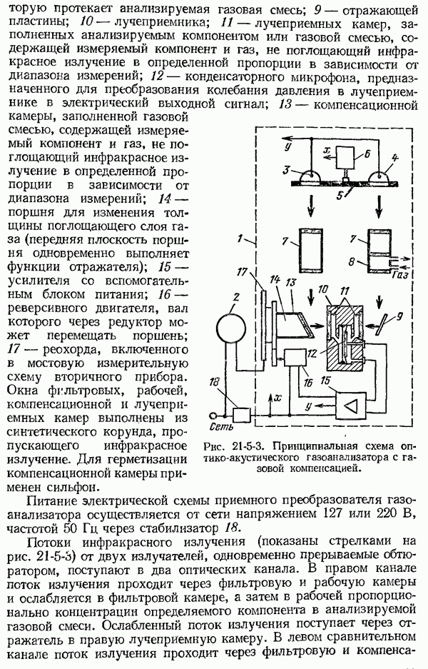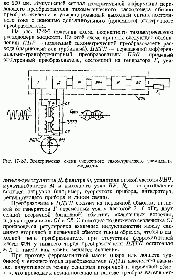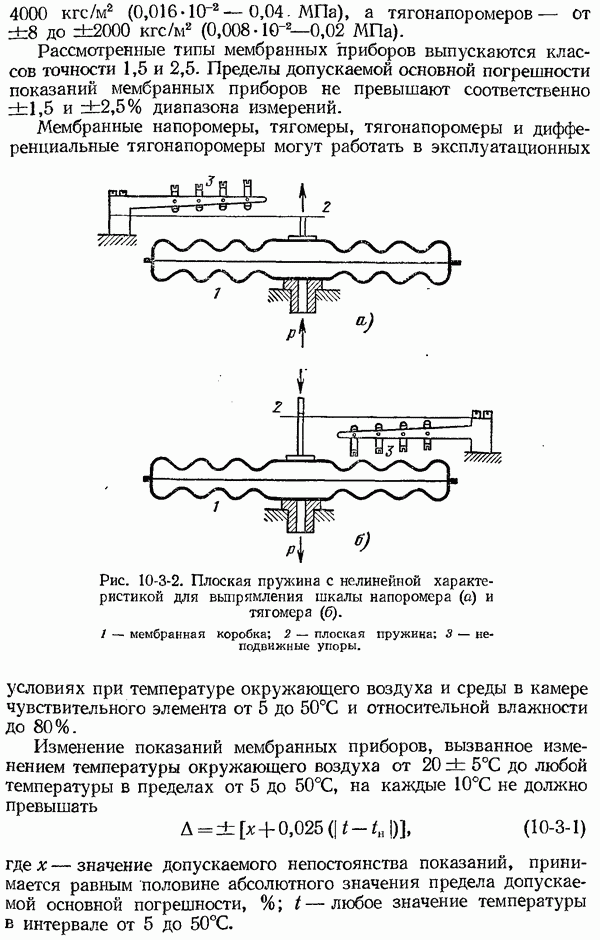 Рис. 8-11-1. Схема устройства пневматического передающего преобразователя типа ПП. Преобразователи этого типа, изготовляемые в виде отдельного блока (или узла), устанавливаются как дополнительное устройство в различных средствах измерений, например в манометрических термометрах, в приборах для измерения давления, в дифманометрах и в некоторых вторичных приборах. На рис 8-11-1 показана схема устройства пневматического передающего преобразователя типа ПП, изготовляемого Харьковским заводом КИП [17]. Входной величиной этого преобразователя является угол поворота. Преобразователь, устанавливаемый внутри прибора, связан с выходной осью его через сектор 2 посредством шестерни 1 (или через поводок 16 с катящимся по кулачку 17 роликом). Шестерня (или кулачок), неподвижно укрепленная на выходной оси прибора, рассчитана таким образом, что при повороте ее на полный рабочий угол, соответствующий диапазону измерения прибора, входная ось преобразователя, а следовательно, и сектор 2 с роликом 3 (или поводок 16 с роликом 3), повернется на угол 40°. Угол поворота сектора (или поводка) посредством ролика 3, ленты 15 и винтовой пружины 14 преобразуется в пропорциональное усилие Сжатый очищенный воздух через фильтр и редуктор из магистрали питания под давлением рпит Выходной пневматический сигнал рвых формируется в камере II, в которую воздух поступает из камеры При возрастании усилия динамическом равновесии мембранного блока: полый шток и пластинчатый клапан находятся в режиме высокочастотных незатухающих колебаний. Пределы допускаемой основной погрешности пневматического преобразователя типа