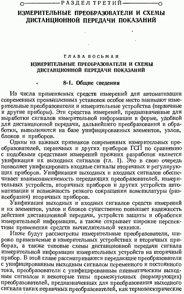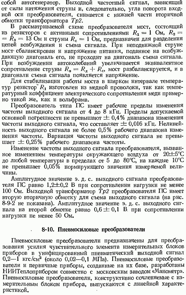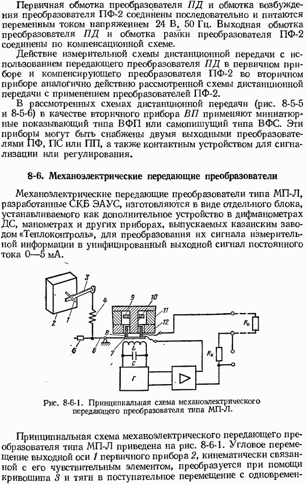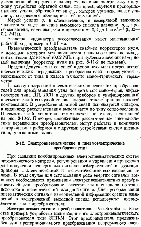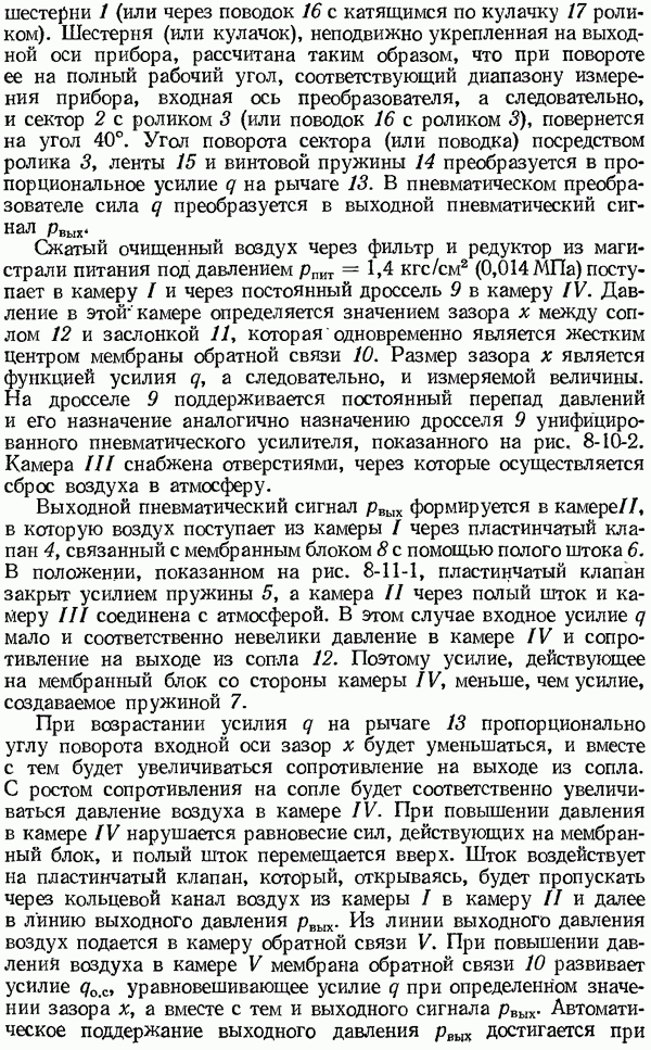 8-11. Пневматические передающие преобразователиПневматические передающие преобразователи, рассматриваемые ниже, предназначены для преобразования угла поворота выходной оси измерительных устройств, пропорционального сигналу измерительной информации, в унифицированный пневматический выходной сигнал, изменяющийся от 0,2 до