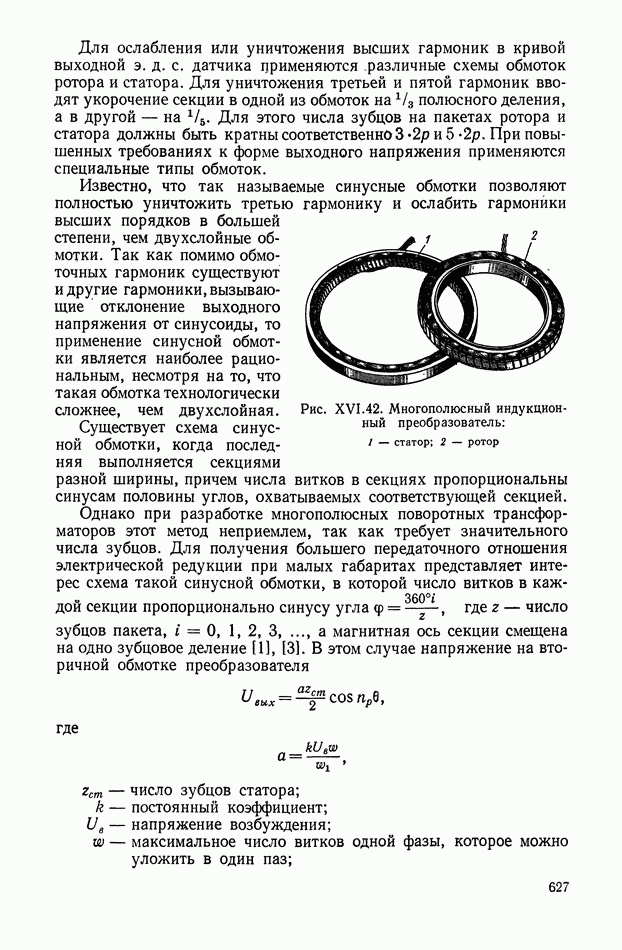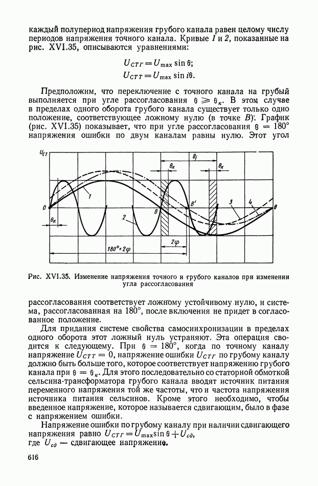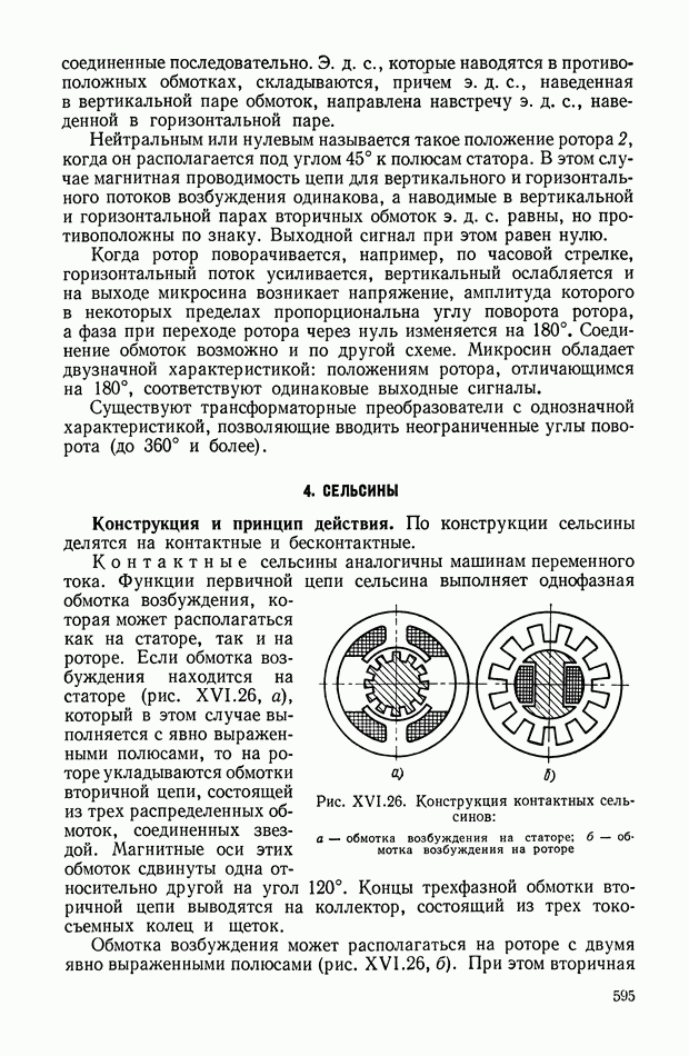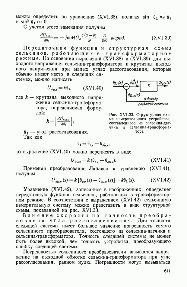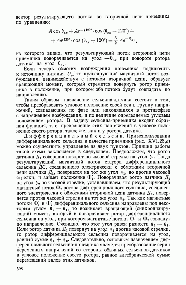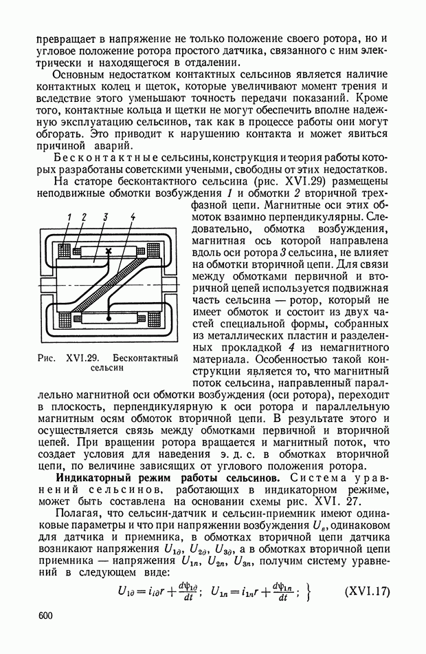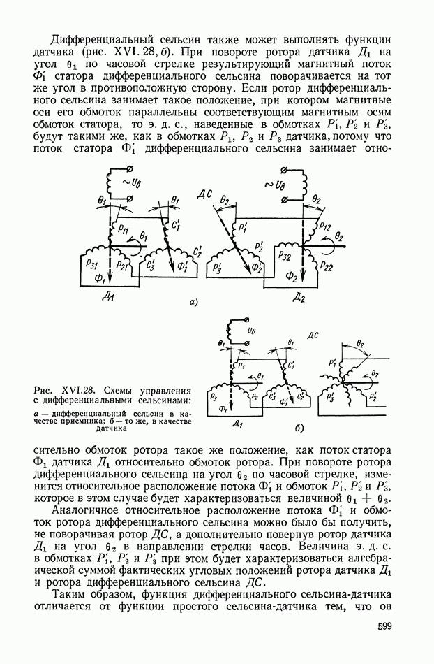 Выражение (XVI.22) показывает, что синхронизирующий момент сельсина имеет две составляющие, одна из которых носит реактивный характер и обусловлена наличием явно выраженных полюсов, а вторая — взаимодействием потока возбуждения с поперечной составляющей вторичного тока. Нужно сказать, что первая составляющая момента Таким образом, синхронизирующий момент сельсина без большого ущерба для практических расчетов в области малых углов рассогласования может определяться по выражению