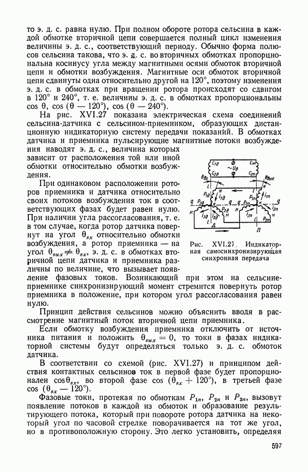 Индикаторный режим работы сельсинов.Система уравнений сельсинов» работающих в индикаторном режиме, может быть составлена на основании схемы рис. XVI. 27. Полагая, что сельсин-датчик и сельсин-приемник имеют одинаковые параметры и что при напряжении возбуждения