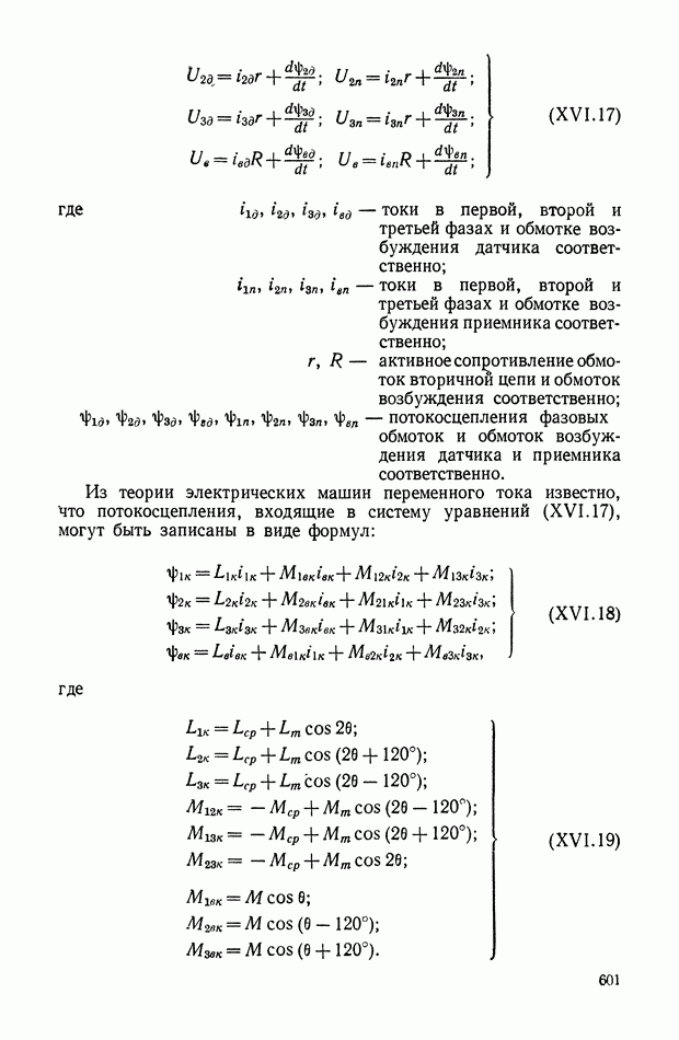 Из теории электрических машин переменного тока известно, что потокосцепления, входящие в систему уравнений (XVI. 17), могут быть записаны в виде формул: