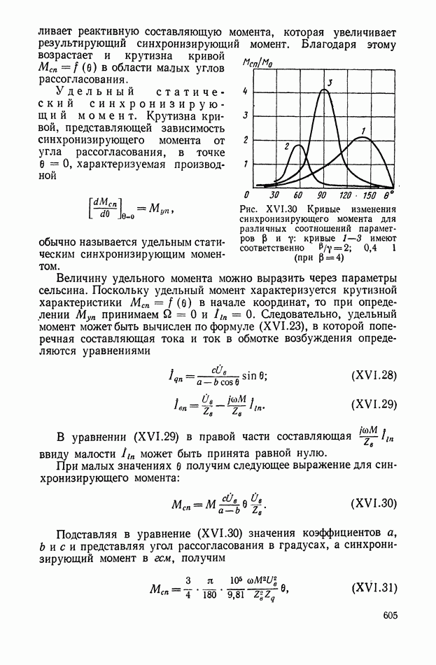 Характер изменения синхронизирующего момента при изменении угла рассогласования, как показывает уравнение (XVI.24), может быть различным и зависит от соотношения параметров обусловливает реактивную составляющую момента, которая увеличивает результирующий синхронизирующий момент. Благодаря этому возрастает и крутизна кривой