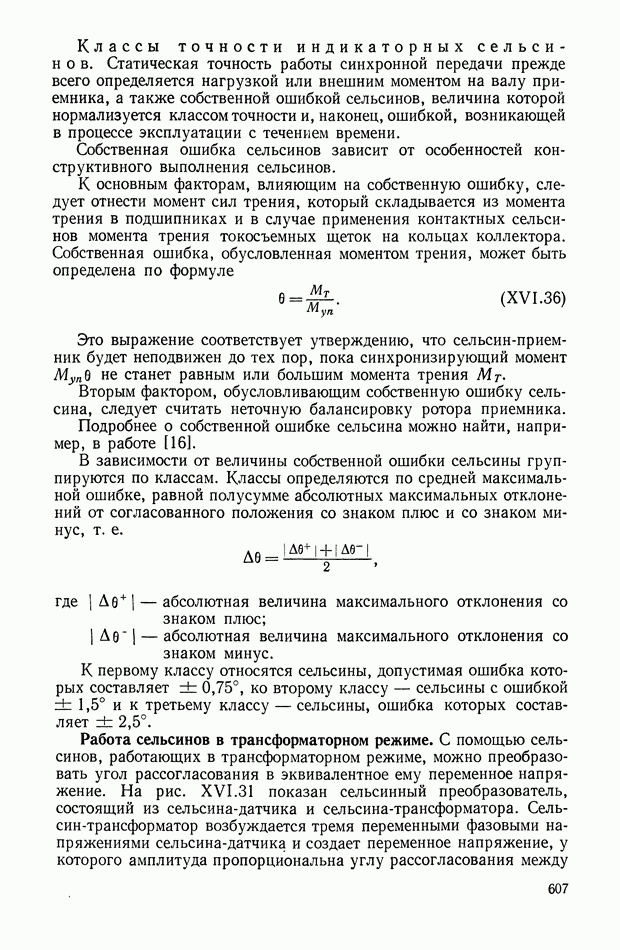 Это выражение соответствует утверждению, что сельсин-приемник будет неподвижен до тех пор, пока синхронизирующий момент Вторым фактором, обусловливающим собственную ошибку сельсина, следует считать неточную балансировку ротора приемника. Подробнее о собственной ошибке сельсина можно найти, например, в работе [16]. В зависимости от величины собственной ошибки сельсины группируются по классам. Классы определяются по средней максимальной ошибке, равной полусумме абсолютных максимальных отклонений от согласованного положения со знаком плюс и со знаком минус, т. е.