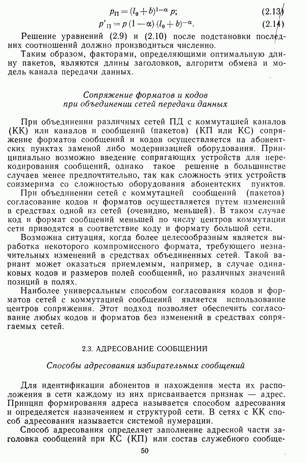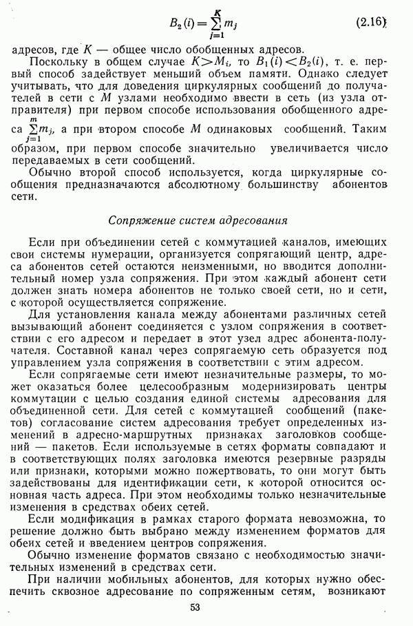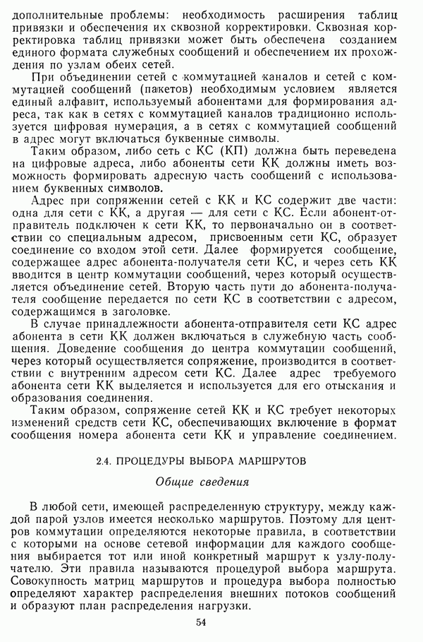 адресов, где К — общее число обобщенных адресов. Поскольку в общем случае Обычно второй способ используется, когда циркулярные сообщения предназначаются абсолютному большинству абонентов сети. Сопряжение систем адресованияЕсли при объединении сетей с коммутацией каналов, имеющих свои системы нумерации, организуется сопрягающий центр, адреса абонентов сетей остаются неизменными, но вводится дополнительный номер узла сопряжения. При этом каждый абонент сети должен знать номера абонентов не только своей сети, но и сети, с которой осуществляется сопряжение. Для установления канала между абонентами различных сетей вызывающий абонент соединяется с узлом сопряжения в соответствии с его адресом и передает в этот узел адрес абонента-получателя. Составной канал через сопрягаемую сеть образуется под управлением узла сопряжения в соответствии с этим адресом. Если сопрягаемые сети имеют незначительные размеры, то может оказаться более целесообразным модернизировать центры коммутации с целью создания единой системы адресования для объединенной сети. Для сетей с коммутацией сообщений (пакетов) согласование систем адресования требует определенных изменений в адресно-маршрутных признаках заголовков сообщений — пакетов. Если используемые в сетях форматы совпадают и в соответствующих полях заголовка имеются резервные разряды или признаки, которыми можно пожертвовать, то они могут быть задействованы для идентификации сети, к которой относится основная часть адреса. При этом необходимы только незначительные изменения в средствах обеих сетей. Если модификация в рамках старого формата невозможна, то решение должно быть выбрано между изменением форматов для обеих сетей и введением центров сопряжения. Обычно изменение форматов связано с необходимостью значительных изменений в средствах сети. При наличии мобильных абонентов, для которых нужно обеспечить сквозное адресование по сопряженным сетям, возникают дополнительные проблемы: необходимость расширения таблиц привязки и обеспечения их сквозной корректировки. Сквозная корректировка таблиц привязки может быть обеспечена созданием единого формата служебных сообщений и обеспечением их прохождения по узлам обеих сетей. При объединении сетей с коммутацией каналов и сетей с коммутацией сообщений (пакетов) необходимым условием является единый алфавит, используемый абонентами для формирования адреса, так как в сетях с коммутацией каналов традиционно используется цифровая нумерация, а в сетях с коммутацией сообщений в адрес могут включаться буквенные символы. Таким образом, либо сеть с КС (КП) должна быть переведена на цифровые адреса, либо абоненты сети КК должны иметь возможность формировать адресную часть сообщений с использованием буквенных символов. Адрес при сопряжении сетей с КК и КС содержит две части: одна для сети с КК, а другая — для сети с КС. Если абонент-отправитель подключен к сети КК, то первоначально он в соответствии со специальным адресом, присвоенным сети КС, образует соединение со входом этой сети. Далее формируется сообщение, содержащее адрес абонента-получателя сети КС, и через сеть КК вводится в центр коммутации сообщений, через который осуществляется объединение сетей. Вторую часть пути до абонента-получателя сообщение передается по сети КС