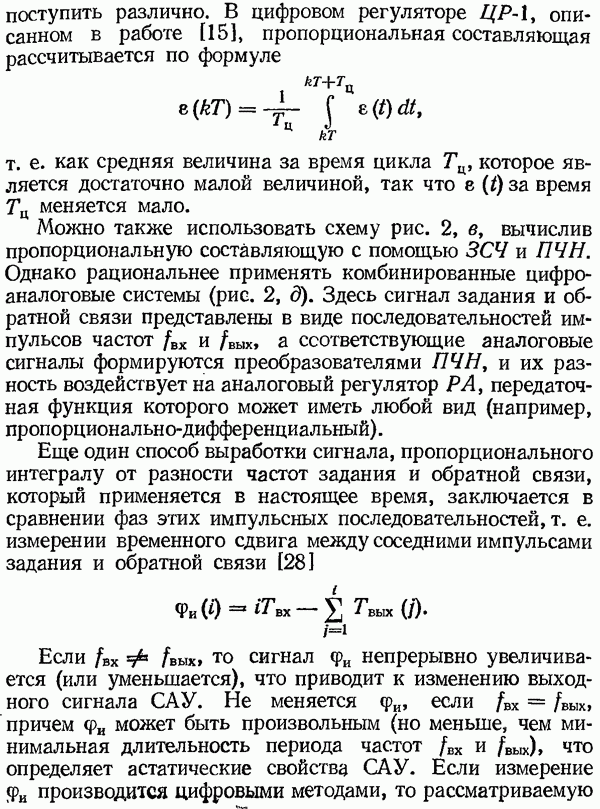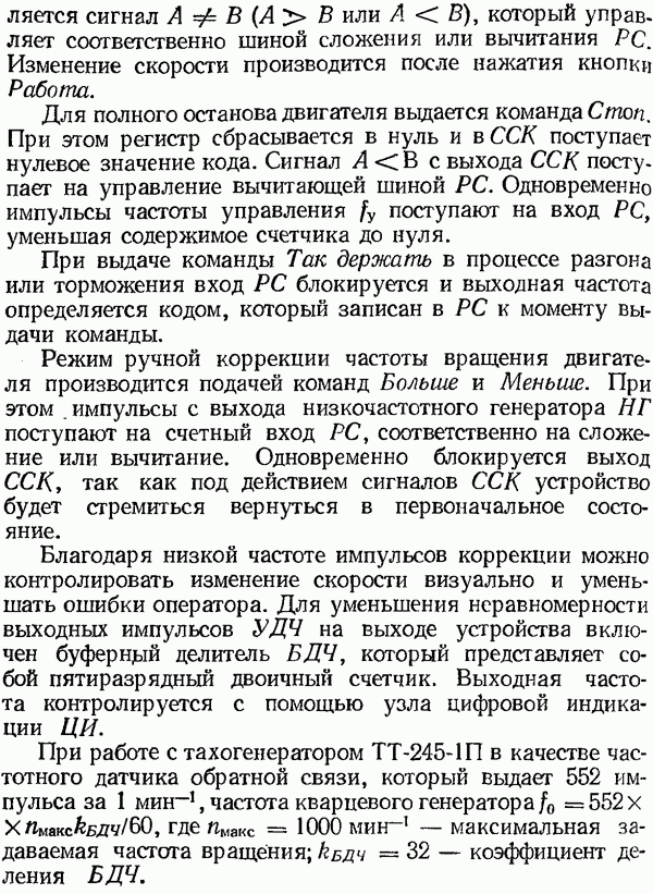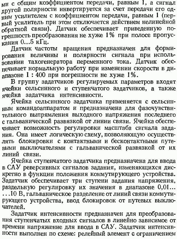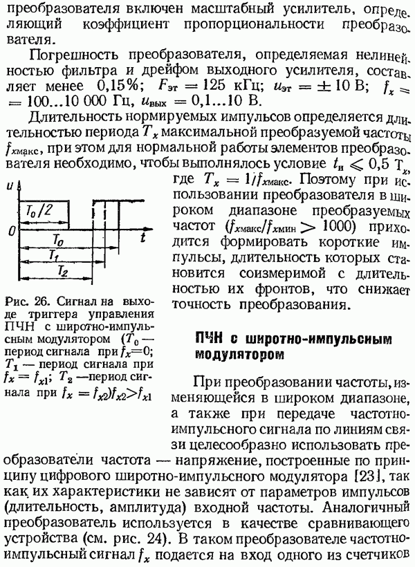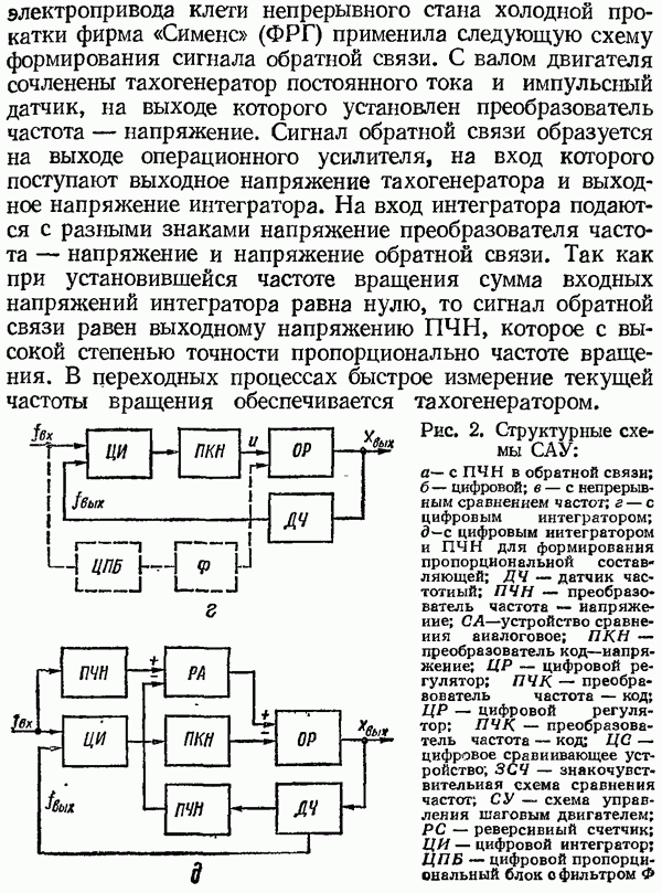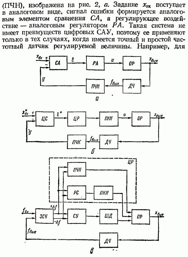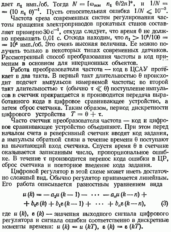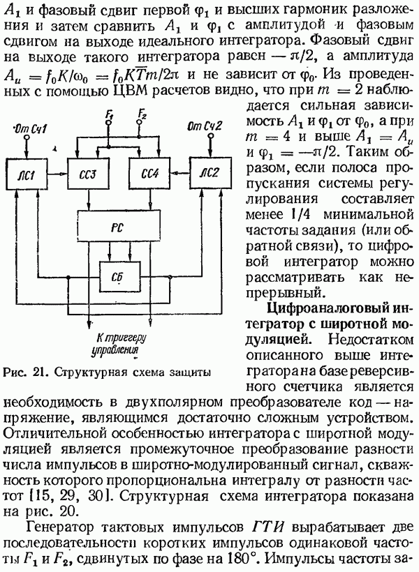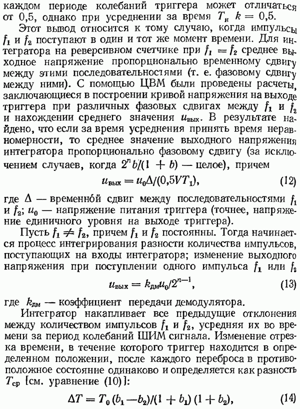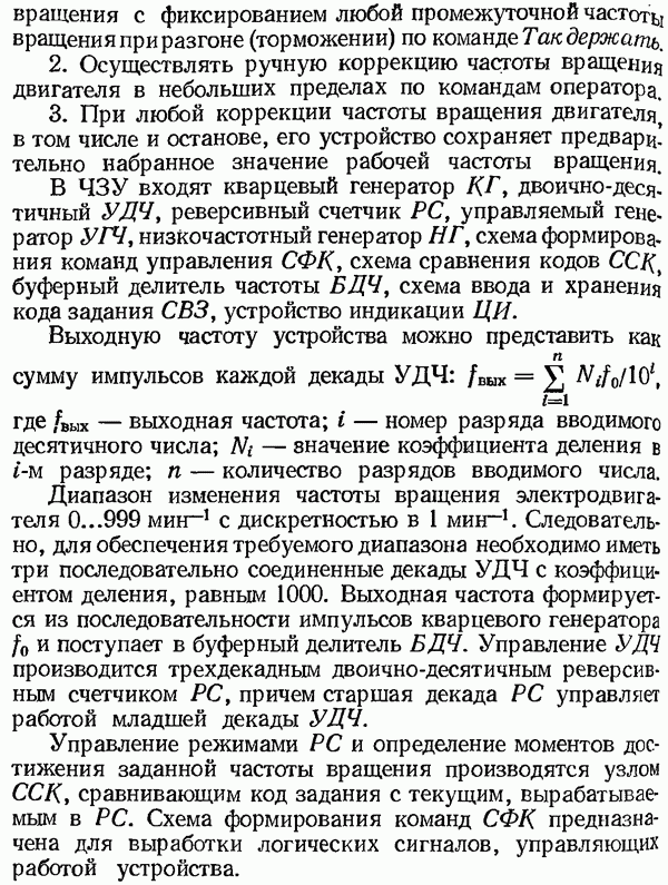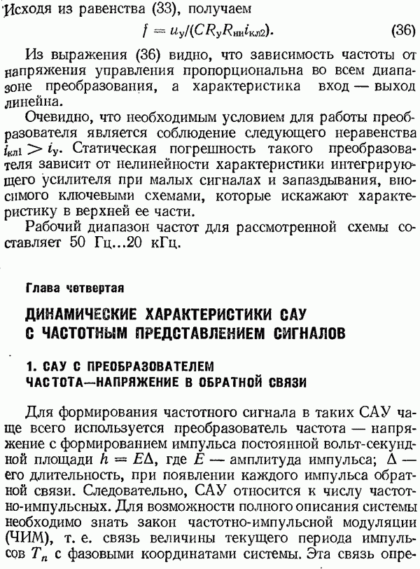Рис. 32. Структурная схема умножителя частоты интегратора, который осуществляет непрерывное интегрирование разности этих частот с последующим преобразованием в аналоговый сигнал. На выходе управляемого генератора установятся колебания, частота которых будет определяться выражением Благодаря использованию принципа следящего уравновешивания умножитель частоты имеет высокие метрологические характеристики в установившемся режиме. Инструментальные ошибки демодулятора и управляемого генератора практически не влияют на точность показаний всего умножителя. В динамических режимах допустимая скорость изменения умножаемой частоты