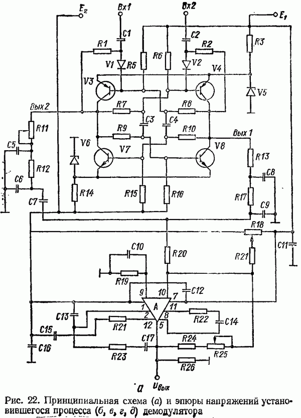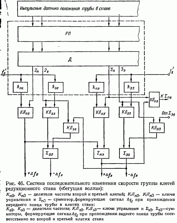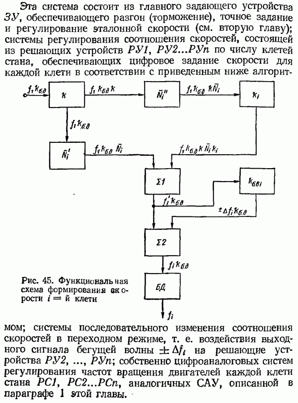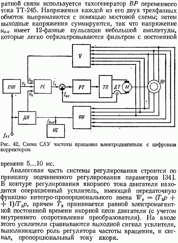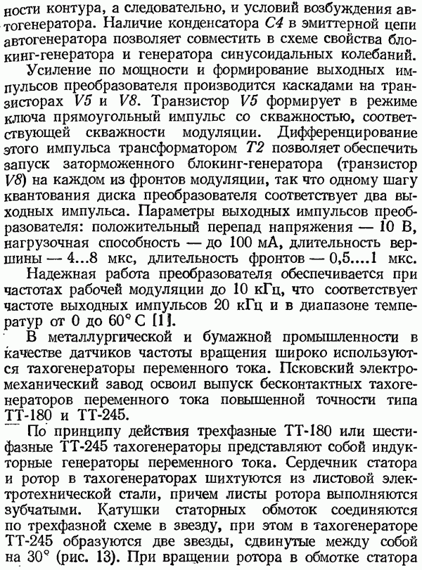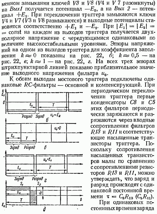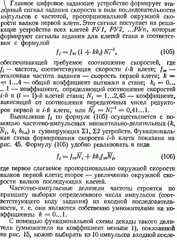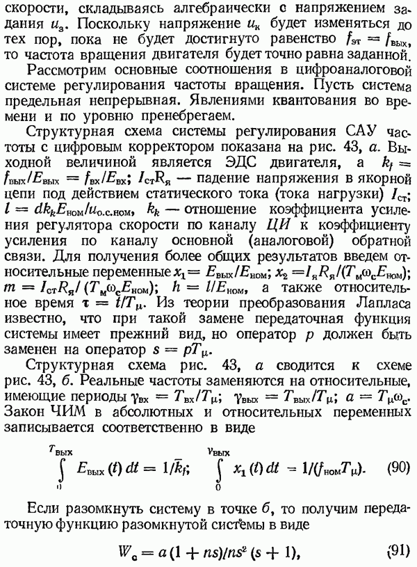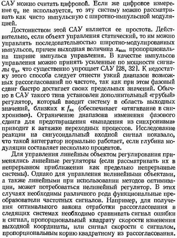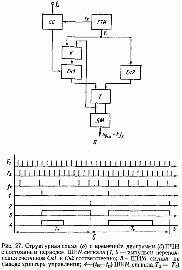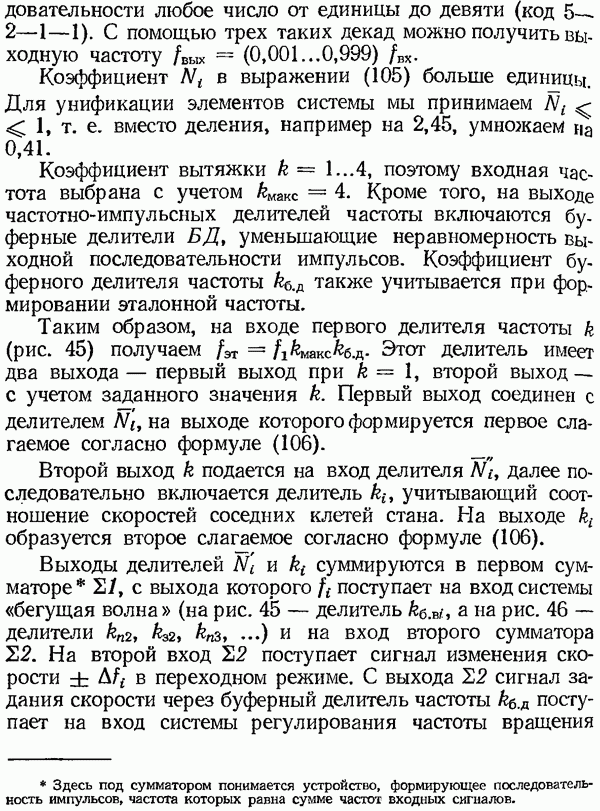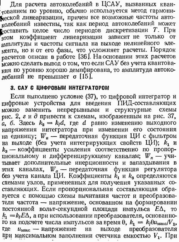 Рис. 32. Структурная схема умножителя частоты интегратора, который осуществляет непрерывное интегрирование разности этих частот с последующим преобразованием в аналоговый сигнал. На выходе управляемого генератора установятся колебания, частота которых будет определяться выражением Благодаря использованию принципа следящего уравновешивания умножитель частоты имеет высокие метрологические характеристики в установившемся режиме. Инструментальные ошибки демодулятора и управляемого генератора практически не влияют на точность показаний всего умножителя. В динамических режимах допустимая скорость изменения умножаемой частоты