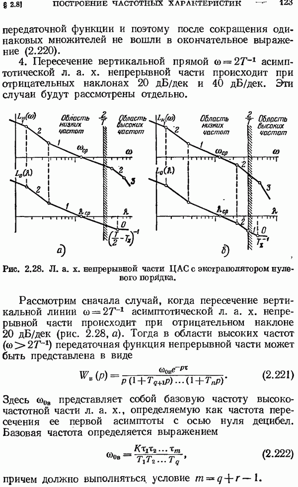 Рис. 5.42. Варианты выбора желаемой л. а. х. Заметим, что получившаяся частотная передаточная функция корректирующего устройства (5.229) не может быть реализована, вообще говоря, и в непрерывном варианте. Эта функция соответствует бесконечному подъему усиления при росте частоты до бесконечности. При реализации в дискретном варианте эта функция приводит к неустойчивой программе ЦВМ. Для исключения этого явления примем желаемую л. а. х. в другом виде (рис. 5.42). Желаемая передаточная функция