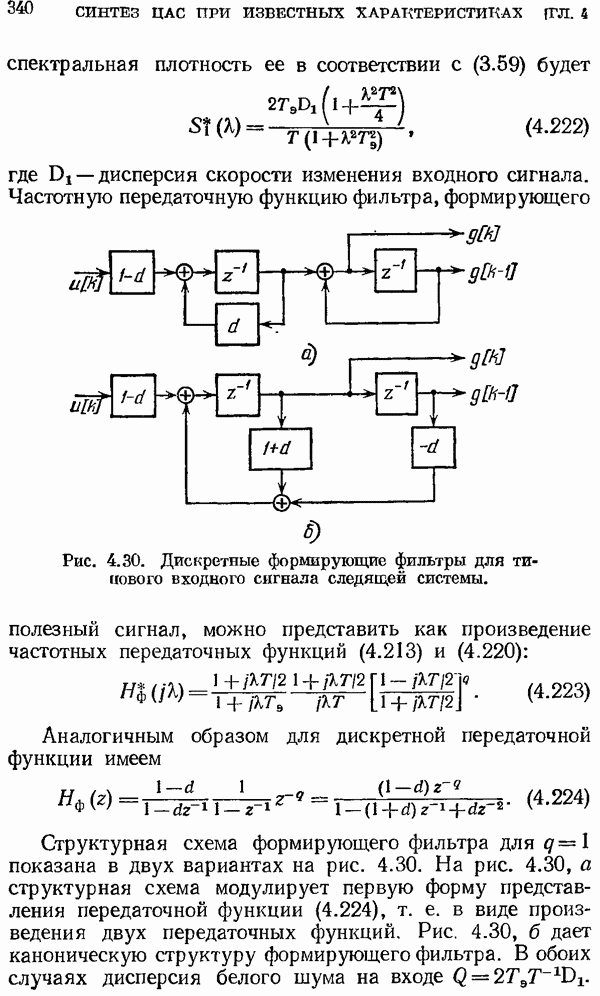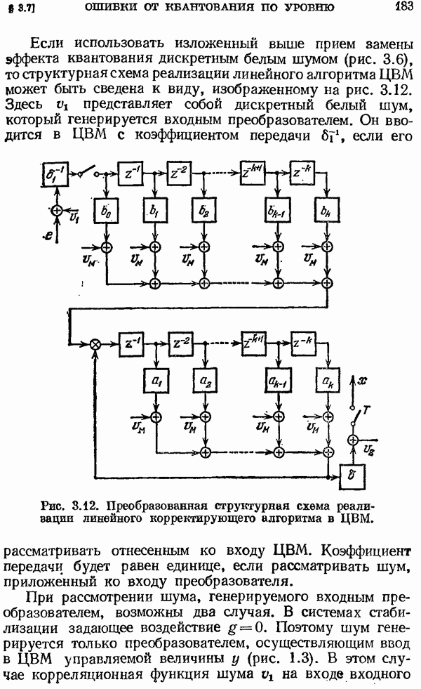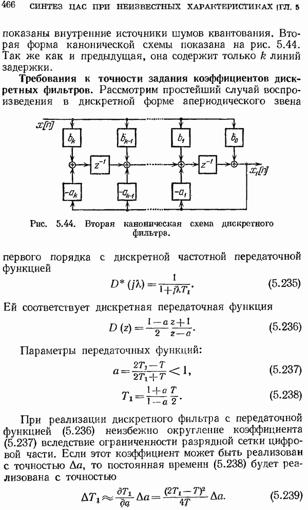 (кликните для просмотра скана) показаны внутренние источники шумов квантования. Вторая форма канонической схемы показана на рис. 5.44. Так же как и предыдущая, она содержит только
