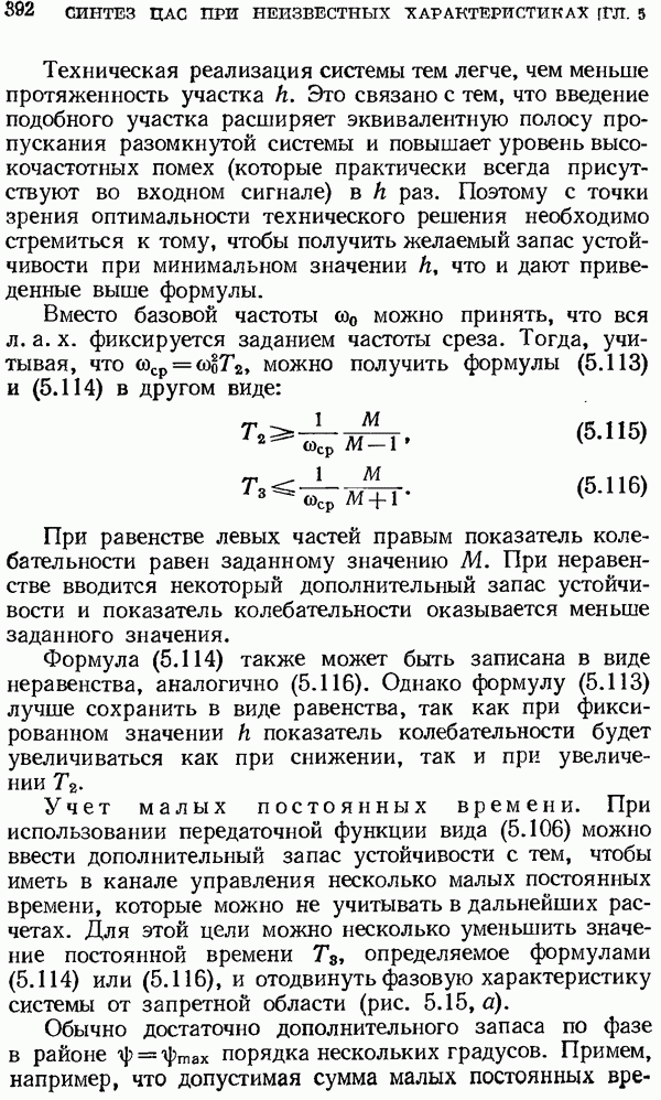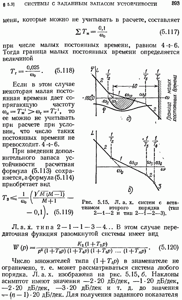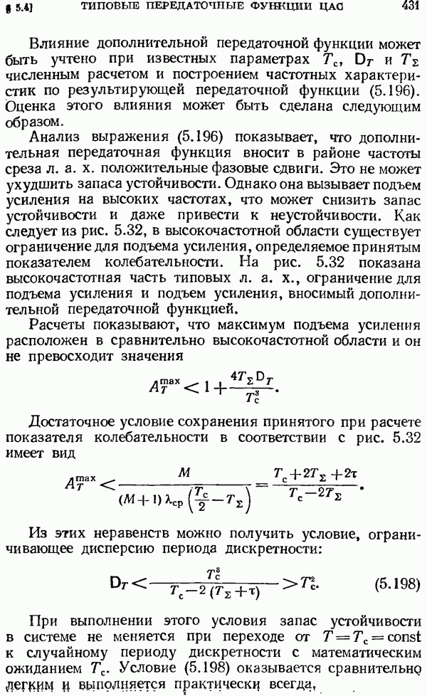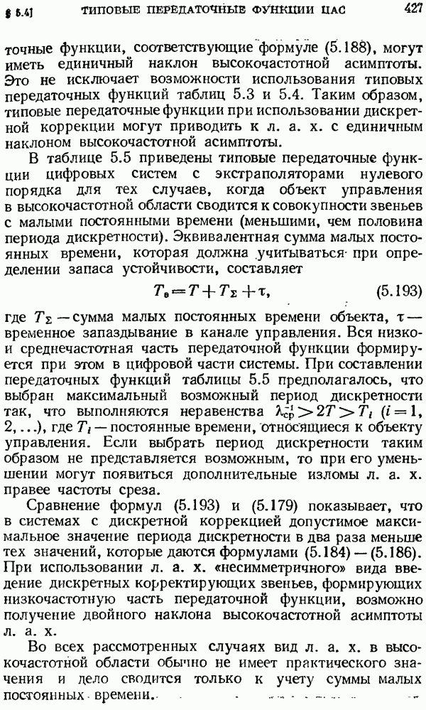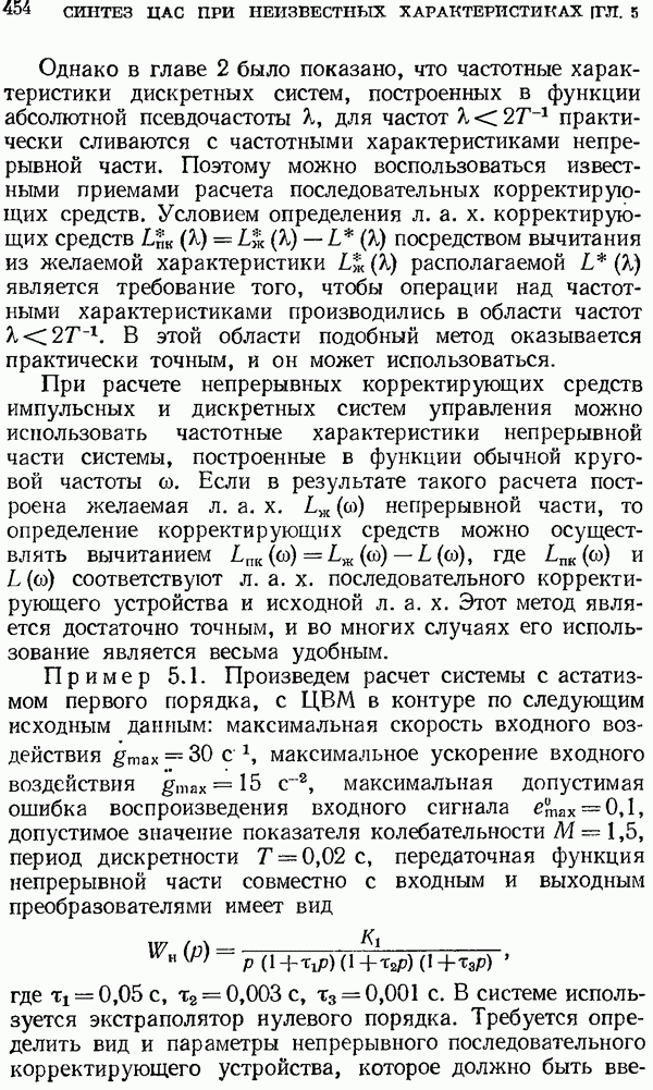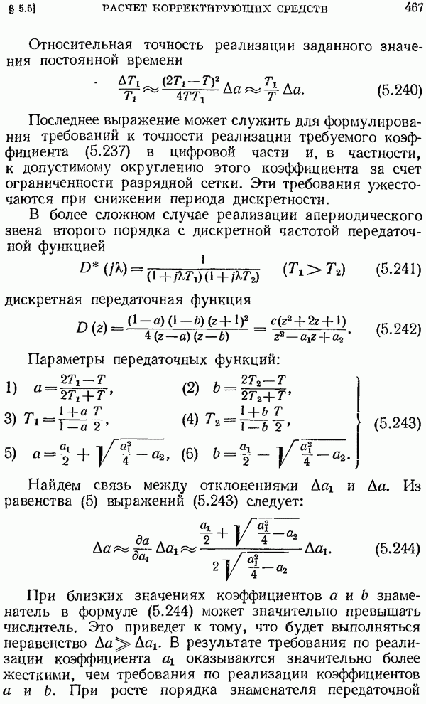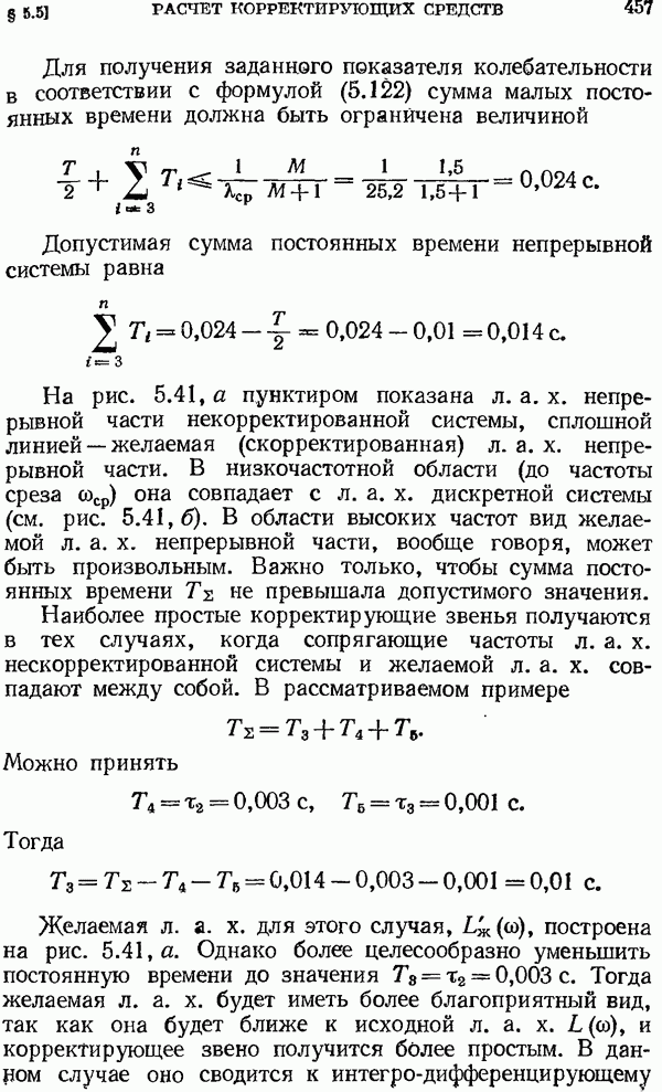 Допустимое значение суммы малых постоянных времени для передаточной функции (5.231) равно периоду дискретности: