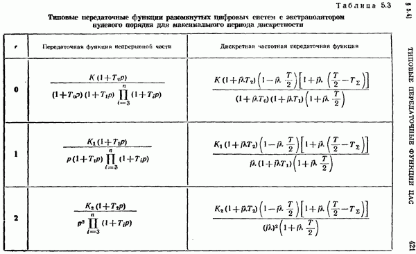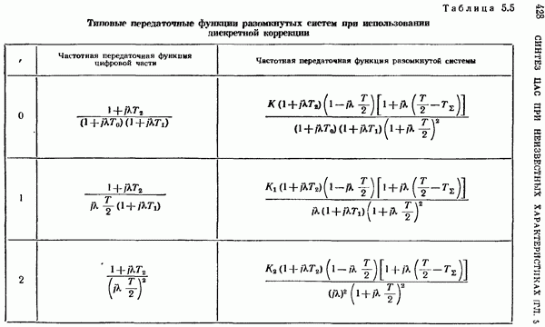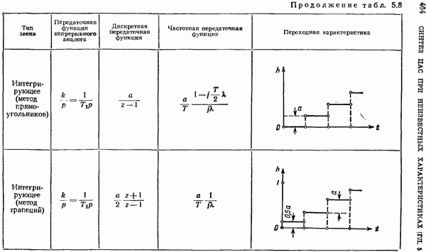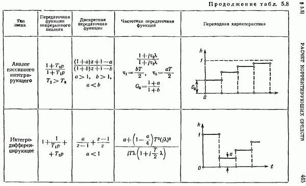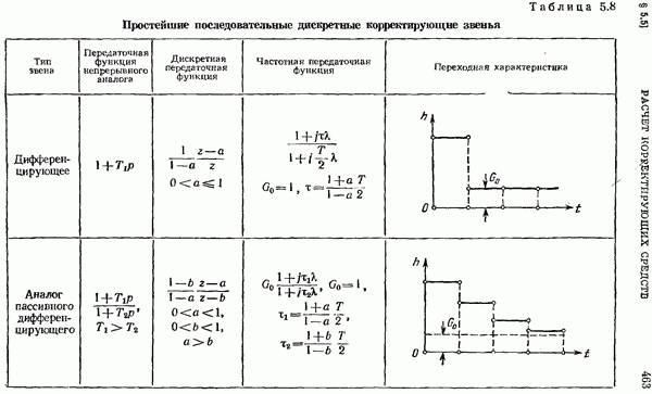 Множитель 5,5 может быть присоединен к непрерывной части. В таблице 5.8 приведены некоторые простейшие дискретные корректирующие средства, которые могут реализоваться на ЦВМ или дискретных фильтрах. Переходные характеристики в таблице 5.8 построены для случая использования экстраполятора нулевого порядка. В самом общем случае передаточная функция корректирующего устройства имеет вид