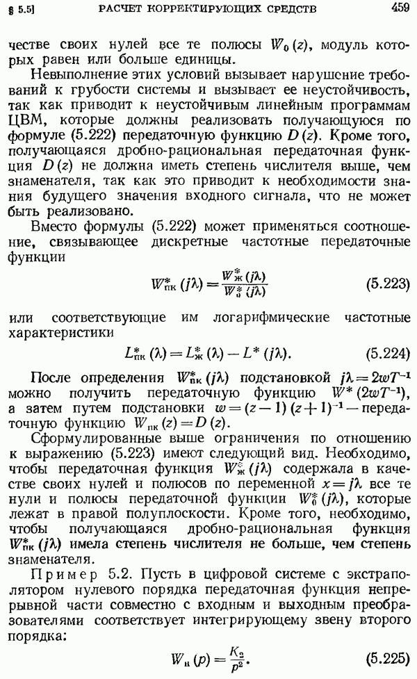 Формирование желаемой функции честве своих нулей все те полюсы Невыполнение этих условий вызывает Вместо формулы (5.222) может применяться соотношение, связывающее дискретные частотные передаточные функции